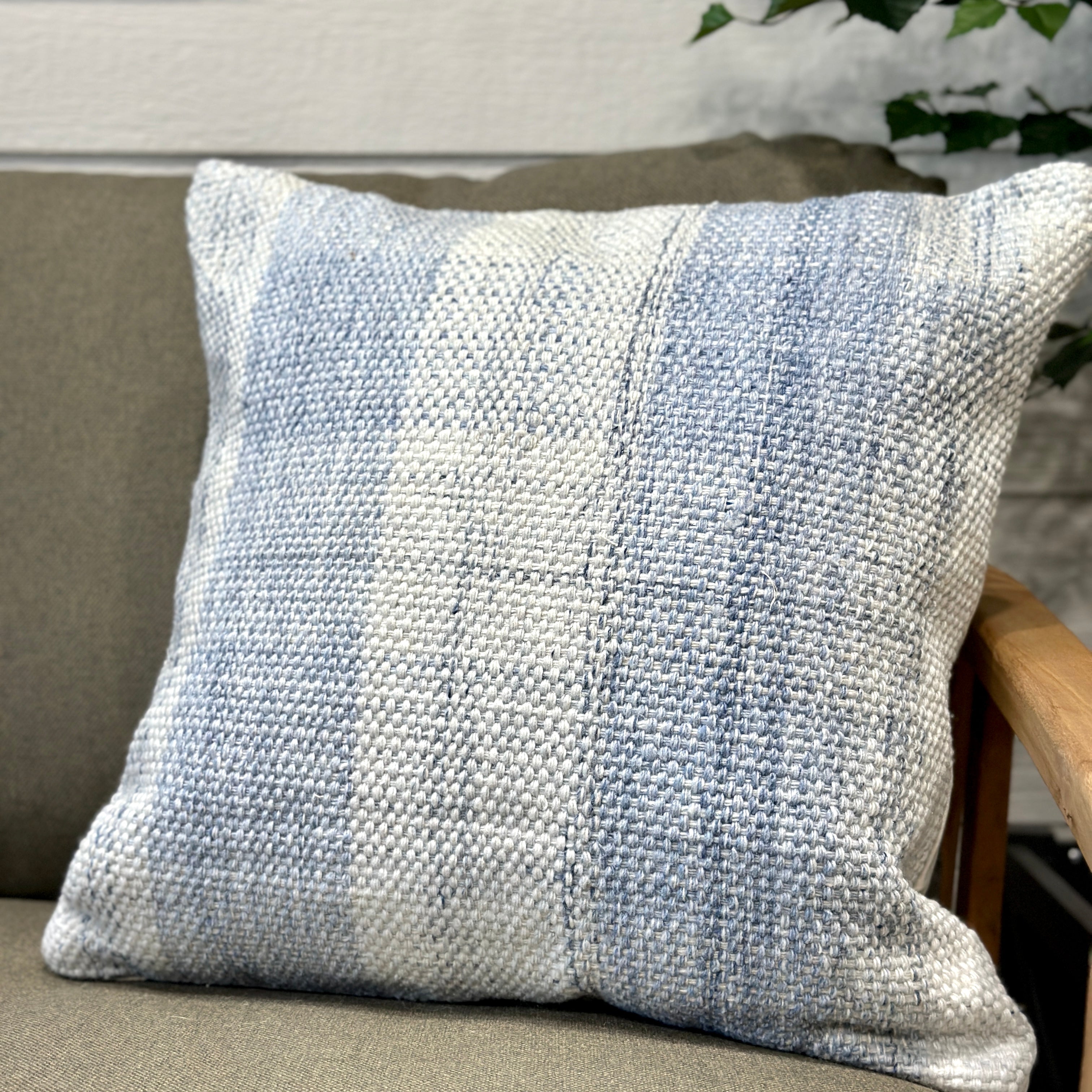 Featuring a classic square shape, the Alomar Cushion in Ivory/Blue adds elegance to any seating arrangement. With an included insert, it's ready for use both indoors and outdoors, as long as it's protected from the elements.