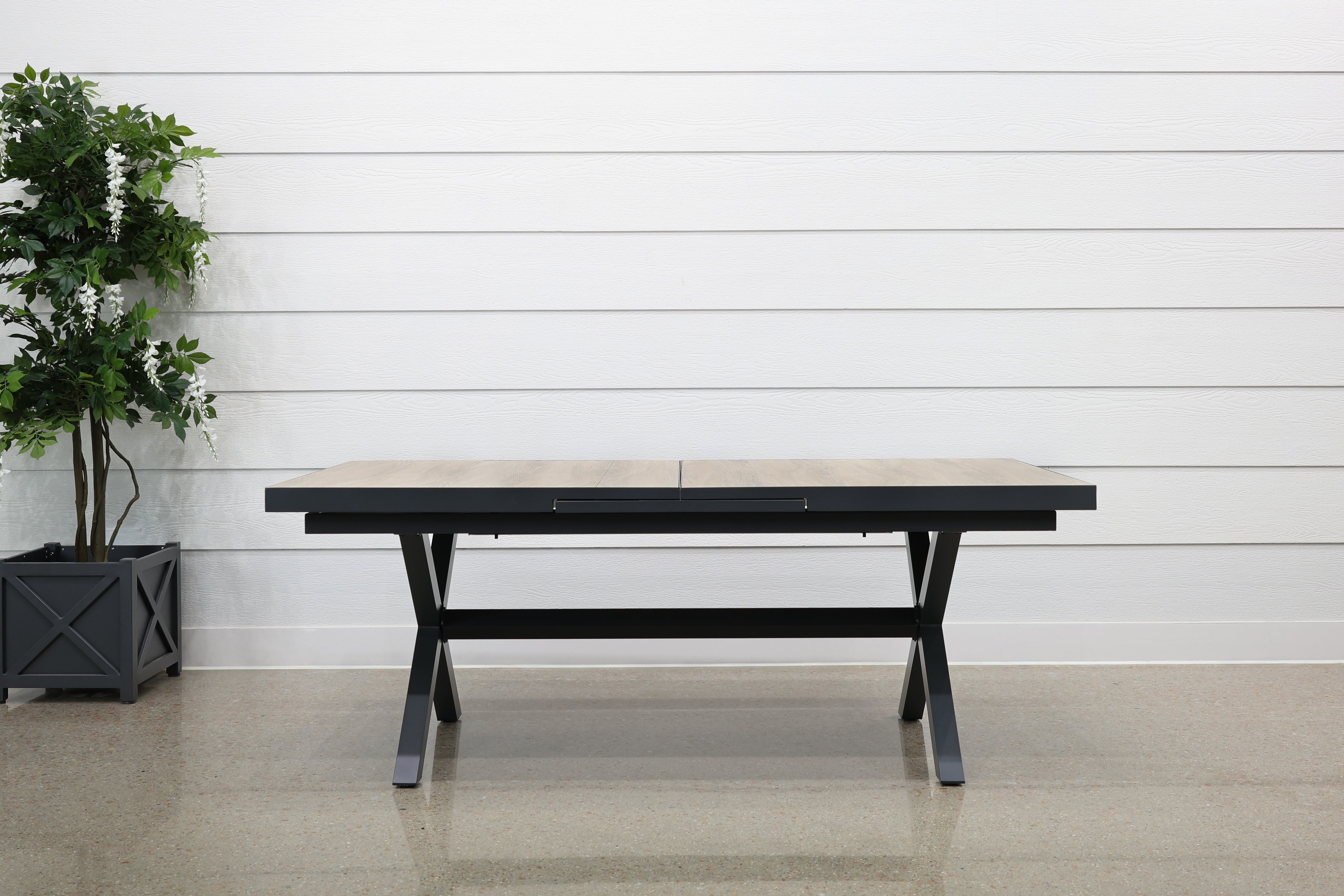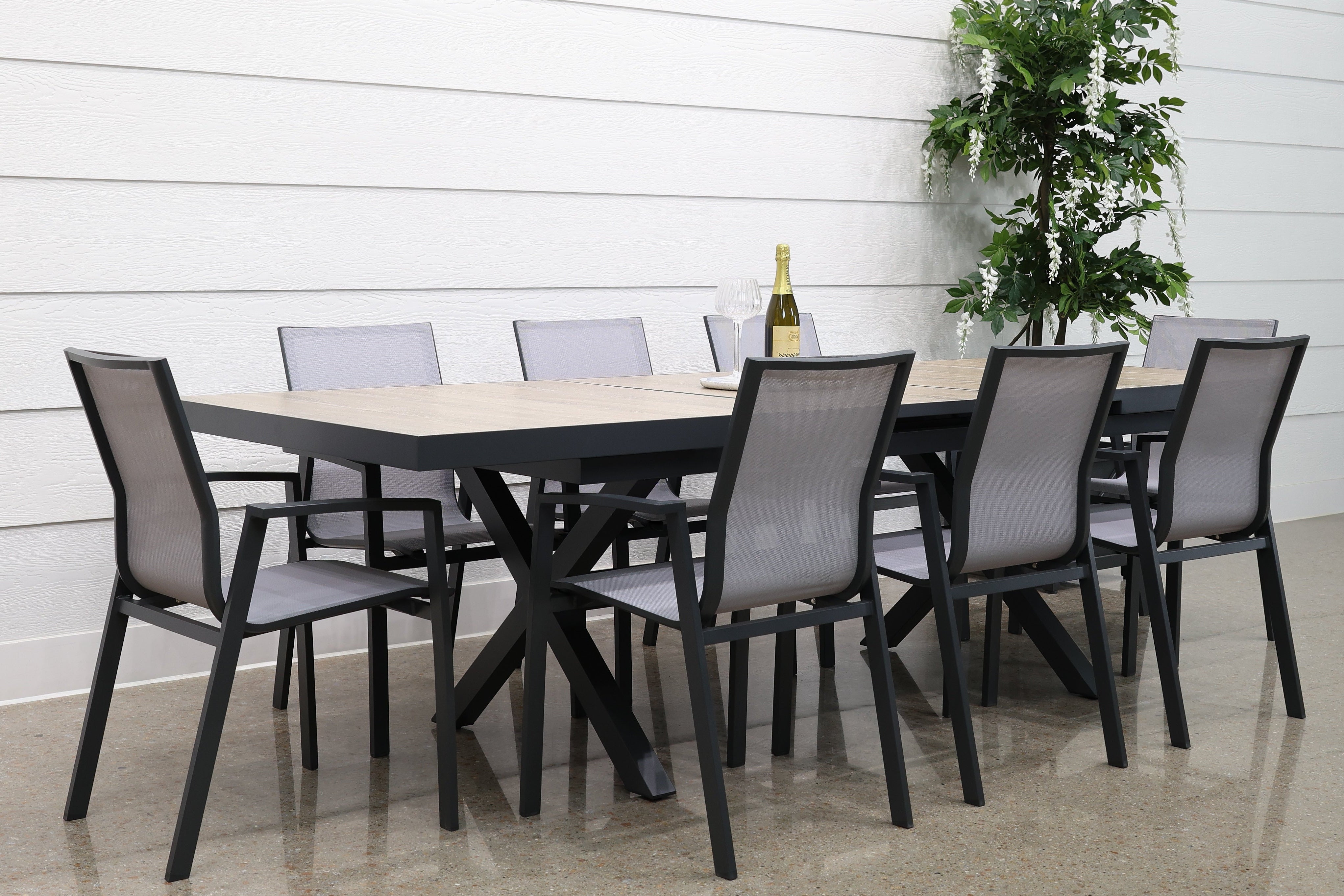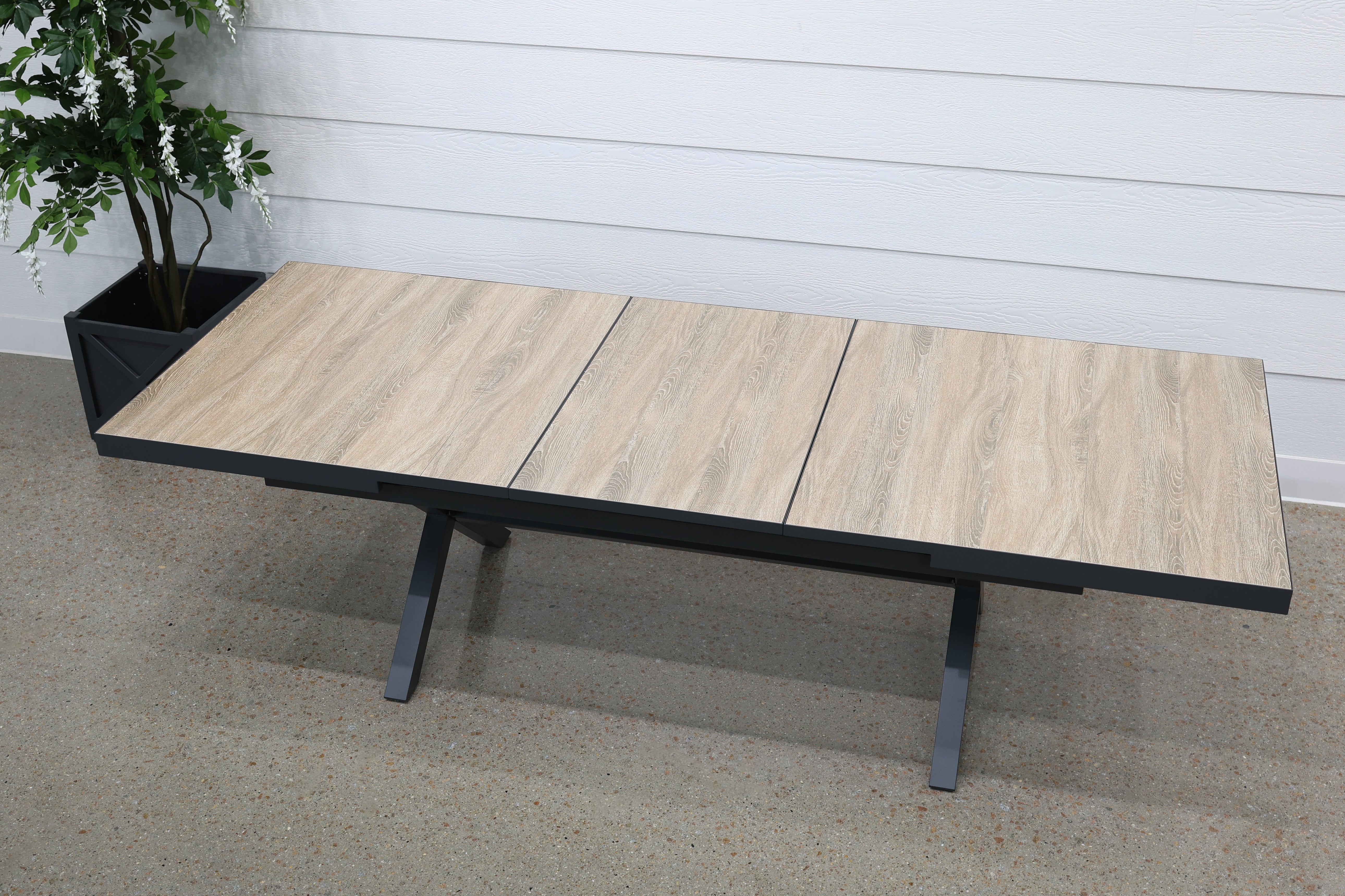 Sleek, sturdy and beautifully modern, the Anglesea Extension Table is designed to elevate your outdoor entertaining. Featuring a wood-look ceramic tiled top and a bold cross-leg frame, this table is as practical as it is stylish. The smooth extension mechanism allows you to effortlessly expand the table when needed, with a clever centre panel that automatically raises and retracts into place. Whether you’re hosting an intimate dinner or a lively gathering, the Anglesea is sure to impress and deliver in style.