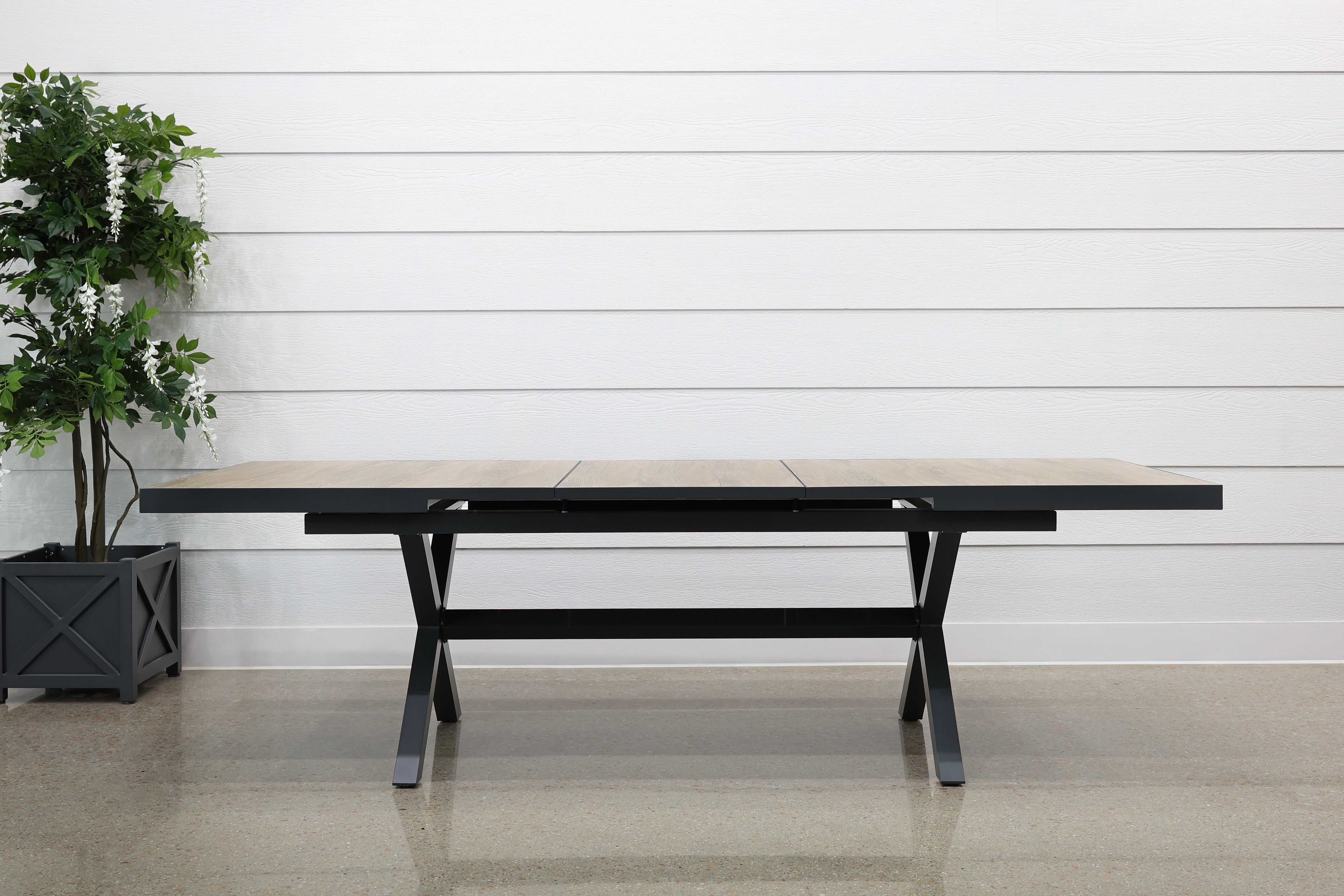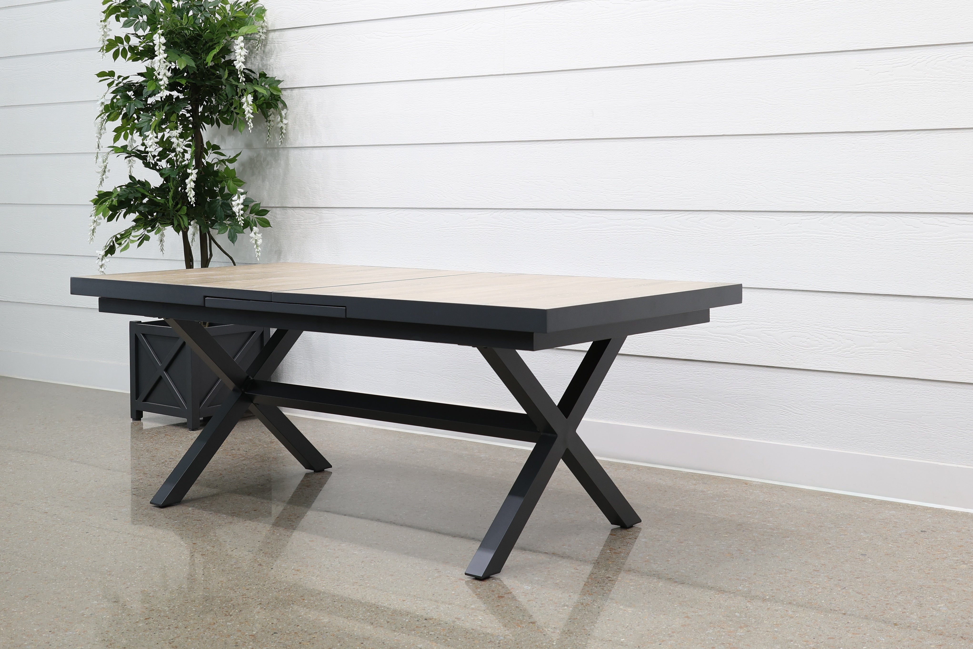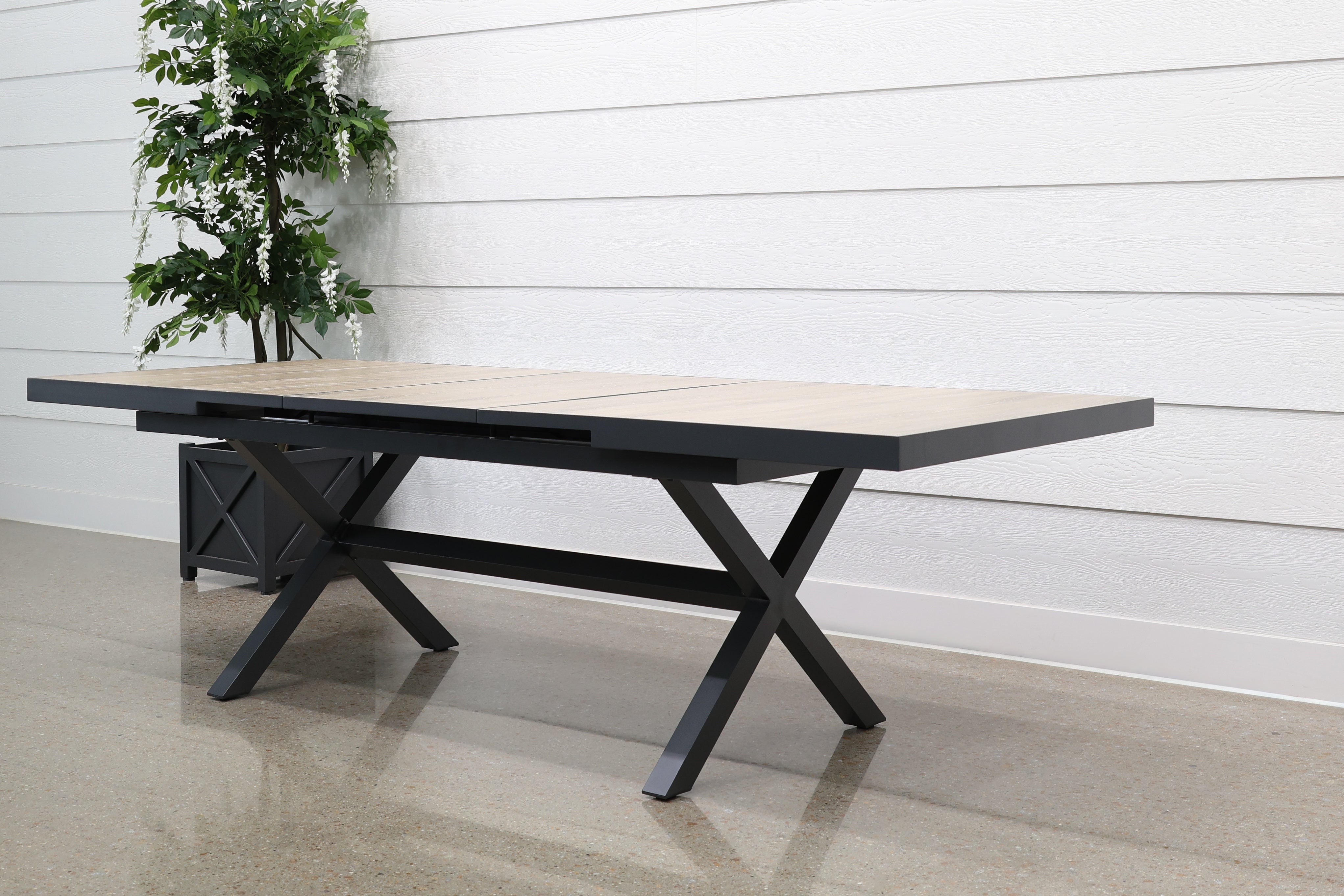 Sleek, sturdy and beautifully modern, the Anglesea Extension Table is designed to elevate your outdoor entertaining. Featuring a wood-look ceramic tiled top and a bold cross-leg frame, this table is as practical as it is stylish. The smooth extension mechanism allows you to effortlessly expand the table when needed, with a clever centre panel that automatically raises and retracts into place. Whether you’re hosting an intimate dinner or a lively gathering, the Anglesea is sure to impress and deliver in style.