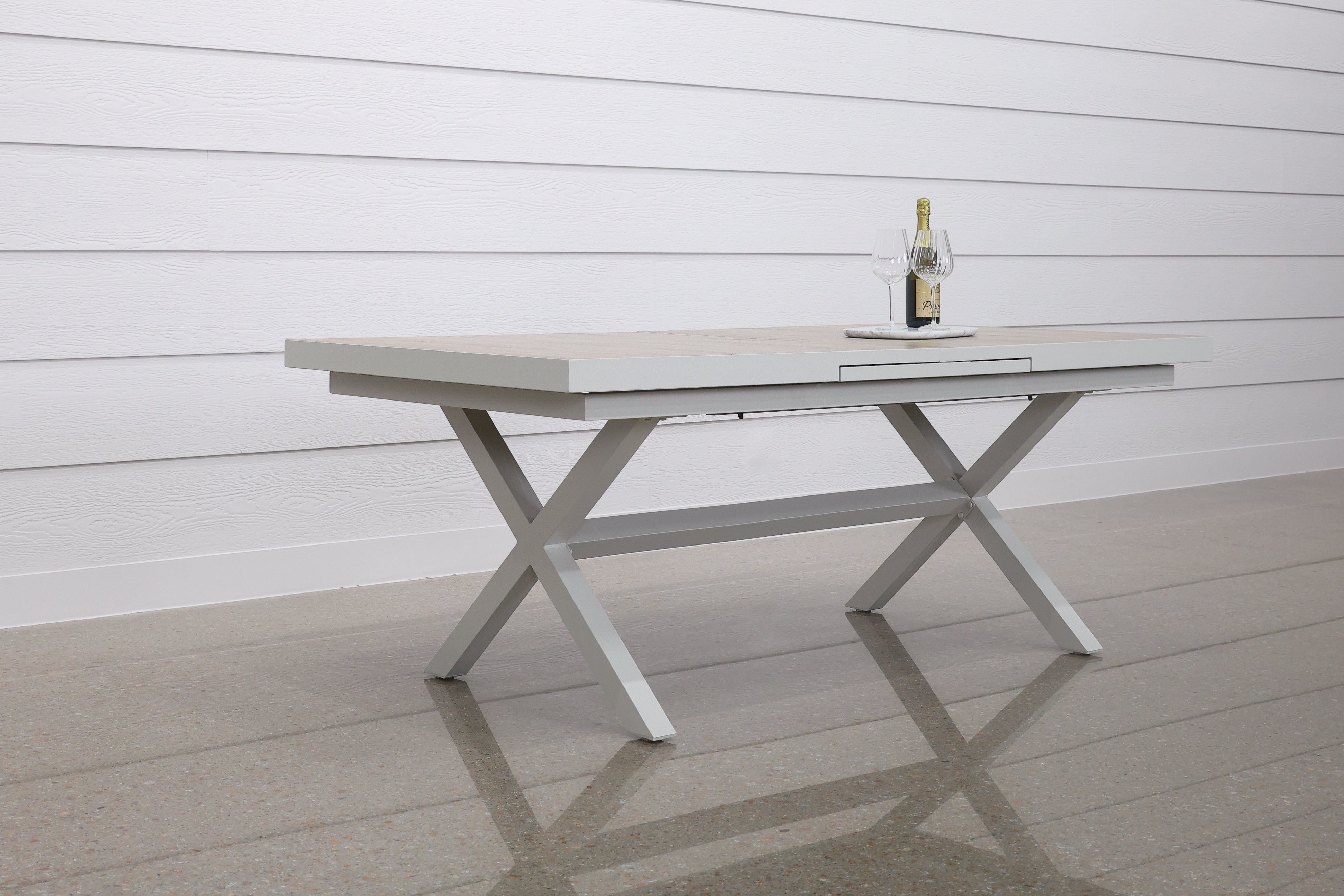 Sleek, sturdy and beautifully modern, the Anglesea Extension Table is designed to elevate your outdoor entertaining. Featuring a wood-look ceramic tiled top and a bold cross-leg frame, this table is as practical as it is stylish. The smooth extension mechanism allows you to effortlessly expand the table when needed, with a clever centre panel that automatically raises and retracts into place. Whether you’re hosting an intimate dinner or a lively gathering, the Anglesea is sure to impress and deliver in style.