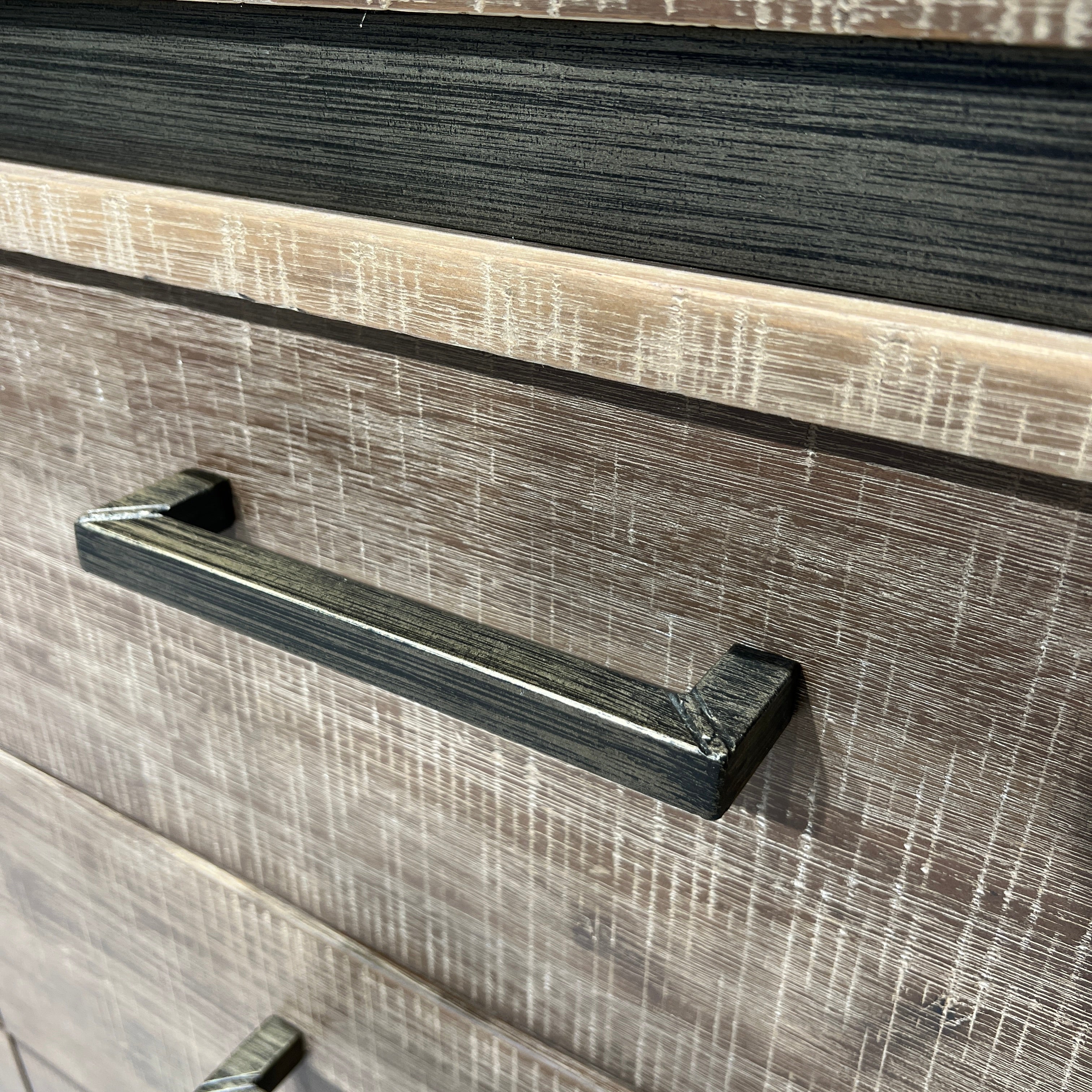 Elevate the comfort and charm of your bedroom with the rustic-inspired Ballarat collection. The combination of weathered-look timber and metal accents creates a warm and inviting ambience that will beautifully complement any home decor. Crafted using Acacia Timber, MDF Veneers & metal accents.