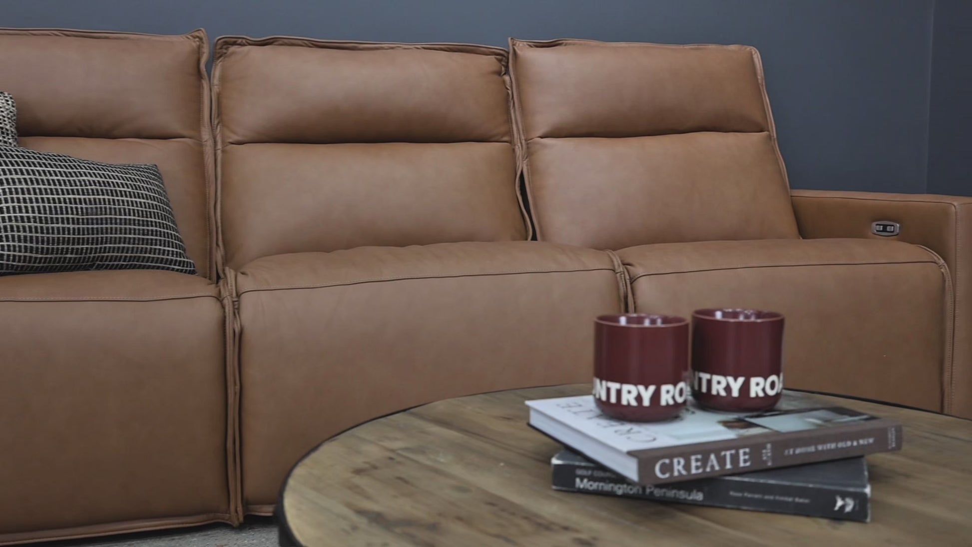 The Bathurst Collection pairs luxurious leather upholstery with the comfort of dual reclining seats, delivering effortless relaxation for everyday living. Built-in charging ports add modern convenience, keeping your devices powered while you unwind. Its clean, tailored silhouette is softened by plush cushioning and refined stitching, creating a warm, inviting look that elevates any living space.