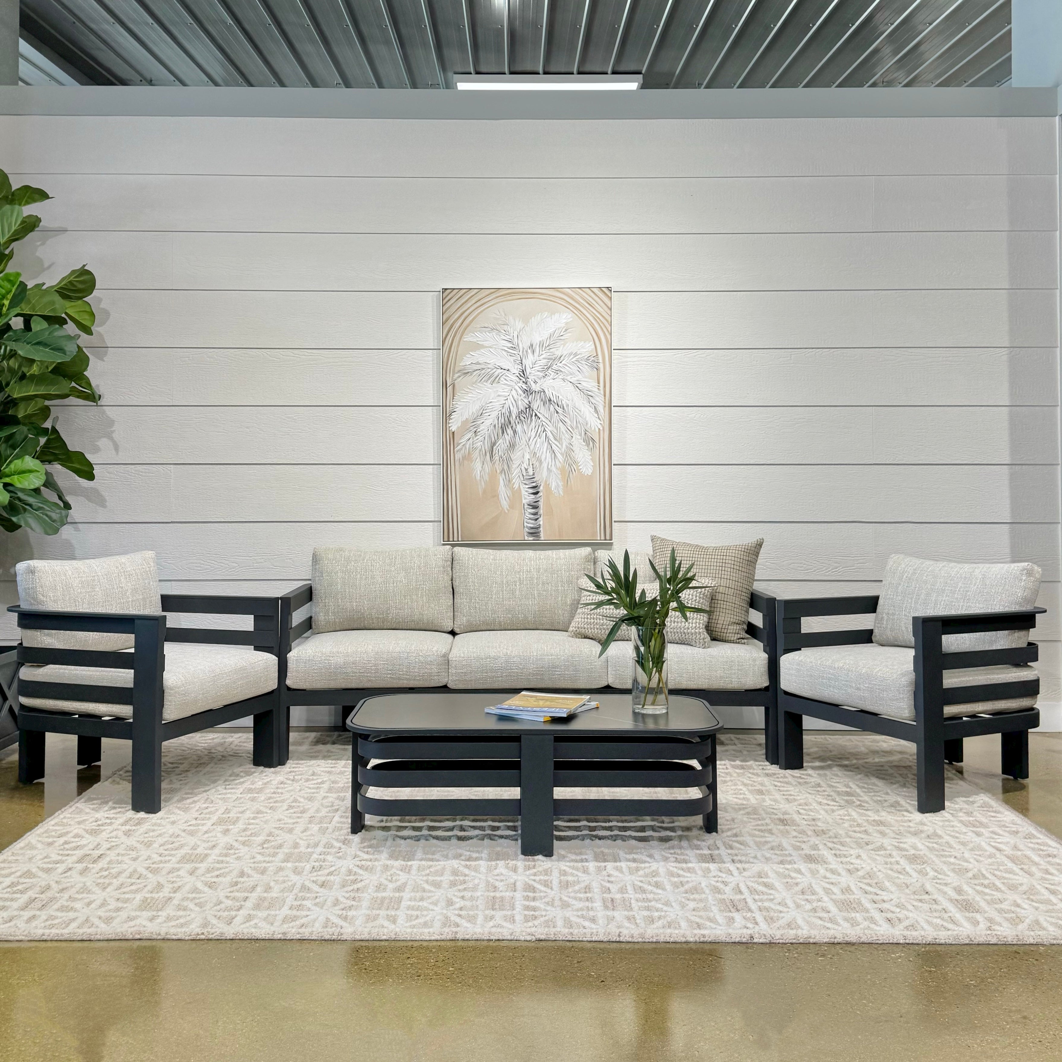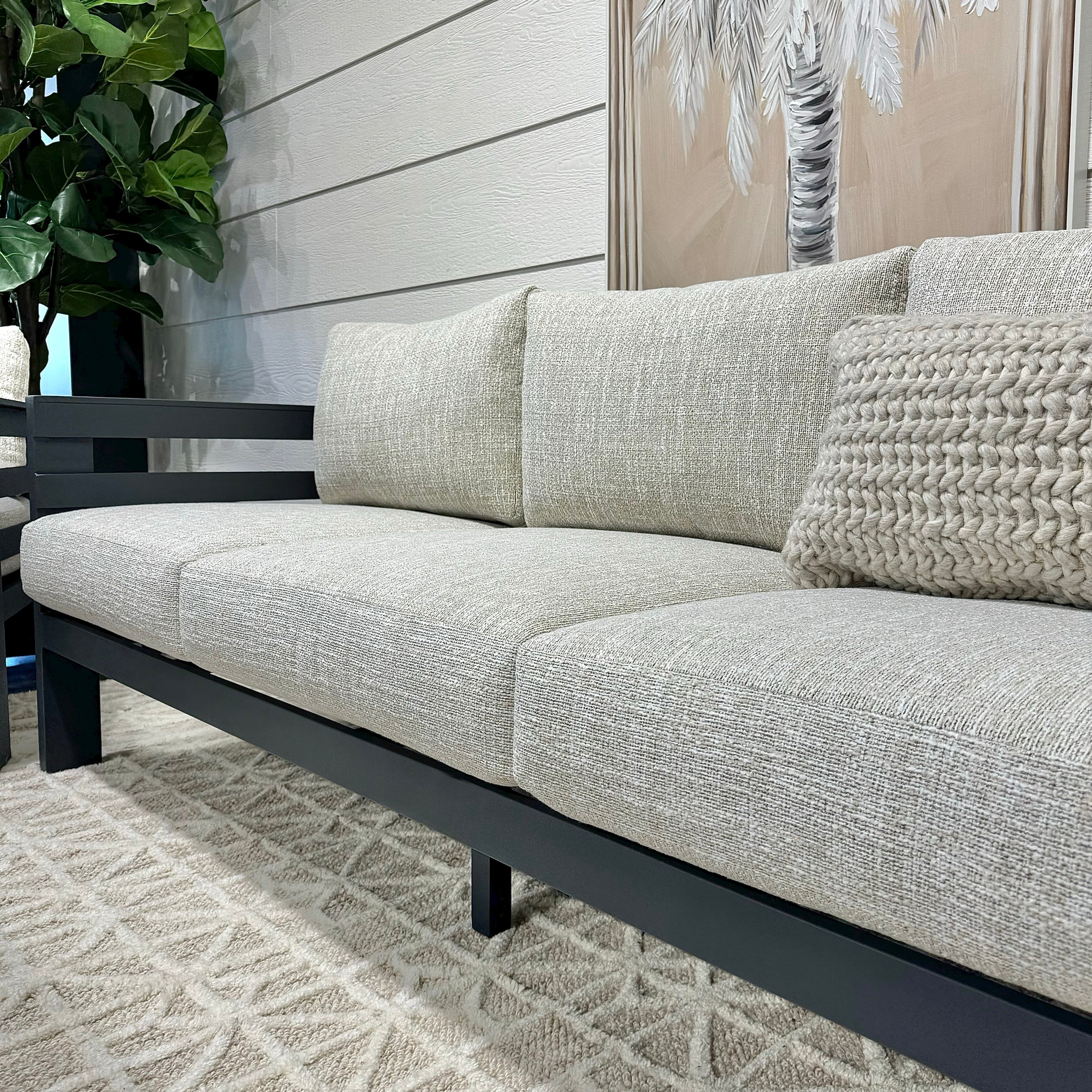 Indulge in supreme relaxation and sophistication with our Bundalong 4 piece outdoor lounge setting. Meticulously designed with a powder-coated Aluminium frame and waterproof olefin cushions, this versatile lounge set is tailored for the Australian climate. Elevate your outdoor living experience with the Bundalong setting, establishing a chic and welcoming oasis for unparalleled relaxation.