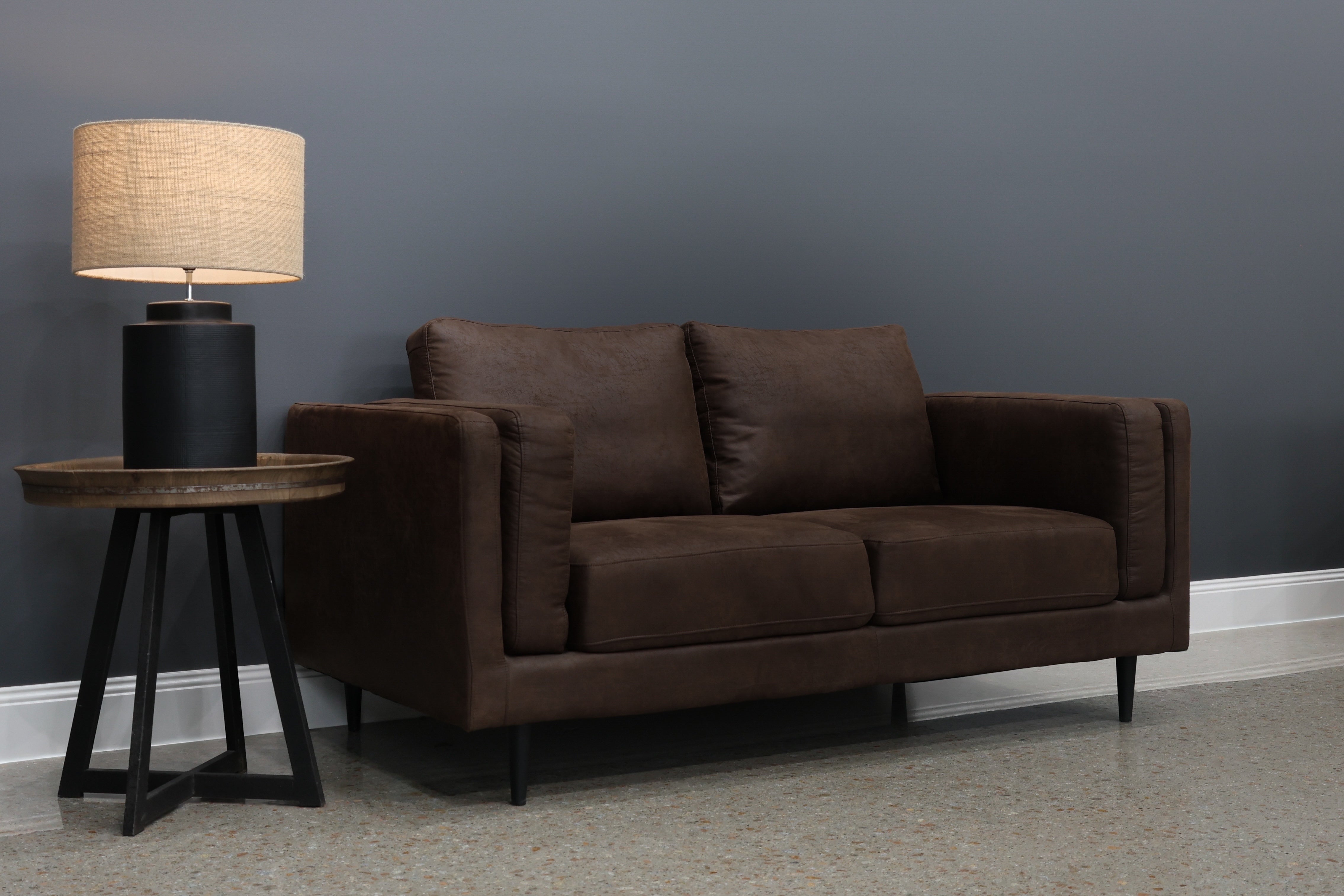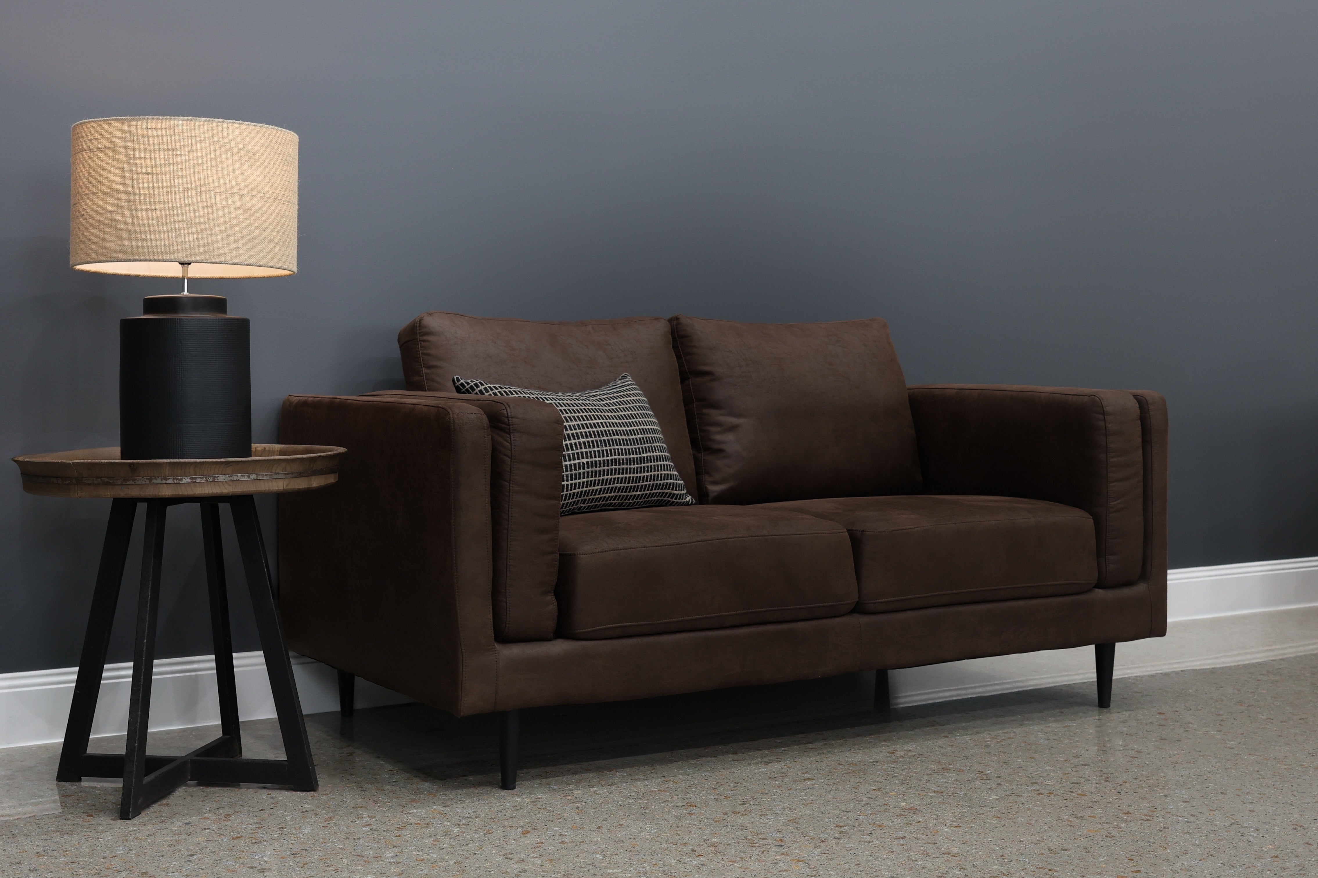 Sink into its plush pillow arm design, offering a cozy embrace like no other. The added touch of black metal legs not only elevates its appearance but also reinforces its sturdy steel frame construction, ensuring durability for years to come. Upholstered in a beautifully soft leather air fabric that feels luxurious to the touch and is available in three different colours, the Canberra Loveseat effortlessly blends into any home decor.