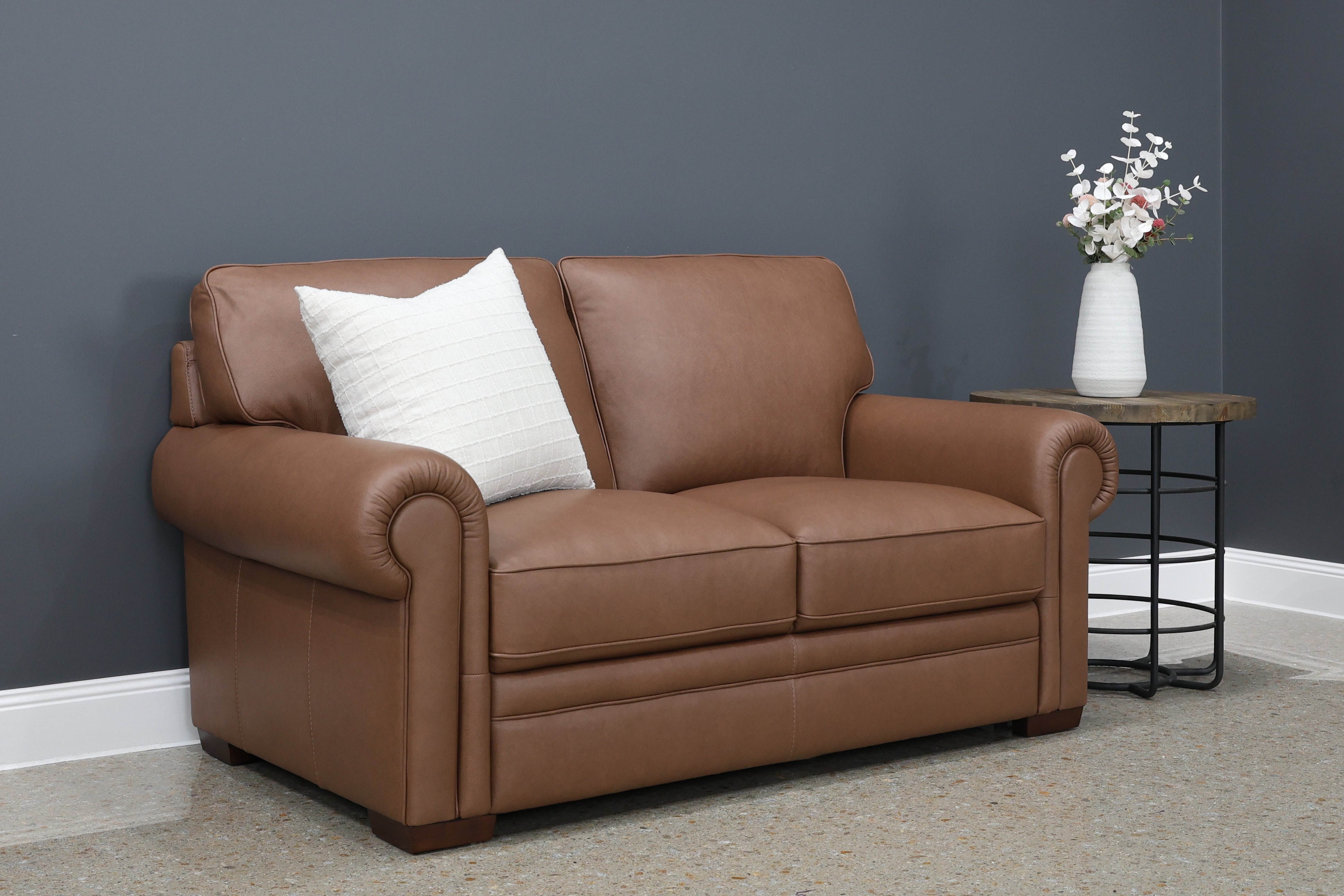 Bringing lasting charm, the Castlemaine range is upholstered in genuine top grain leather, adding warmth and character to any living space. Generously padded cushions and elegantly rolled arms provide comfort and sophistication. The Castlemaine range is ideal for those who value refined craftsmanship and enduring comfort.