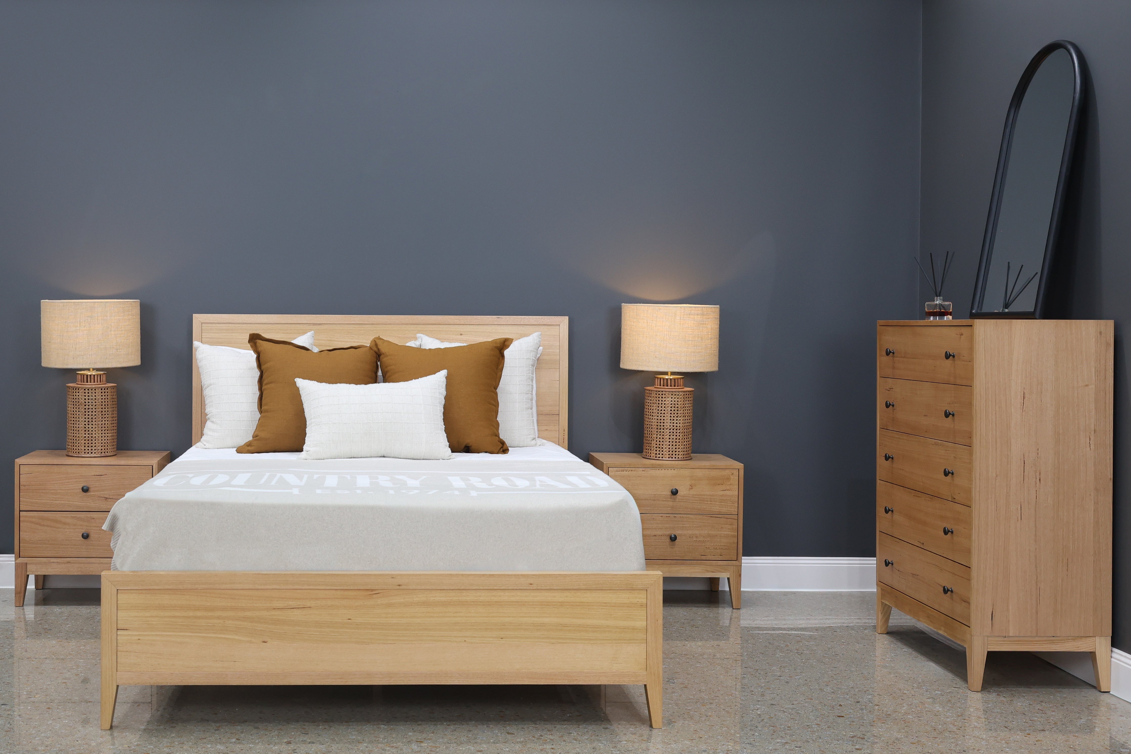 Elevate your bedroom with the timeless charm of the Colmar Collection. Crafted from premium messmate timber with natural grain and texture, this range blends minimalist elegance with everyday practicality. Featuring clean lines, subtle black hardware and warm natural finishes, the Colmar Collection includes beautifully designed bedroom pieces, all built for lasting style and functionality.
