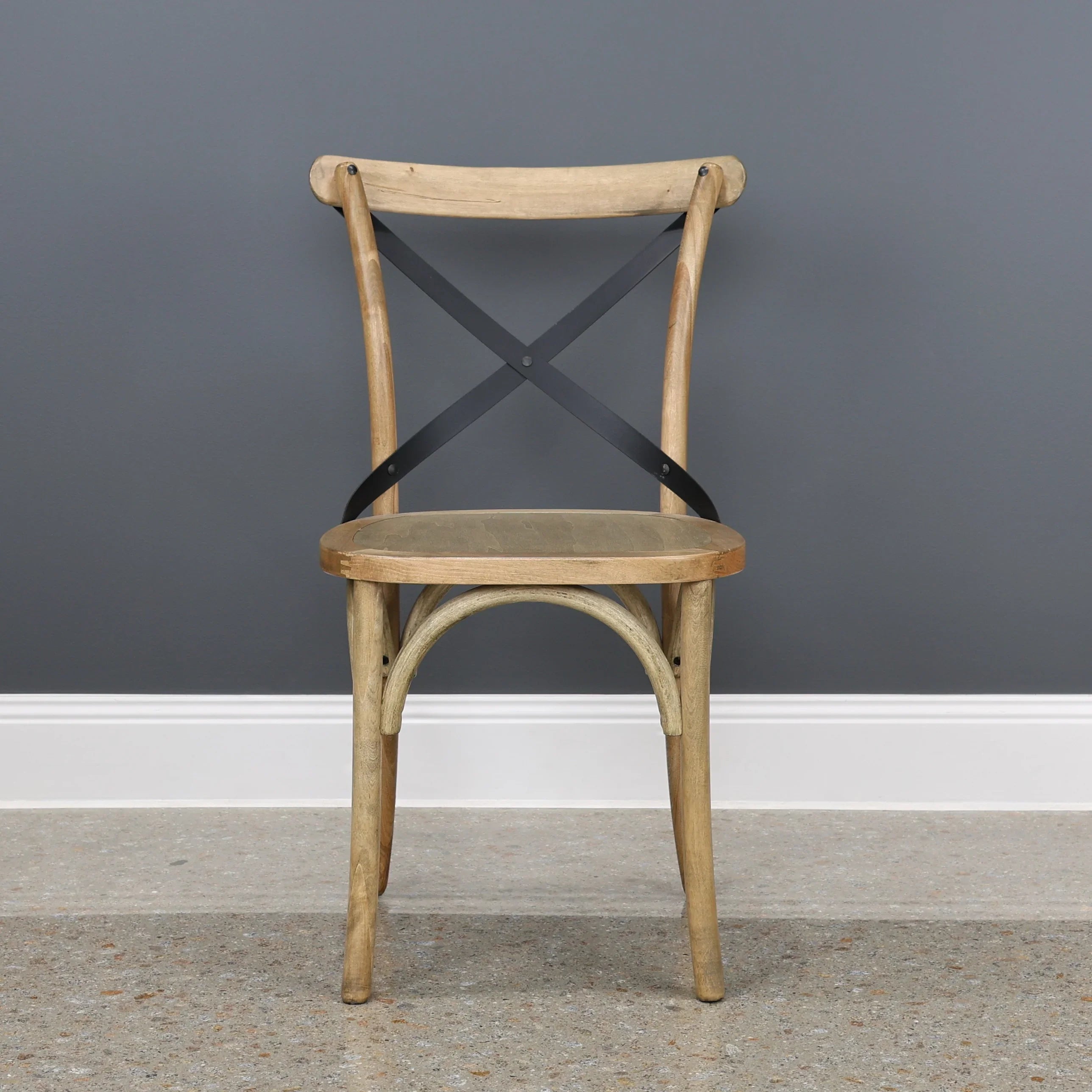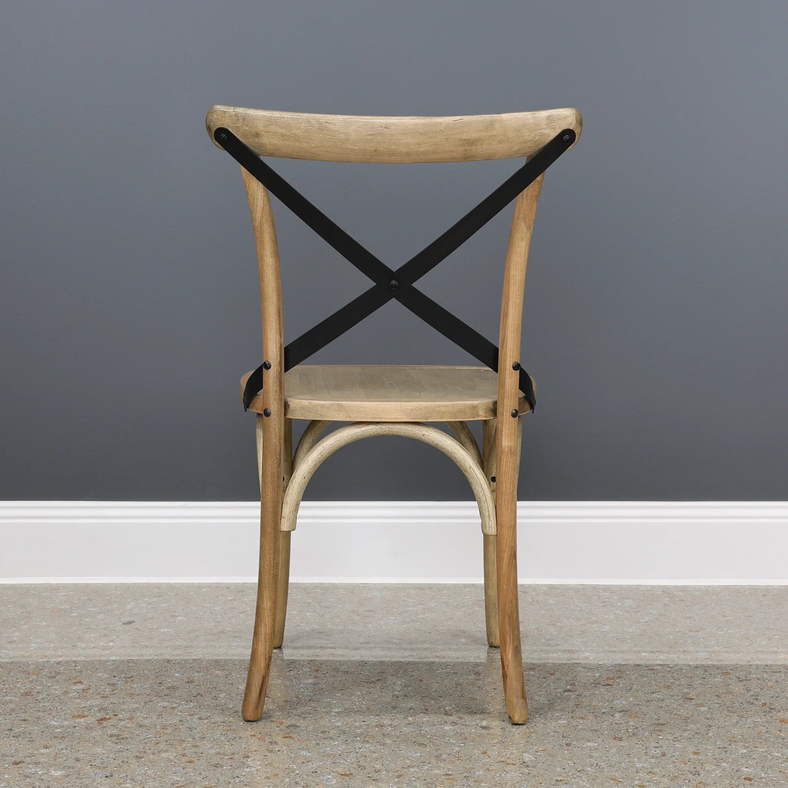 Introducing the Cross Chair. A fusion of rustic industrial style with French Provincial charm. Featuring beautiful birch wood, and a unique "cross back" design make it a charming and durable addition to any home. It's not just a functional piece but also a decorative accent that adds character and style to various interiors.