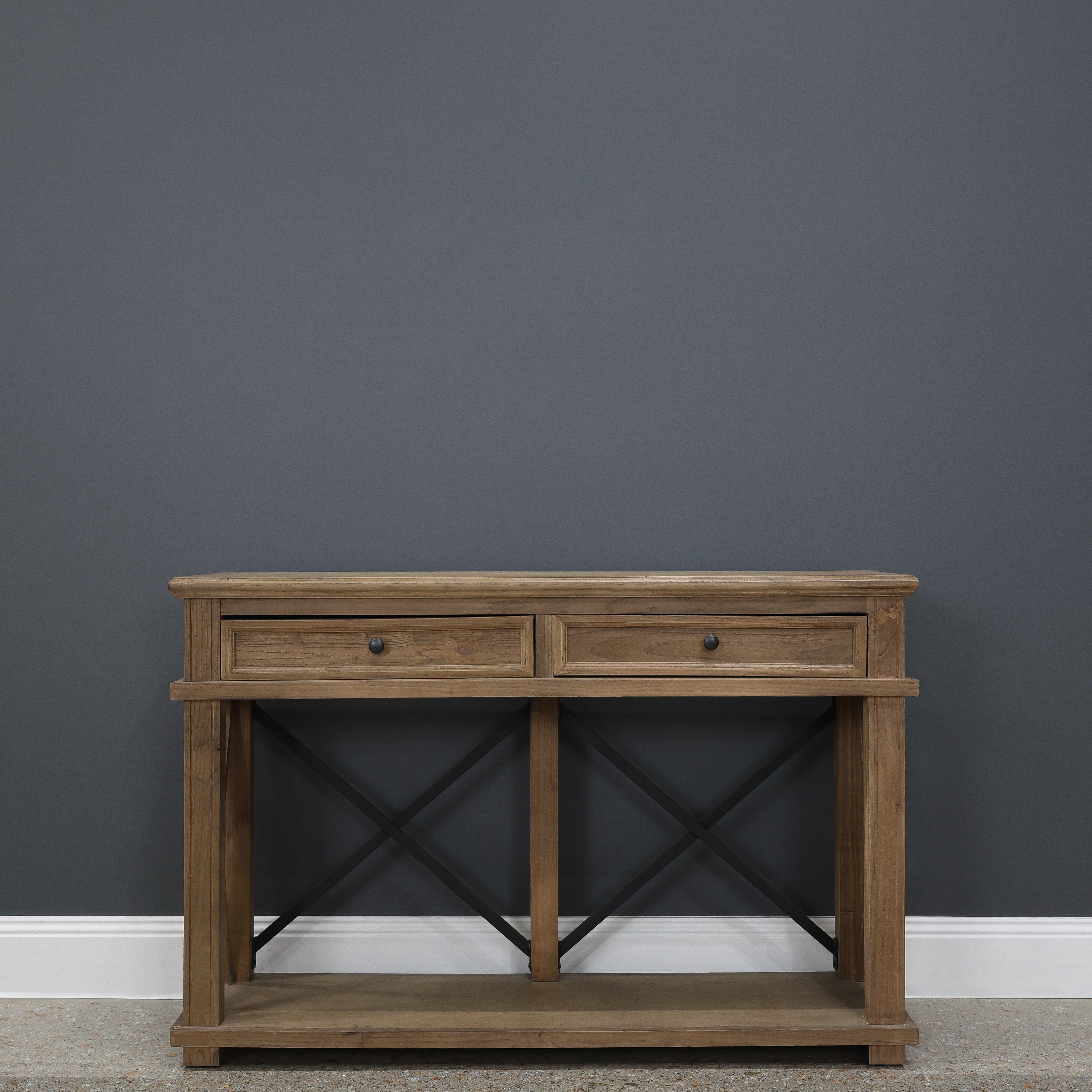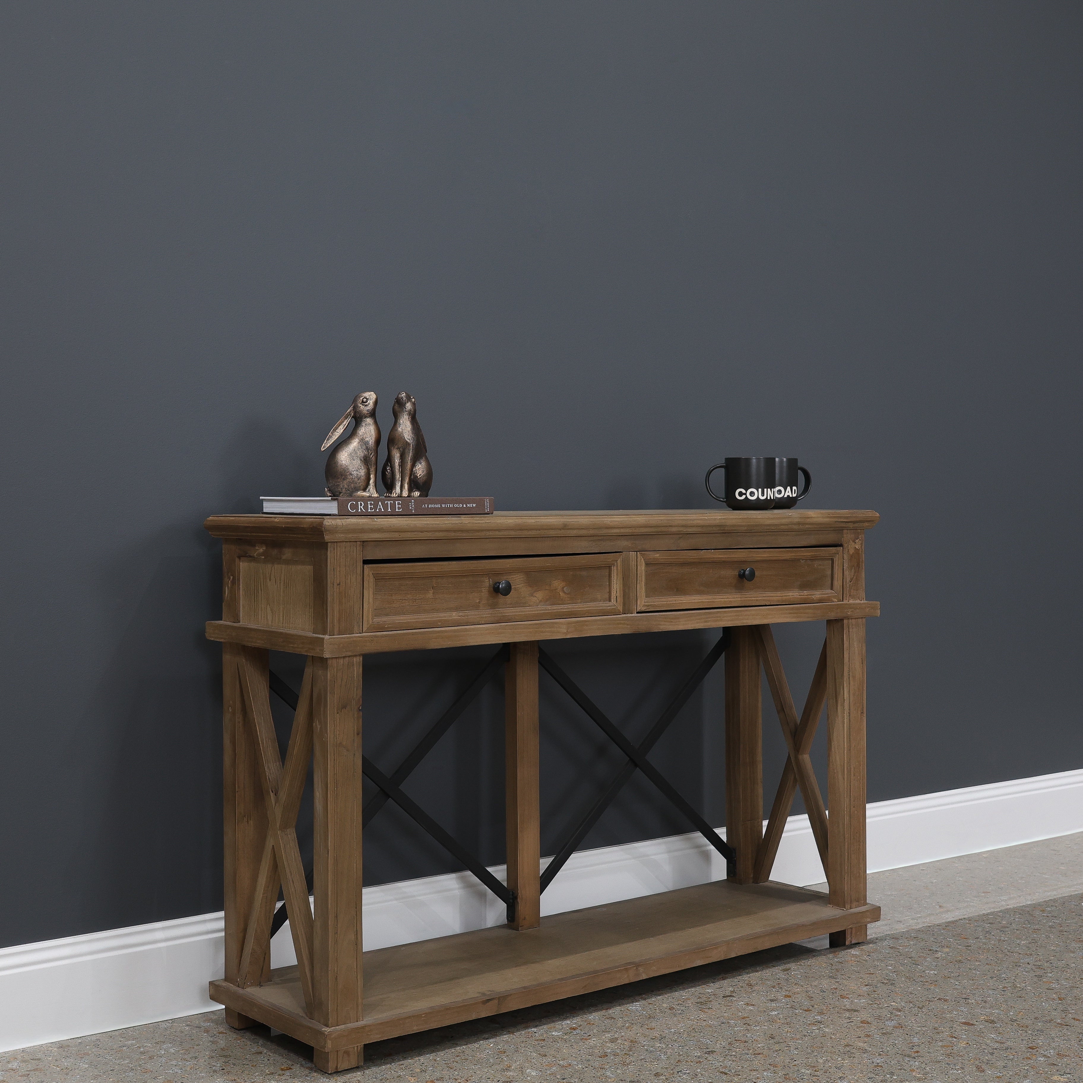 Featuring two spacious drawers elegantly adorned with brass handles, the Cross Roads Console provides ample storage space for your essentials. Whether you need to stow away daily clutter or showcase cherished items, this console offers the perfect balance of practicality and elegance.