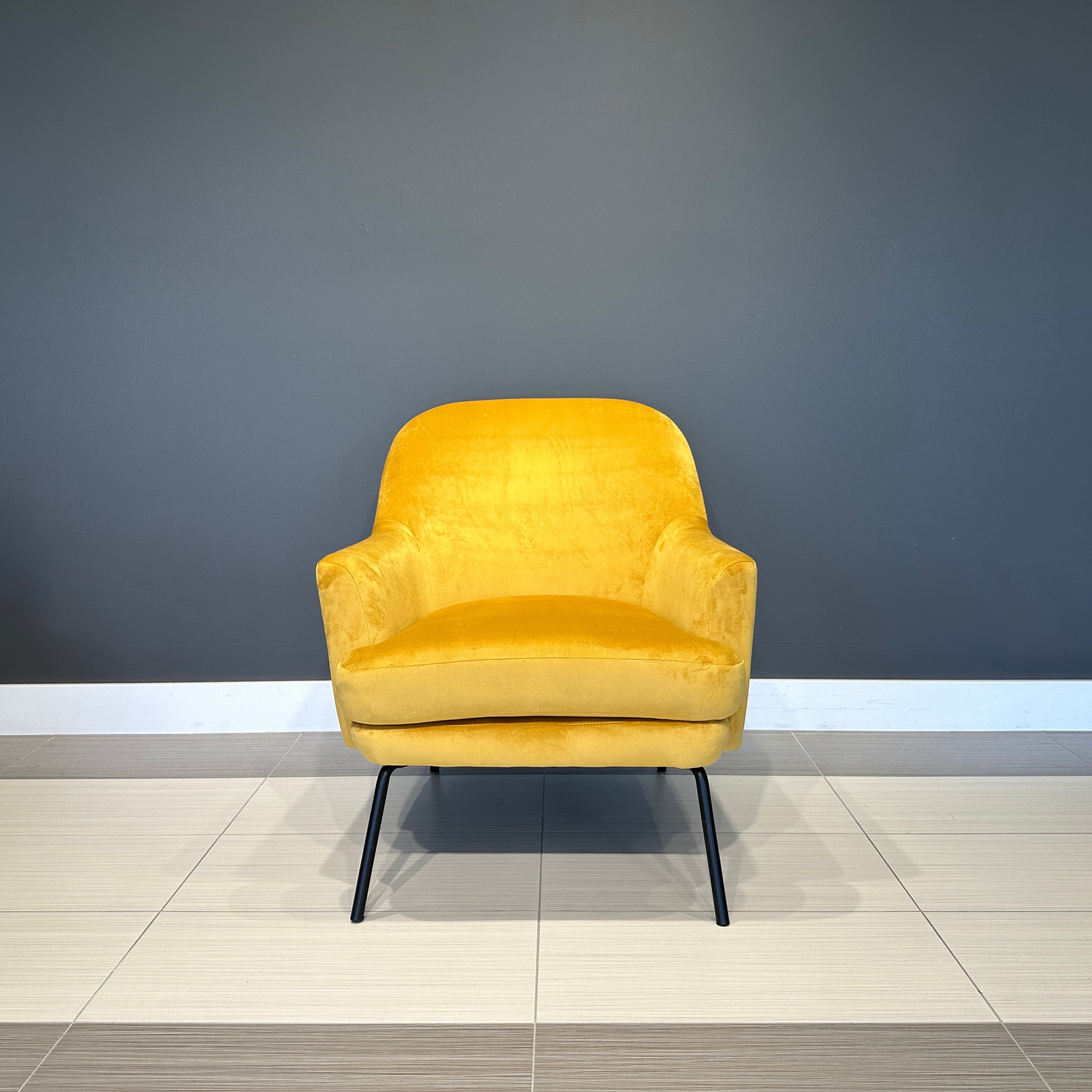 Amp up the cool factor in your room with the Darley accent chair. The gold polyester velvet provides a luxurious seat to relax in while soaking up your modern space.