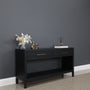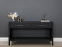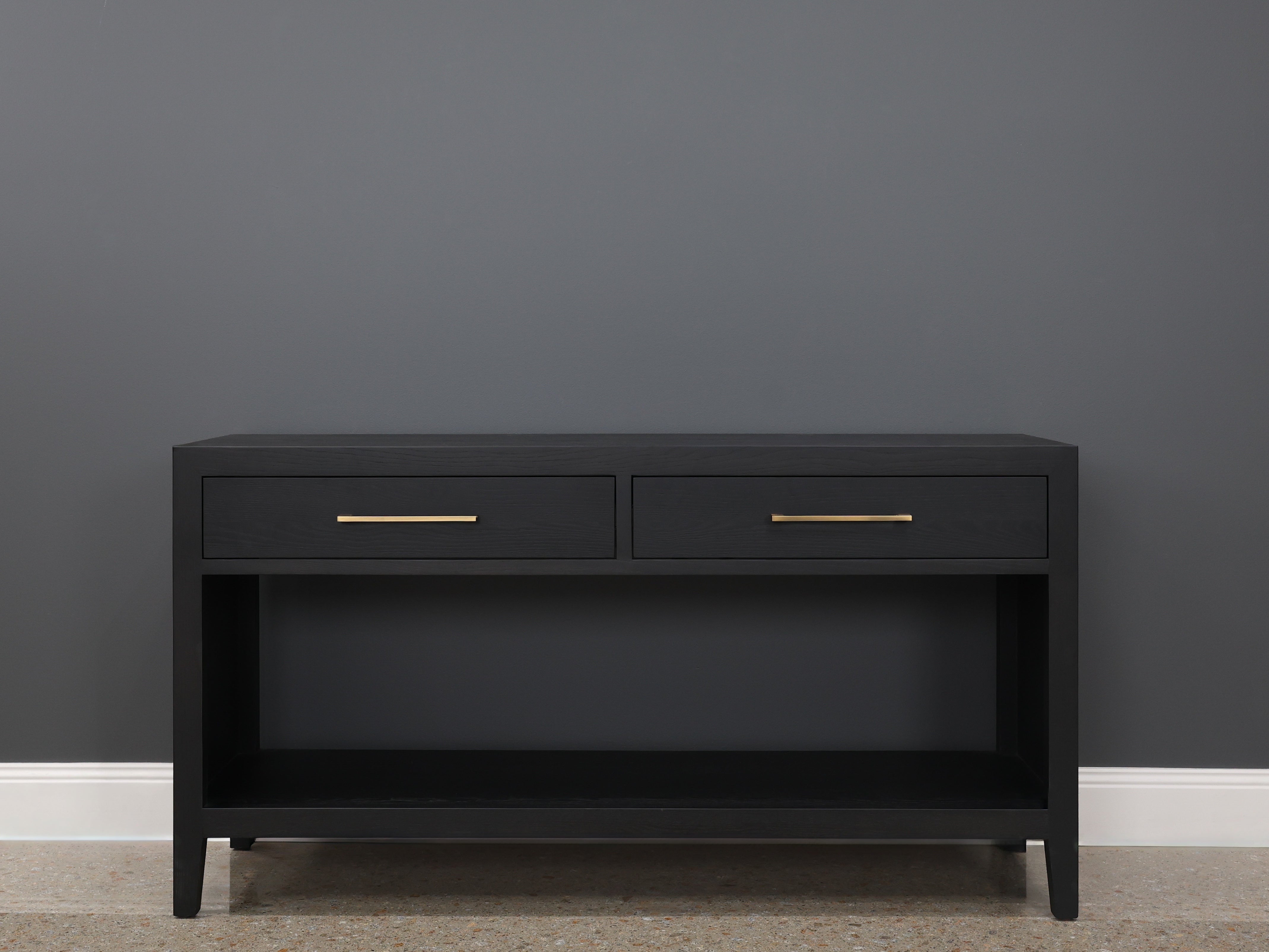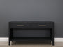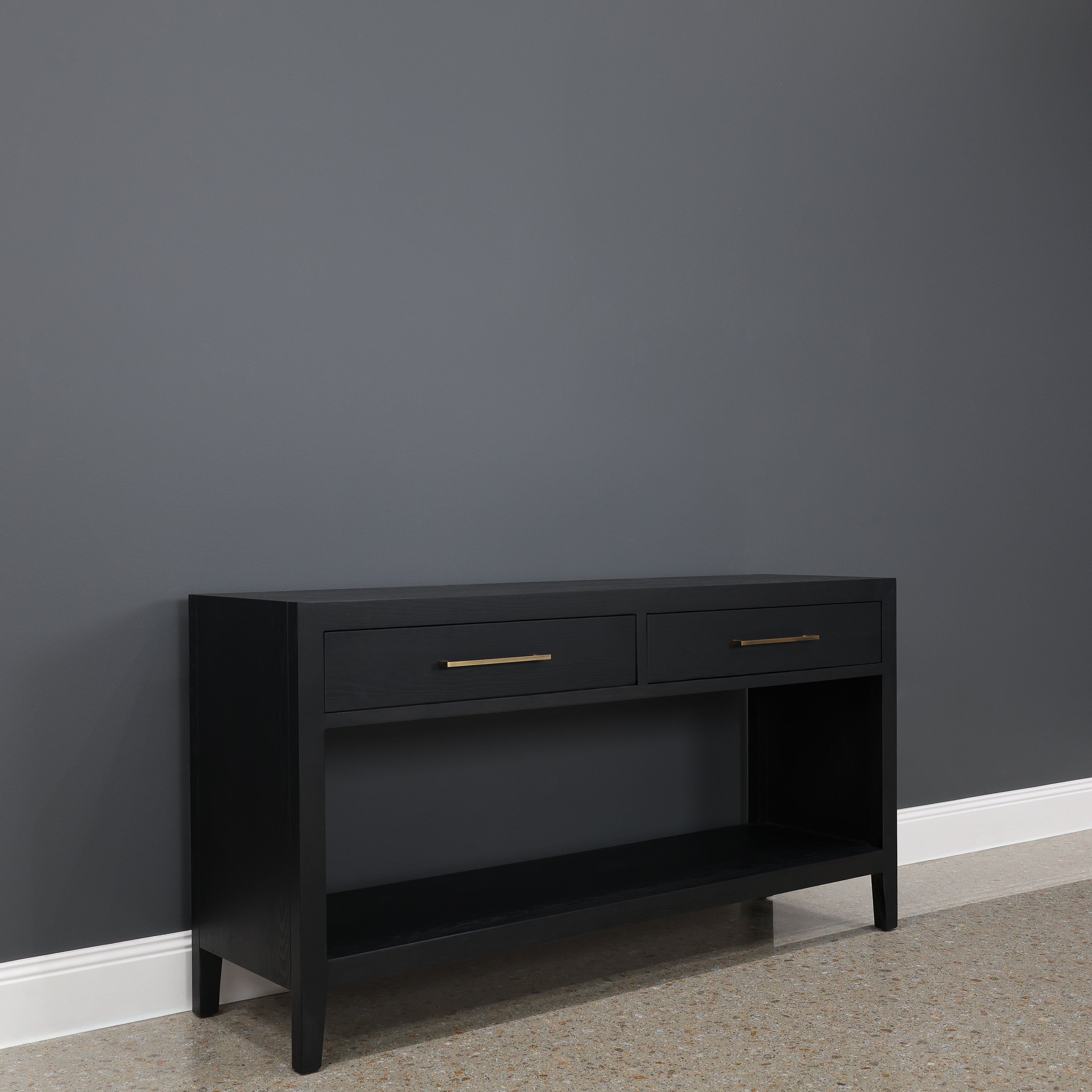 The Elizabeth Hall Table is a modern and elegant furniture piece that seamlessly blends functionality with contemporary aesthetics. Featuring a sleek black finish, this table is designed to compliment a variety of interior styles, from minimalist to sophisticated. It has two spacious drawers with stylish gold handles, providing ample storage for everyday essentials. The sturdy construction ensures durability, while the lower open shelf enhances both practicality and design. Perfect for entryways, hallways, or living spaces, the Elizabeth Hall Table adds a touch of sophistication to any home.