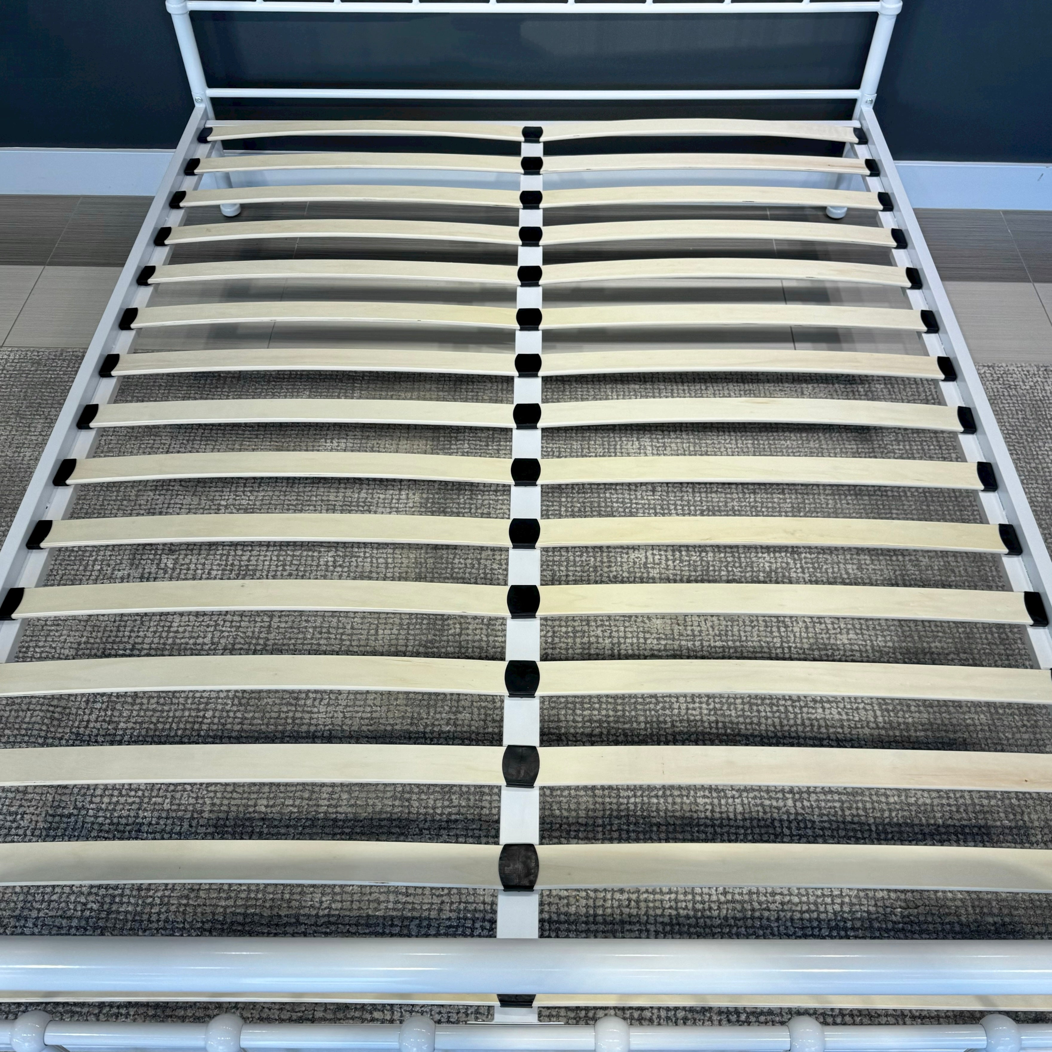 Experience timeless sophistication with our Emerald Steel Bed - it's elegant & versatile design features an open foot and head, ensuring your space maintains a bright and airy feel, while seamlessly complementing various styles of bedding. Meticulously crafted, its graceful curves elevate the ambiance of your bedroom. Engineered for durability, this bed frame employs a metal tube frame and plywood posture slats to provide unparalleled support and resilience, ensuring lasting quality.