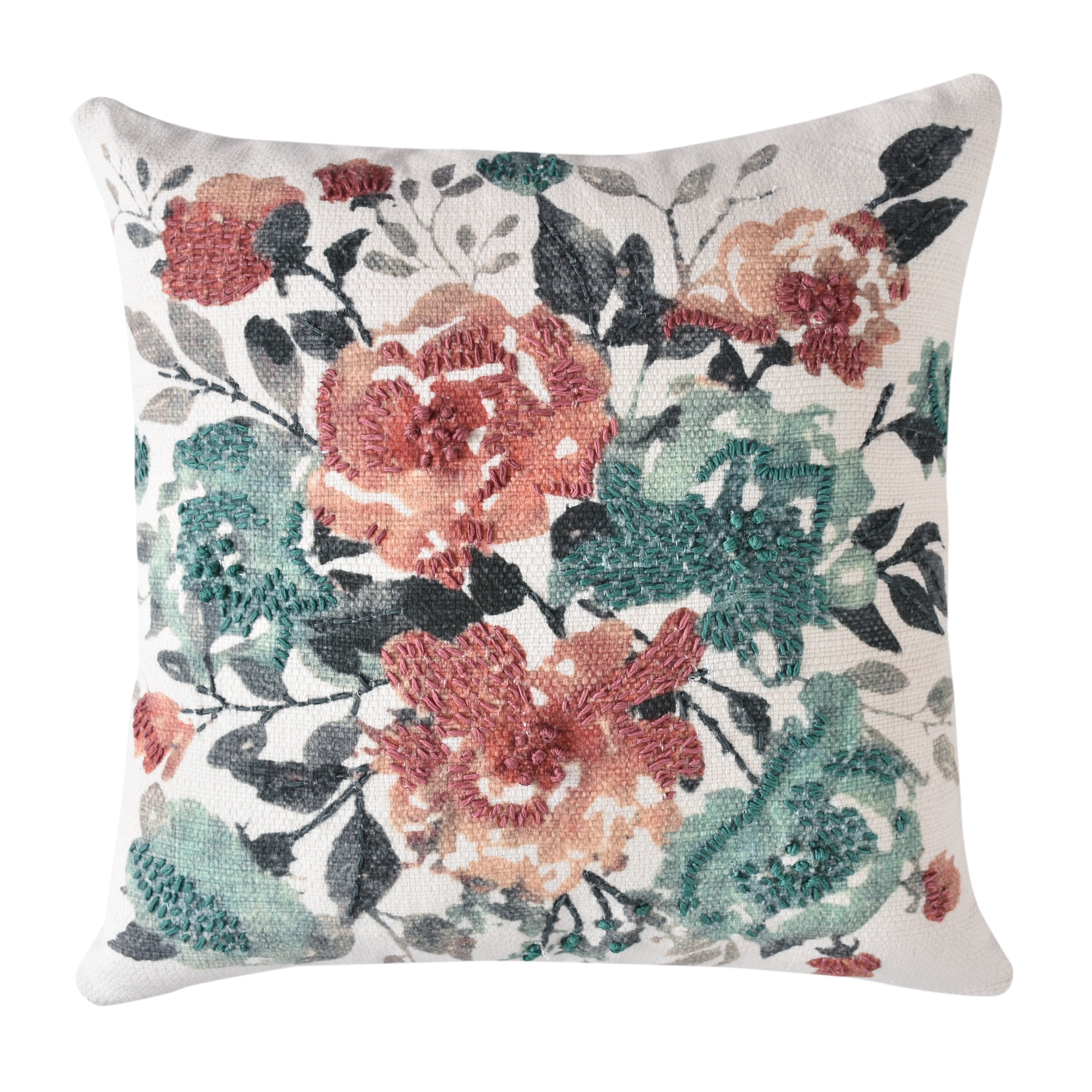 Floral Botanica Cushion 50x50cm - Duck Egg & Blush