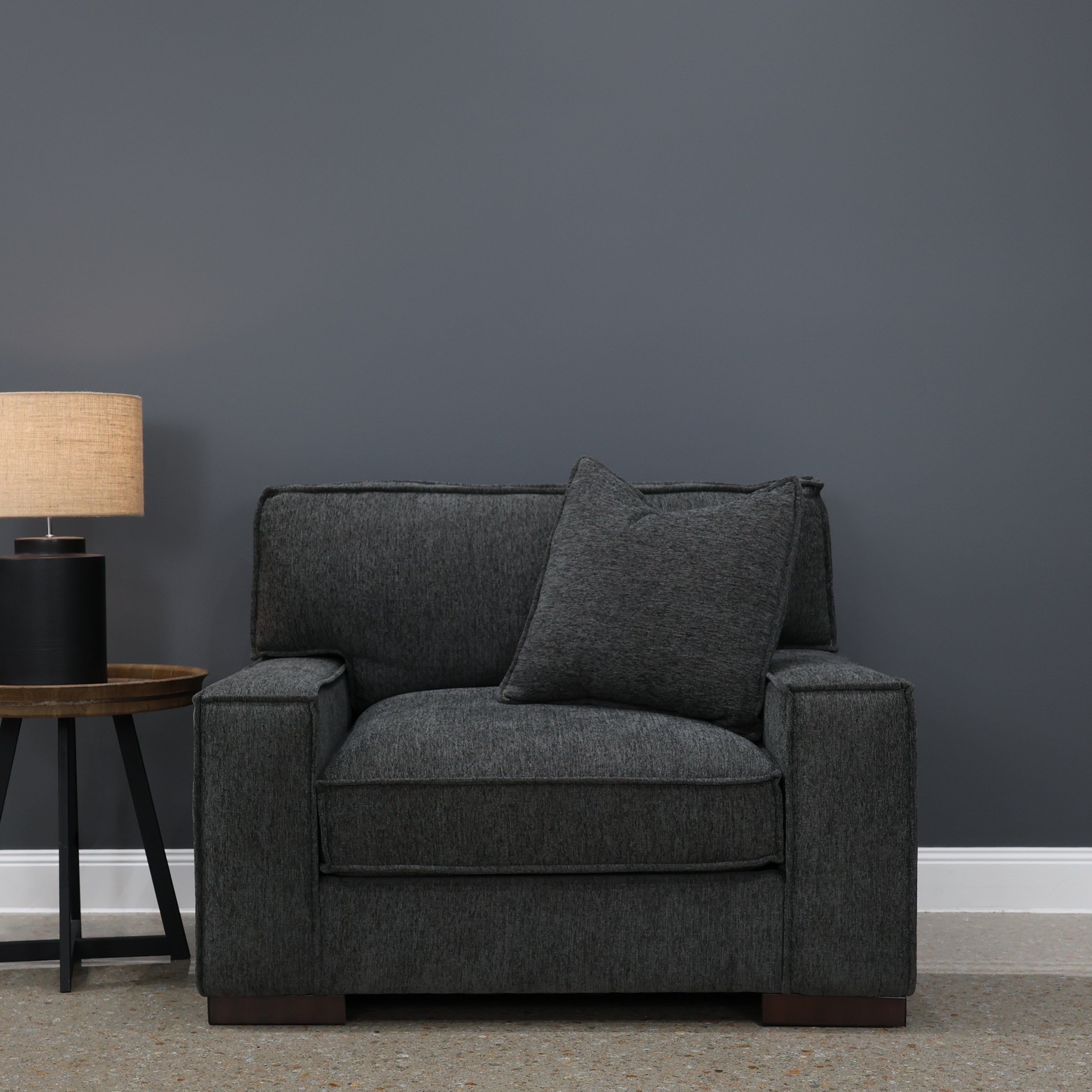 The Gembrook Chair and a Half is the perfect combination of modern design and ultimate comfort, making it an inviting addition to any living space. Upholstered in a sophisticated dark grey fabric, this oversized chair offers a plush seating experience, ideal for lounging solo or curling up with a good book. With its clean lines, generous proportions, and stylish aesthetic, the Gembrook Chair and a Half seamlessly complements contemporary and transitional interiors.