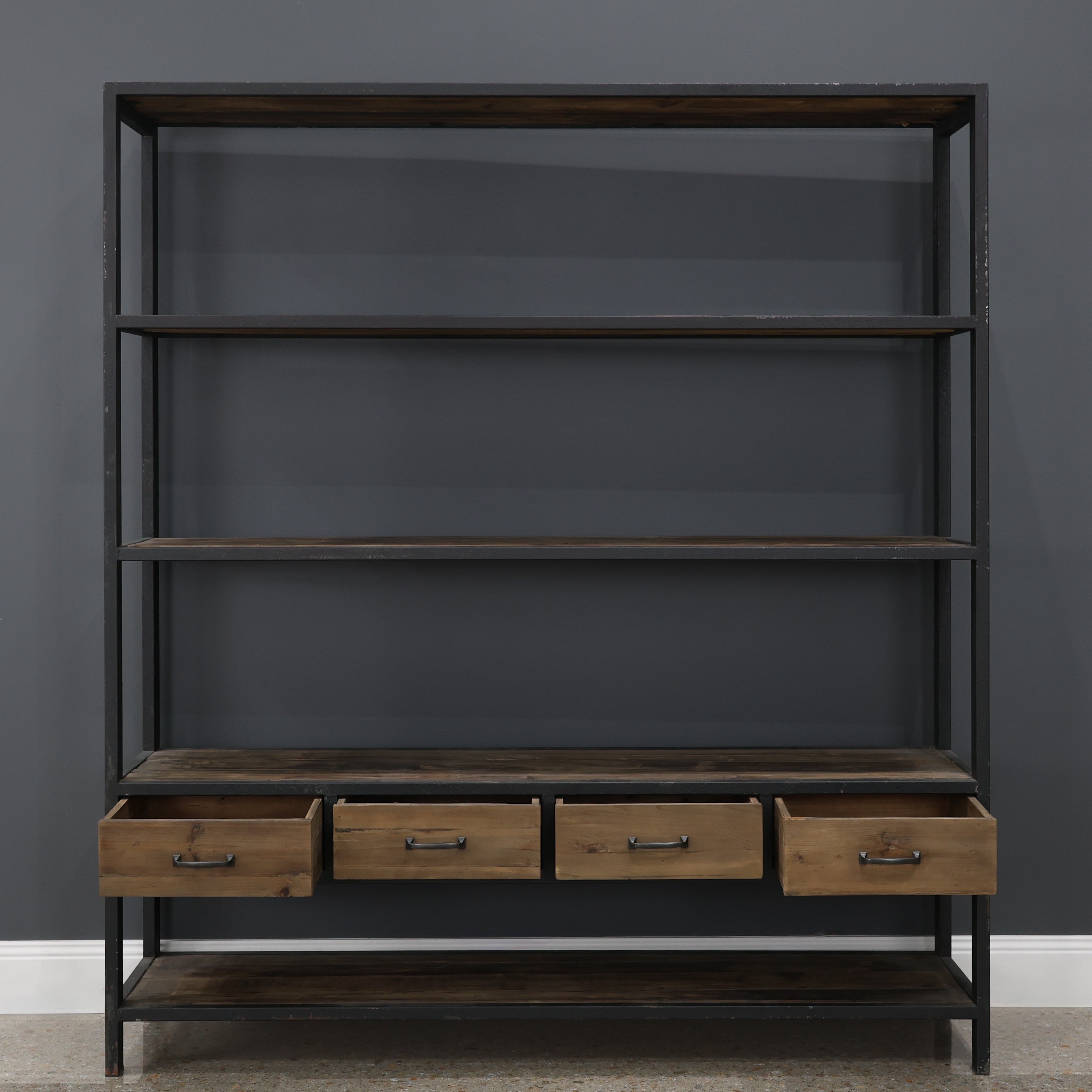 Introducing the Hagrid Bookcase Large with 4 Drawers - A Rustic Elegance Crafted from Recycled Materials. Embrace sustainability and the allure of imperfection with the Hagrid Bookcase, meticulously crafted from recycled materials, including metal, timber, and hardware. This remarkable piece carries the distinctive charm of imperfections adding an authentic character to your space. For those seeking to infuse their home with unique character, the Hagrid Bookcase is the perfect choice. Each unit is an individual work of art, subtly varying due to the inherent nature of the timber used, ensuring that your piece is truly one-of-a-kind. Featuring four open storage shelves, this bookcase not only adds character to your space but also offers practical storage solutions. Whether you're displaying your favourite books, decorative items, or cherished keepsakes, the Hagrid Bookcase Large with 4 Drawers marries rustic elegance with functionality for a unique and stylish addition to your home.