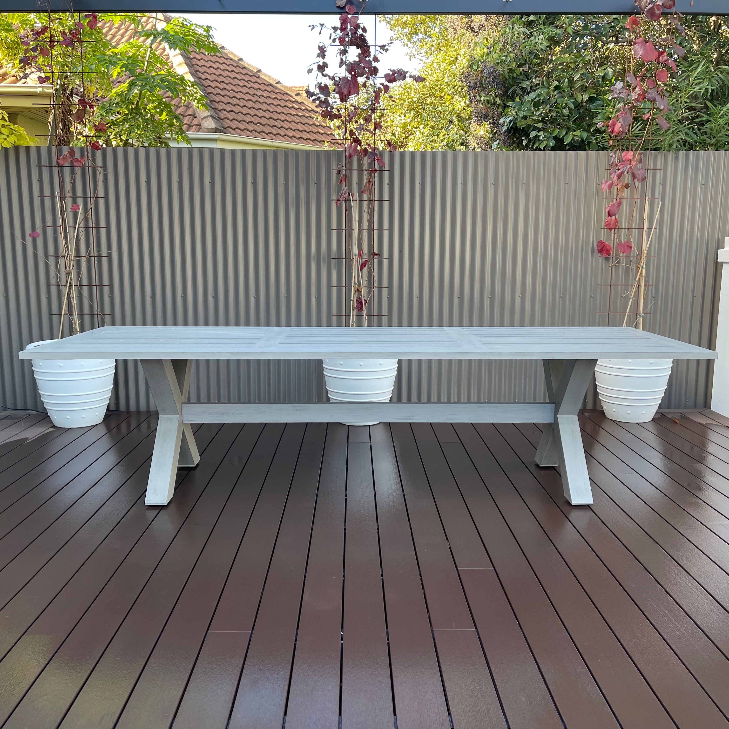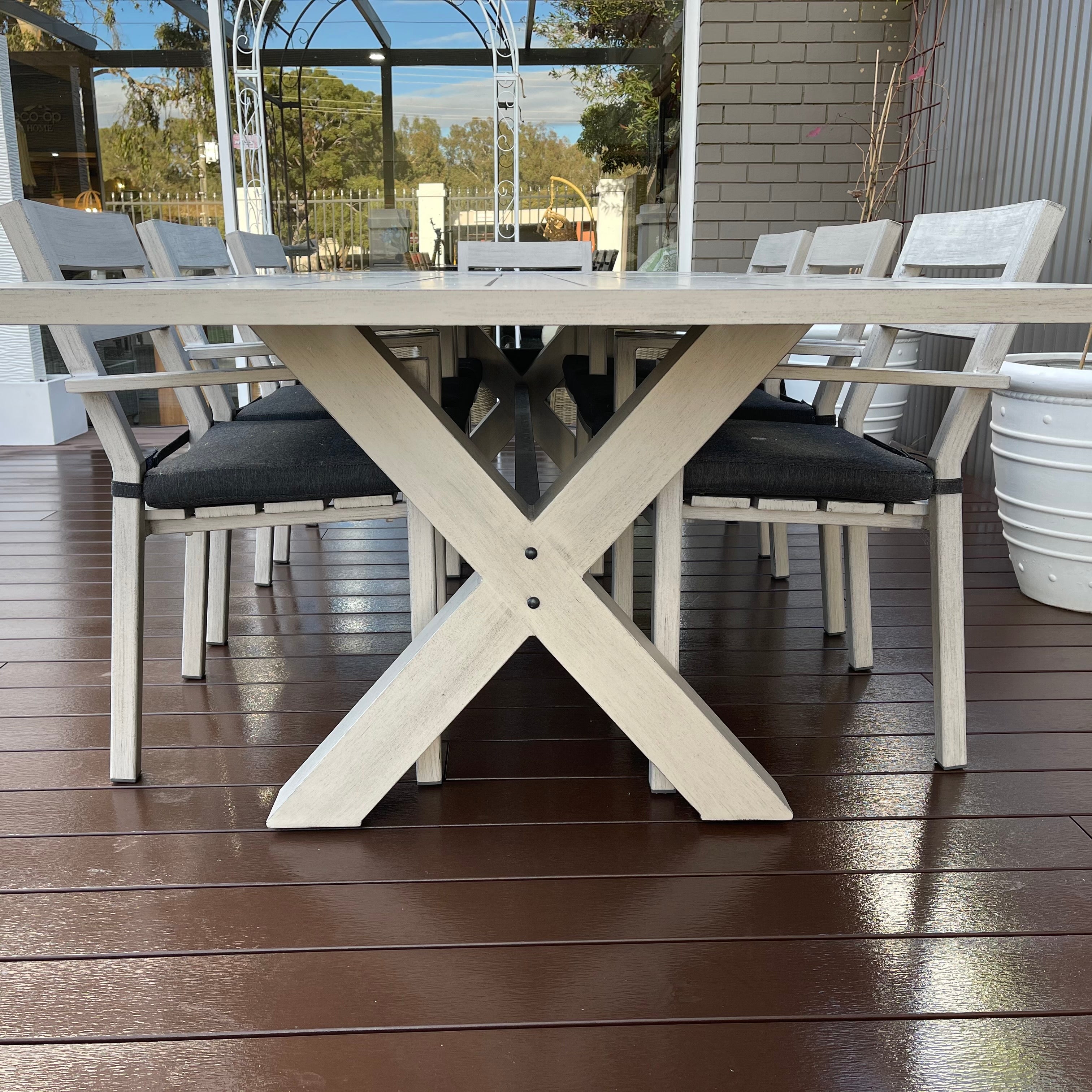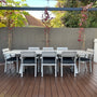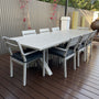 Introducing the Inverloch 2.1m Table – your gateway to embracing coastal-inspired outdoor dining in effortless style. Immerse yourself in a world of relaxation as you gather around this meticulously designed setting that demands minimal upkeep. Crafted with precision, this suite boasts a powder-coated aluminium construction, ensuring its resilience against the harshest outdoor elements while radiating the organic charm of aged teak timber.