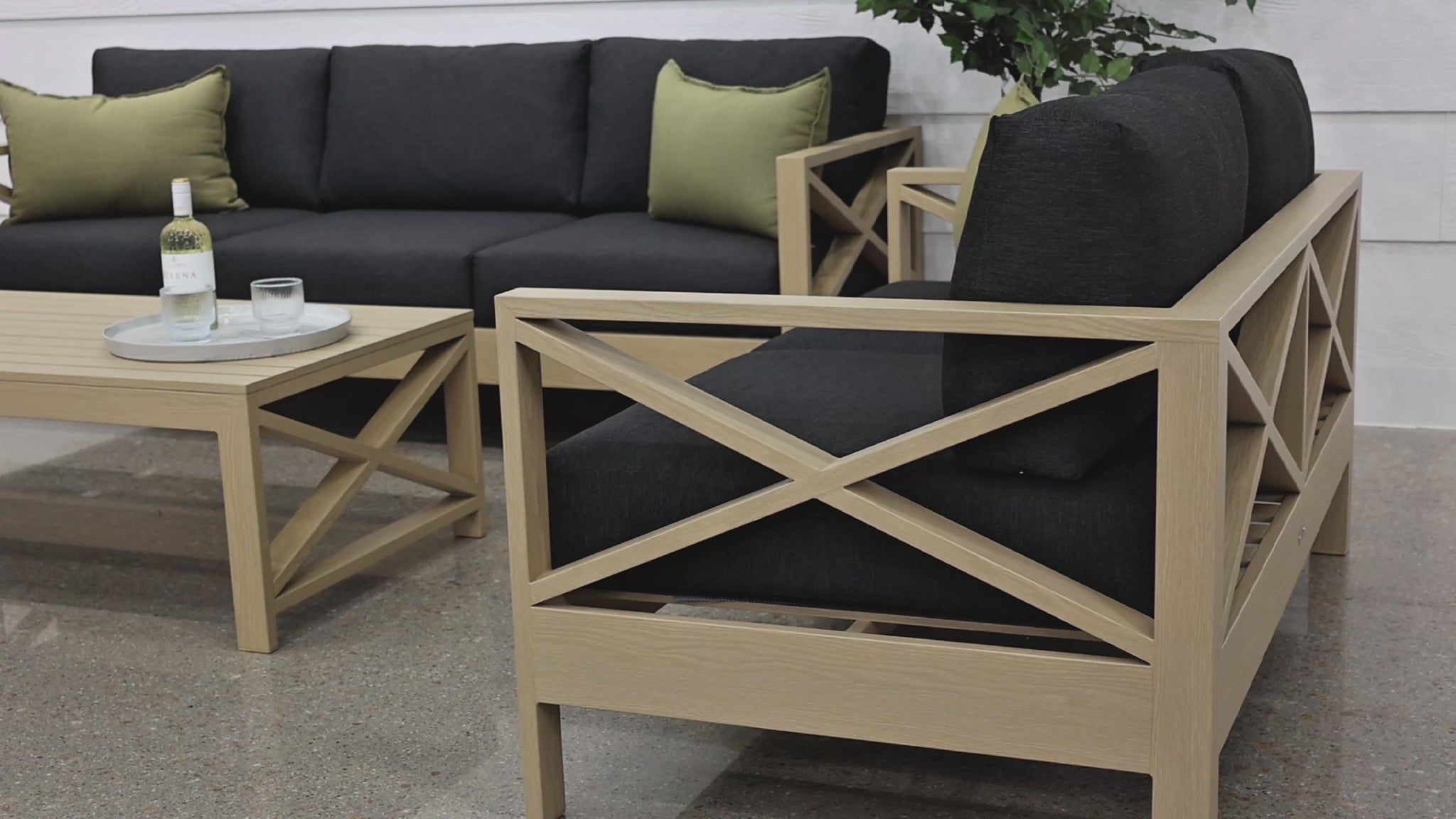 Relax in effortless outdoor style with the Kingscliff Collection. Designed with a wood-look finish paired with a durable aluminium frame, this collection offers the warmth of timber with the low-maintenance benefits of aluminium.