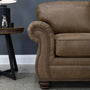Dramatically enhance your living space with the rustic charm of weathered leather. The Laura faux leather two-seater envelops you in comfort with its beautifully soft feel and provides lasting durability. Embrace the blend of a supportive yet firm seat, a plush backrest and bold jumbo window-pane stitching. Infused with classic features like rolled arms and turned feet, it effortlessly introduces a dash of timeless tradition whilst still offering that worn farmhouse feel.