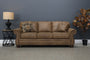 Bring a warm, rustic feel into your home with the Laura Collection, upholstered in tan leather air. Soft to the touch yet built for durability, it balances a supportive seat with a plush, inviting backrest. Jumbo window-pane stitching adds depth and character, while rolled arms and turned feet nod to timeless design.