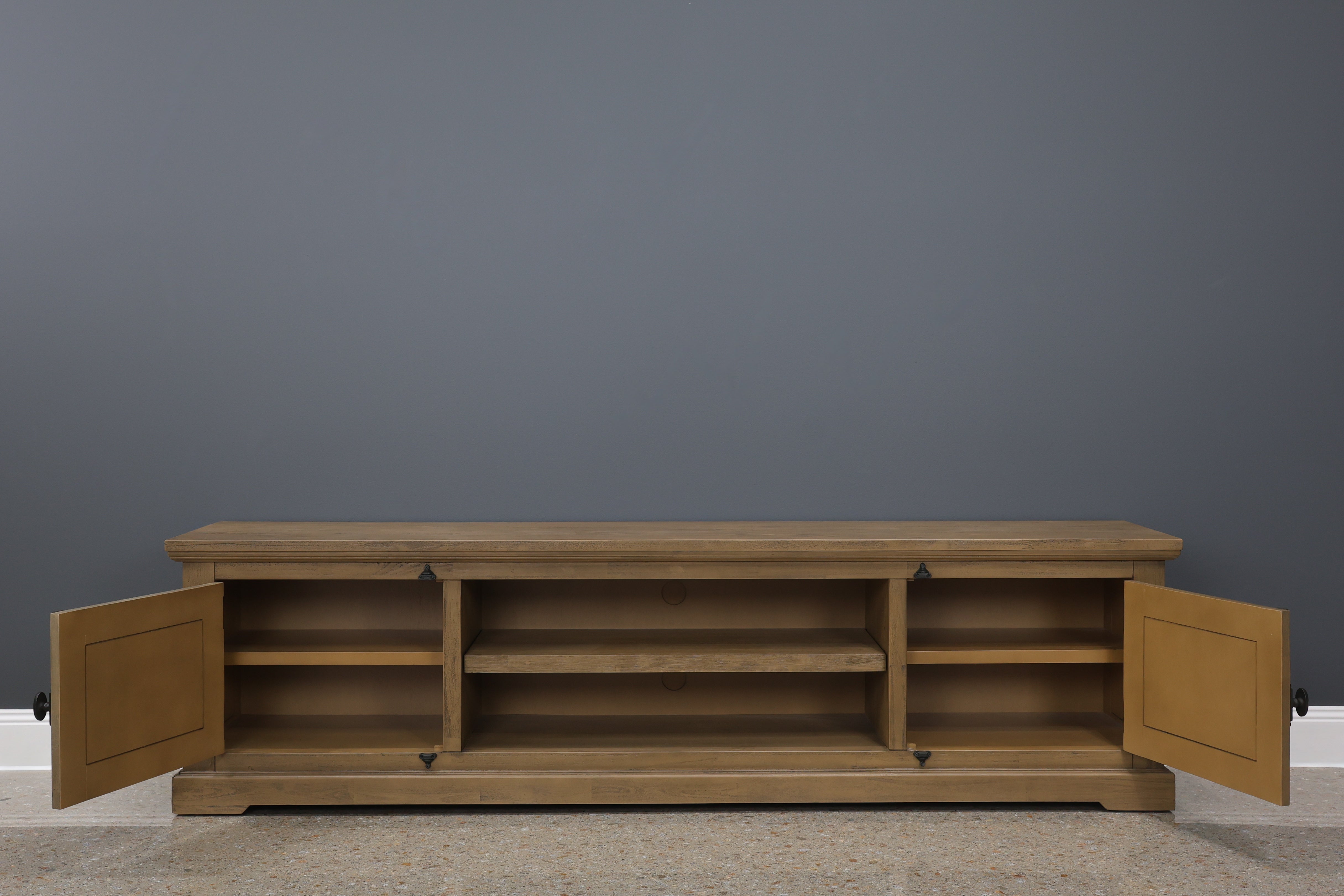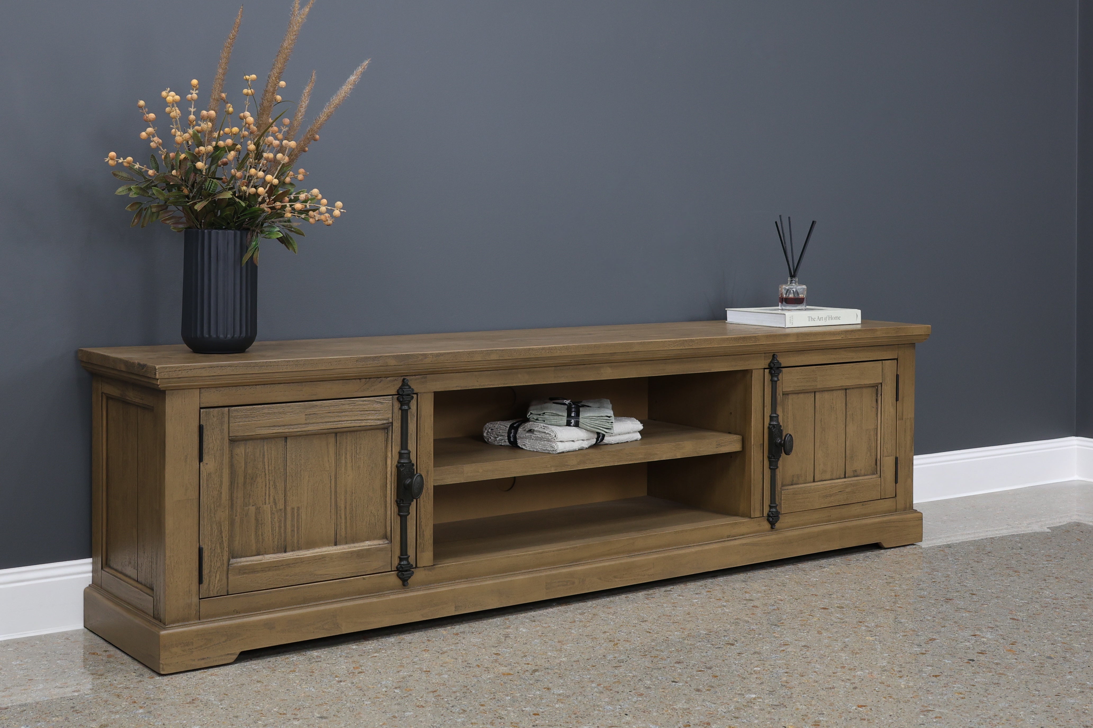 Presenting the Macedon TV Unit with 2 Doors and 2 Niches in a generous, large size an impressive addition to our exceptional furniture collection. Expertly crafted from solid Acacia timber and adorned with a tasteful painted finish, this TV unit showcases meticulous craftsmanship and enduring beauty.