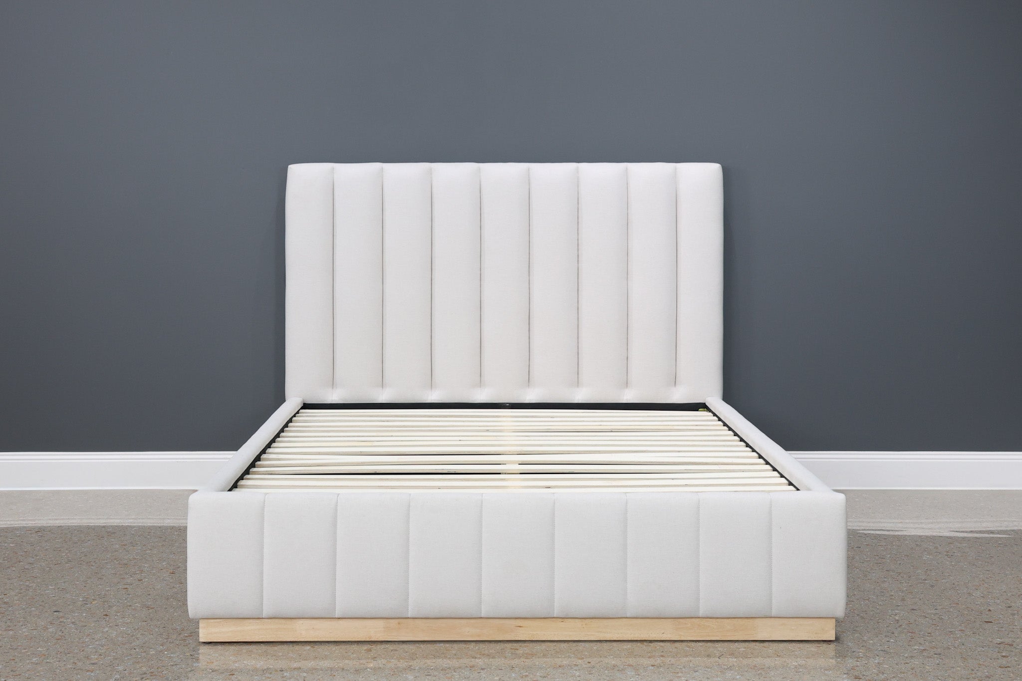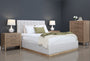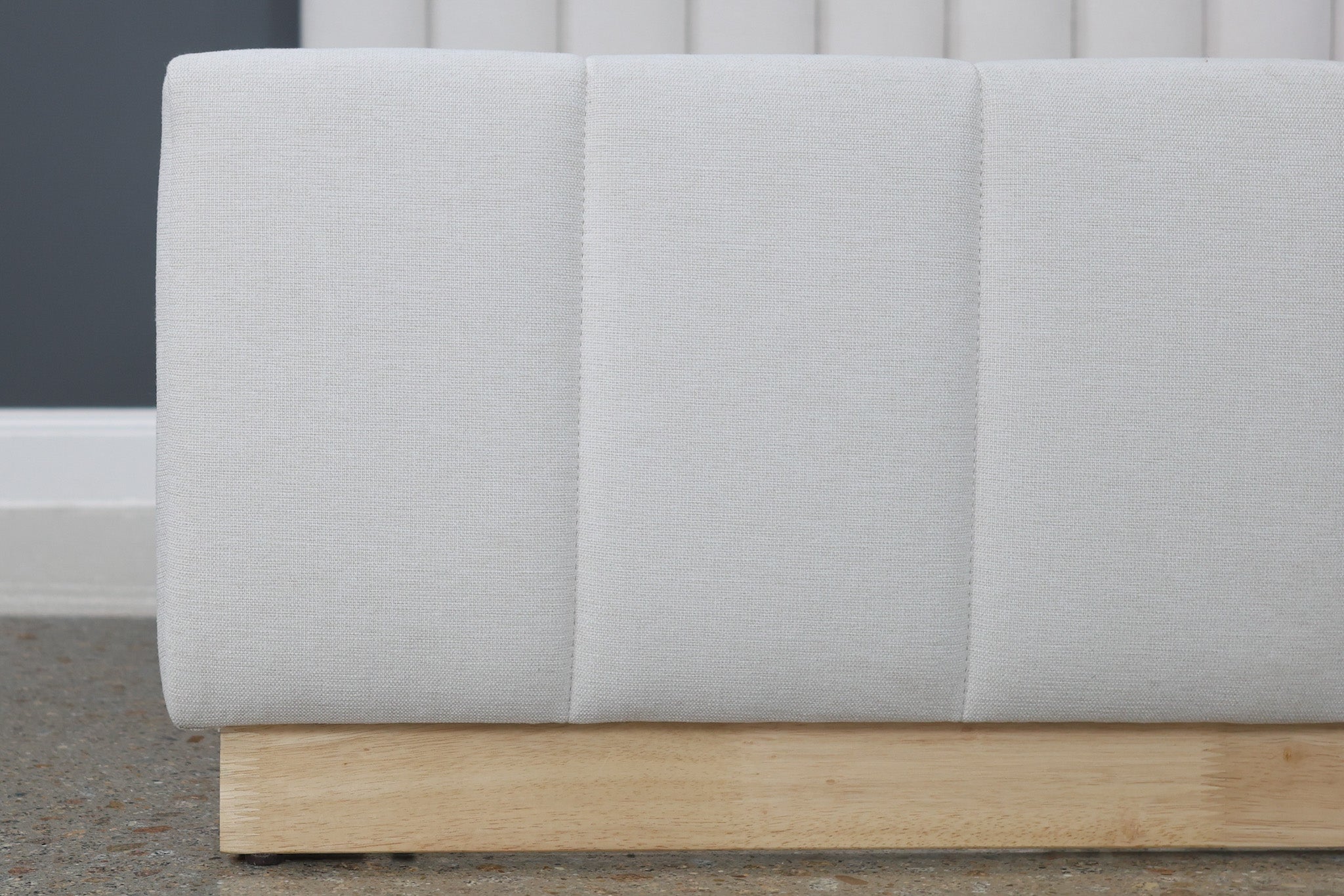 The Melbourne Upholstered Bed in Natural combines contemporary elegance with comfort, making it a perfect centrepiece for modern bedrooms. Its sleek, minimalist design features a tall, vertically channeled headboard that adds texture and visual interest. Upholstered in a soft, neutral fabric, the bed exudes a warm and inviting aesthetic that complements a wide range of interior styles.