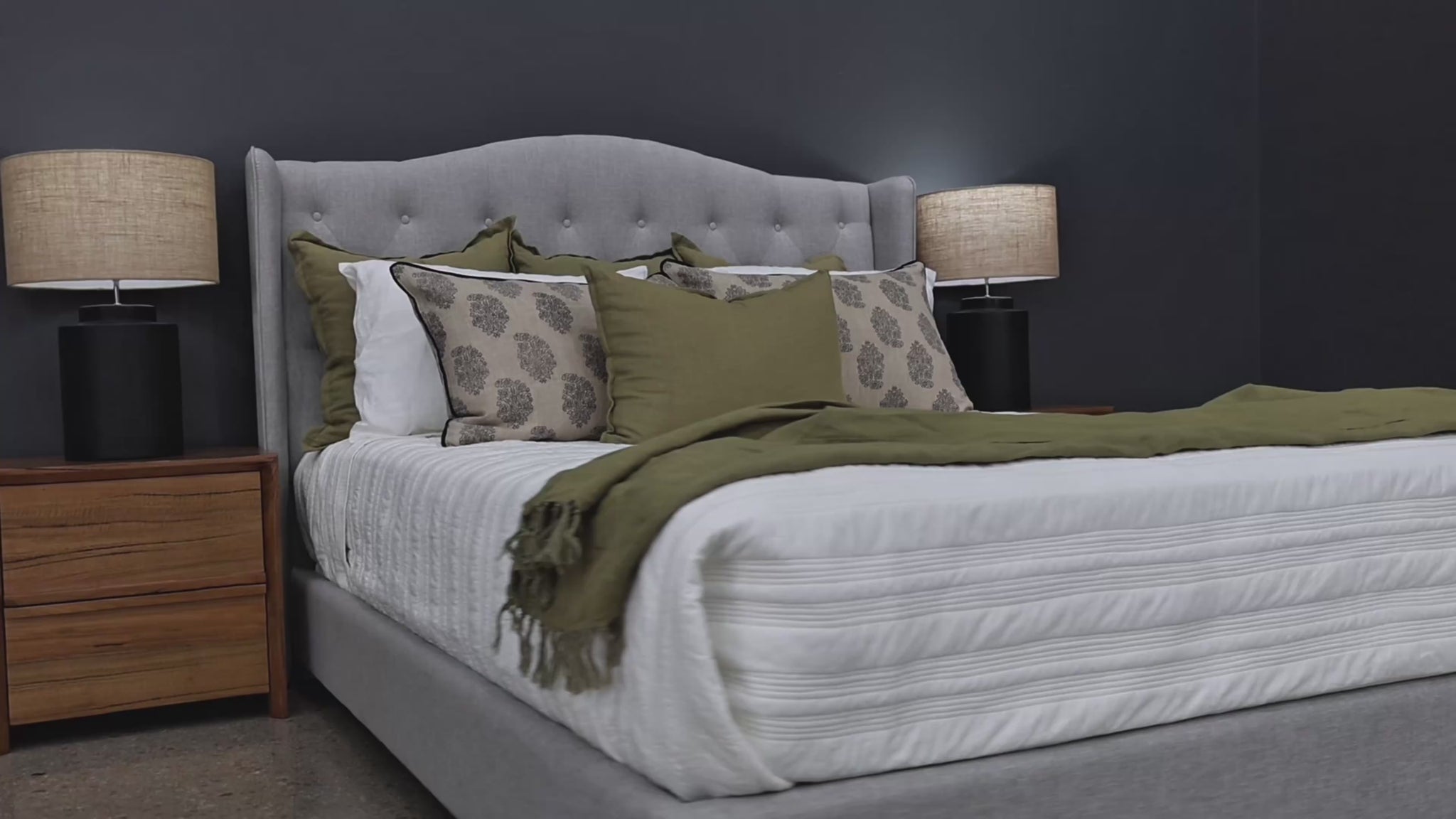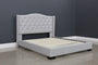 Introducing the Memphis Soft Grey Upholstered Bed Frame, showcasing a unique winged headboard design that effortlessly blends sophistication and practicality. The tufted headboard exudes timeless elegance, while solid timber slats and an extra centre rail ensure optimal support and stability. Elevate your sleep space with the Memphis bed frame, embracing comfort, style, and convenience in a single elegant package.