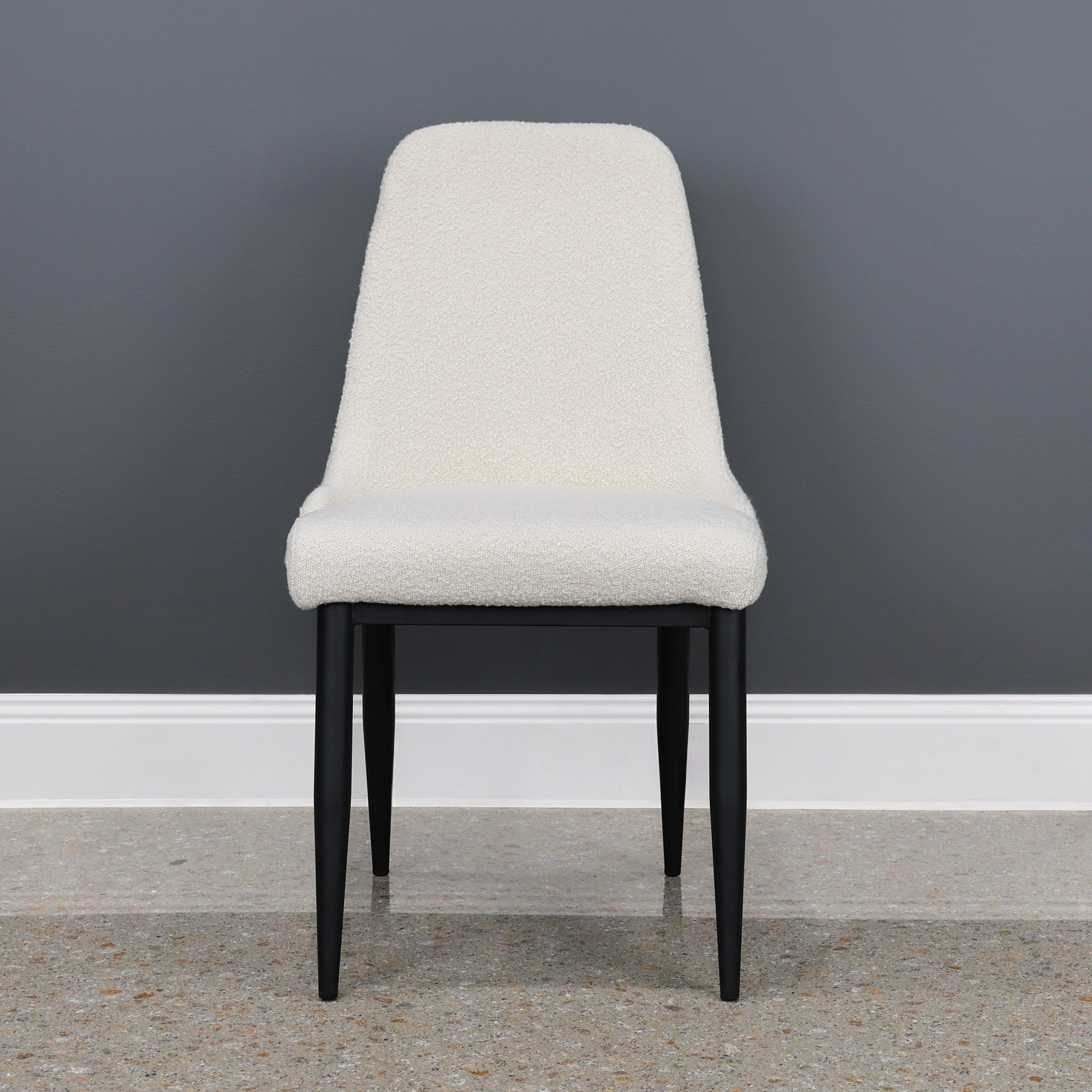 The Mid Century Dining Chair in Boucle White combines an iconic design with high-quality Boucle fabric, sleek metal legs, comfortable seating, and versatility, making it an ideal choice for those seeking a sophisticated and adaptable dining chair for their space.