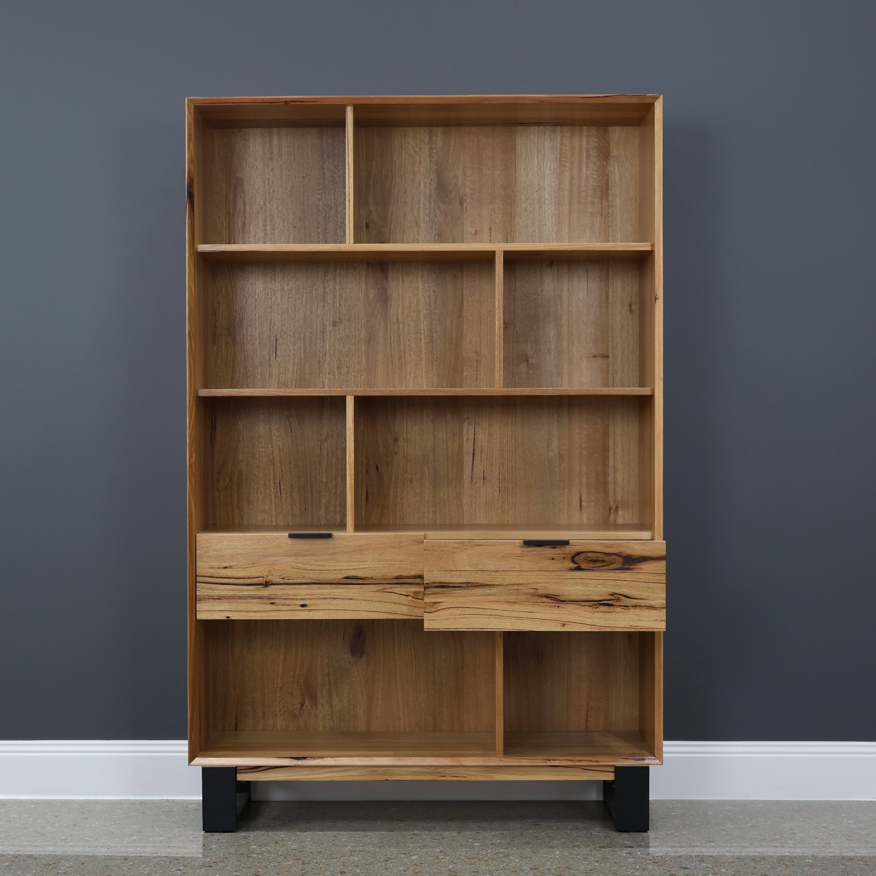 Made using Tasmanian Messmate Timber, finished with resin for a smooth look and feel yet still being able to see the natural features throughout the timber. With solid Messmate timber draws, door fronts and black timber legs the Milan range will be the focal point of your room.