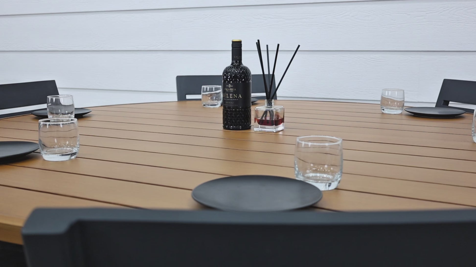 Mildura Round Dining Table - Charcoal / Brushed Teak