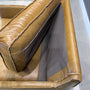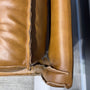 The Mossman Armchair is a sophisticated piece that mirrors the modern elegance of the Mossman Sofa and Loveseat. Upholstered in the same rich tan leather, it offers a cohesive look when paired with the sofa, or stands out as a statement piece on its own.