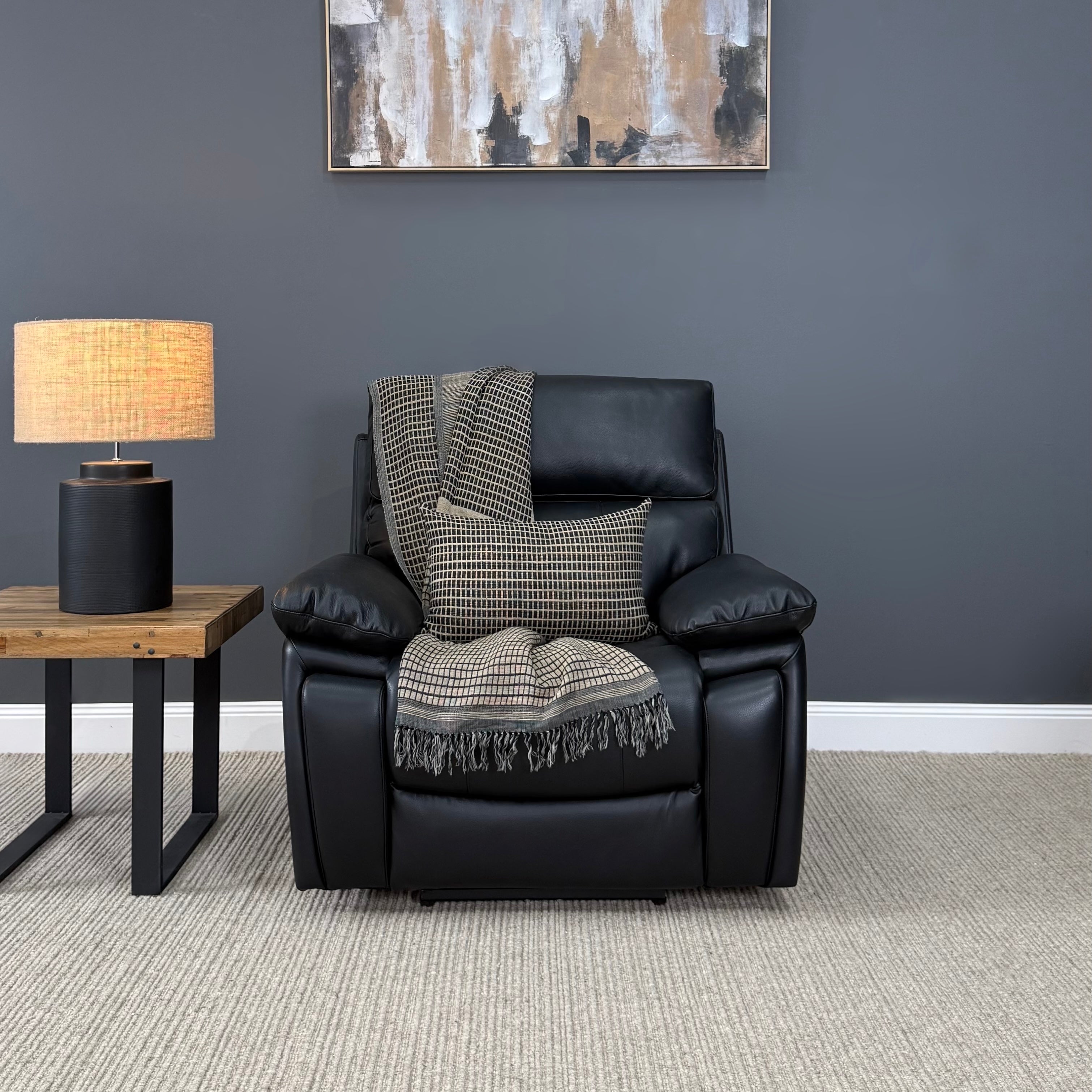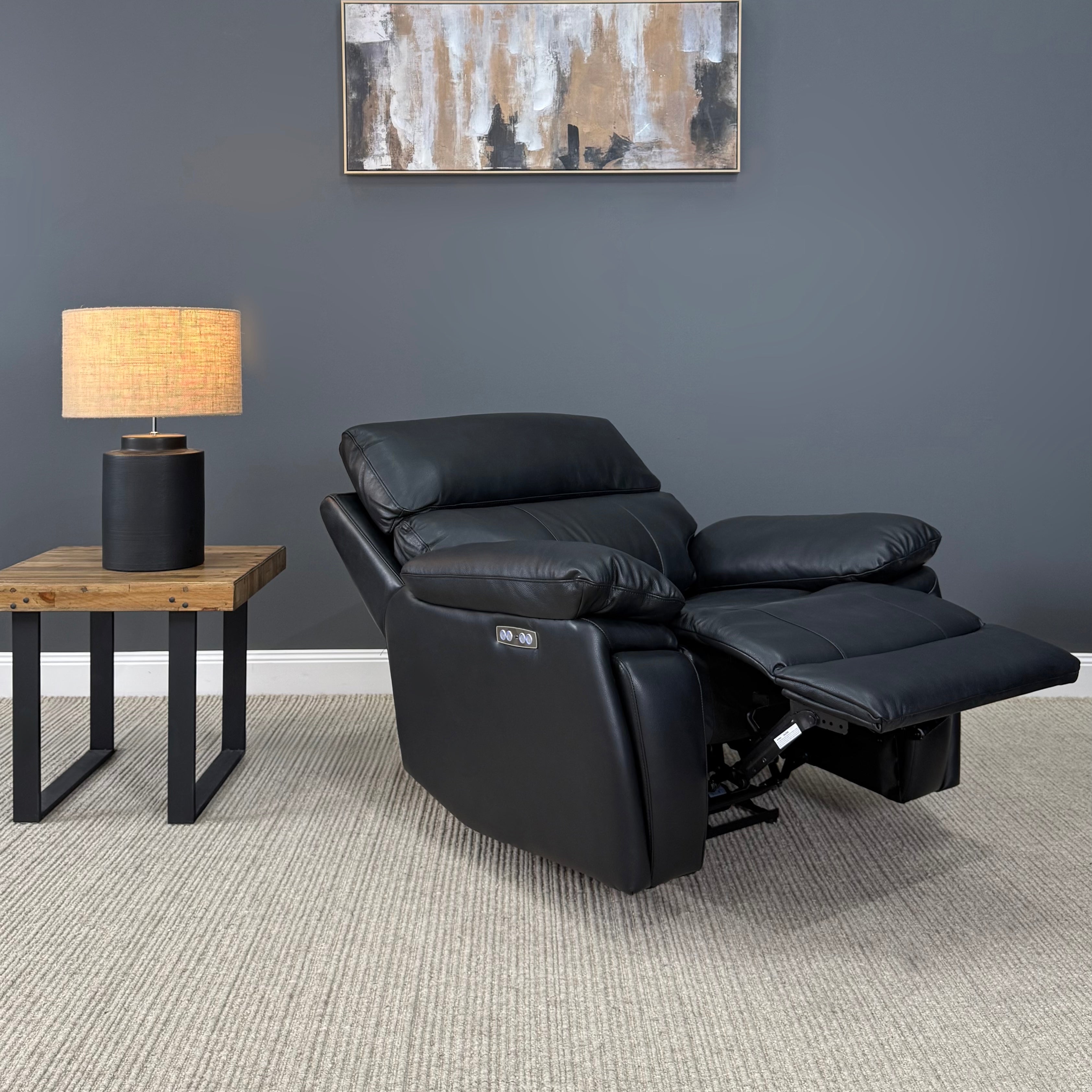The Parkes 1 Seater Electric Recliner is a perfect blend of modern style, advanced functionality, and luxurious comfort. Upholstered in premium black leather for a sophisticated look, this recliner offers exceptional relaxation with the convenience of dual motor electric reclining mechanisms. The sleek design and ergonomic features make this an ideal addition to any contemporary living space.