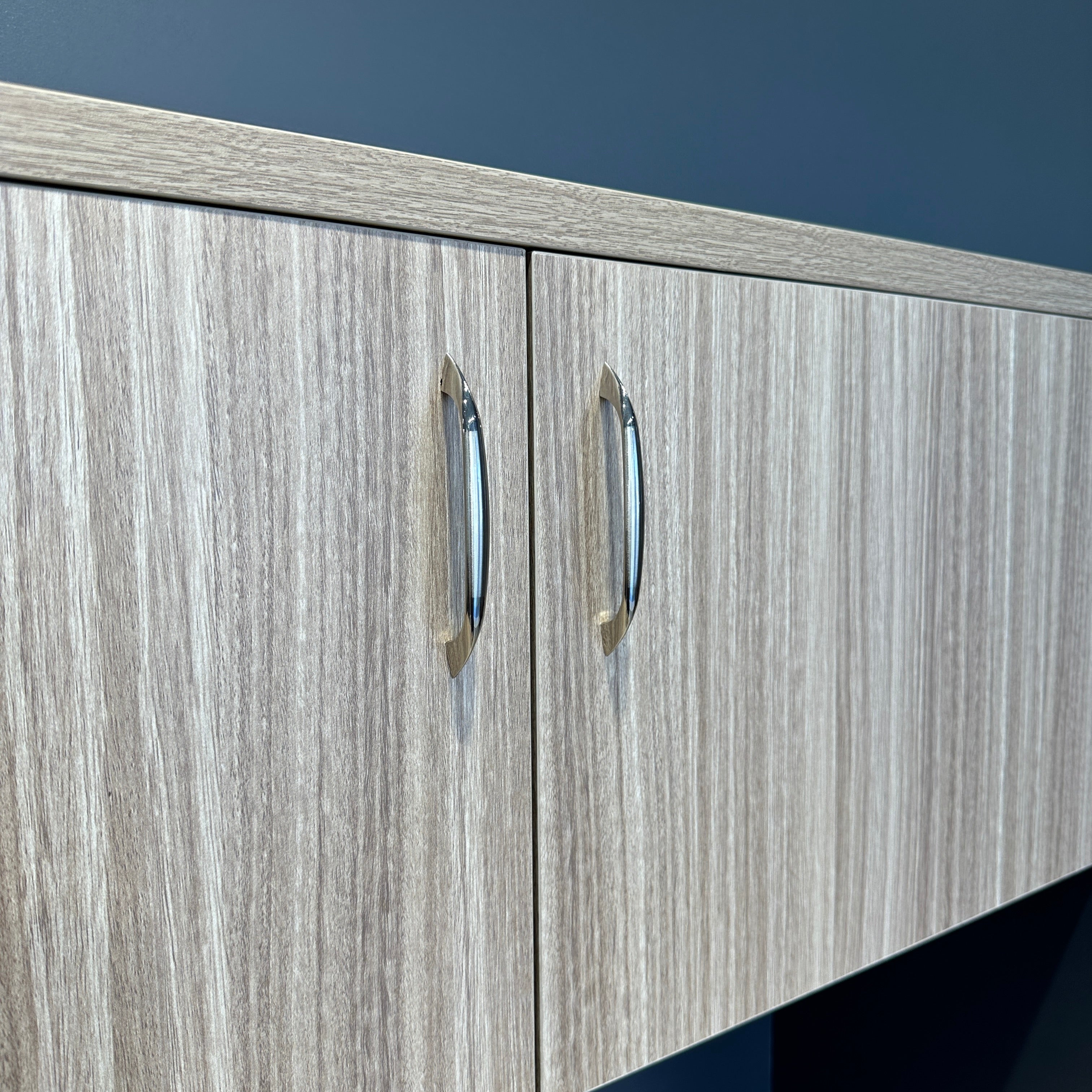 The Performance office desk and hutch in Natural Oak and Charcoal finish combines functionality with modern style, offering a spacious work surface and ample overhead storage. The natural oak tones bring warmth and a clean aesthetic, while the charcoal accents add a contemporary touch, making it suitable for both home and professional office spaces. The integrated hutch features two cabinets for concealed storage, providing a clutter-free workspace while keeping essentials organised and within reach.