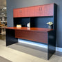 The Performance office desk and hutch is a functional and stylish workspace solution, featuring a spacious desk surface and ample overhead storage with two cabinets. Designed with a sleek combination of dark and red gum tones, it blends practicality with modern aesthetics, making it perfect for home or professional offices. The integrated hutch provides organised storage for books, files, and décor while keeping essentials within reach.
