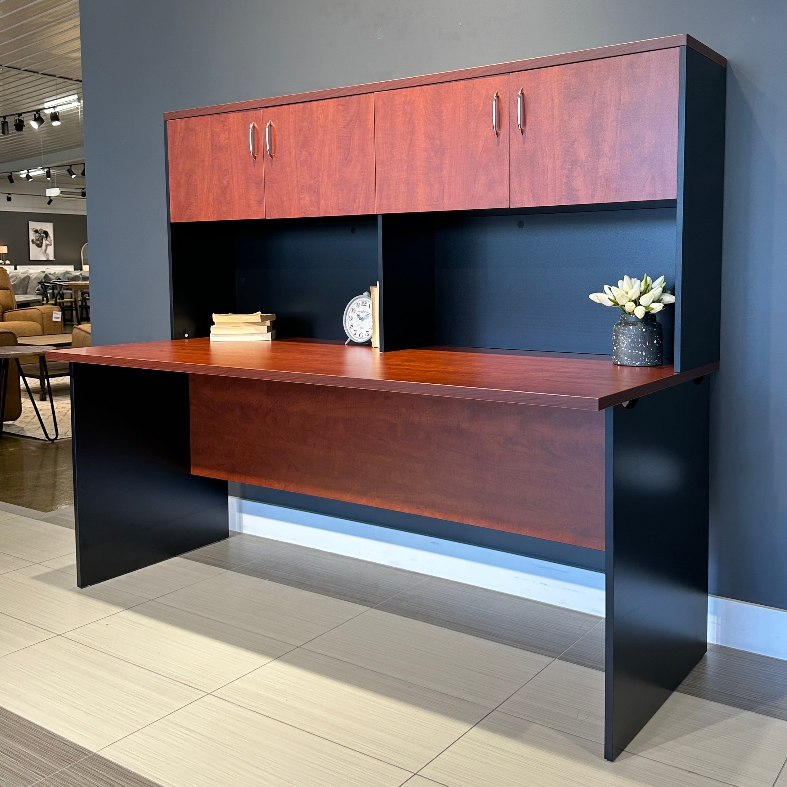 Performance 1800 Office Desk & Hutch - Red Gum/ Charcoal
