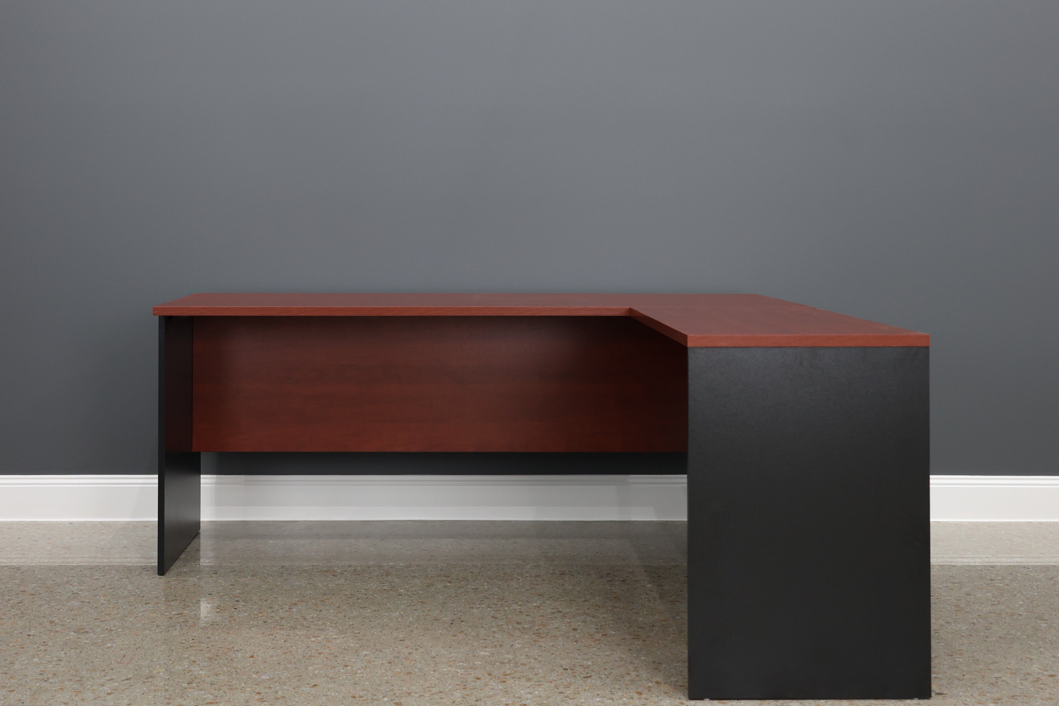 The Performance Open Return Right in Red Gum/Charcoal colour way offers functional workspace expansion with style. Crafted from robust melamine, it features a rich red gum coloured finish and a charcoal frame. Perfect for both commercial and home office environments. The return is designed to be attached to any of our performance desks.