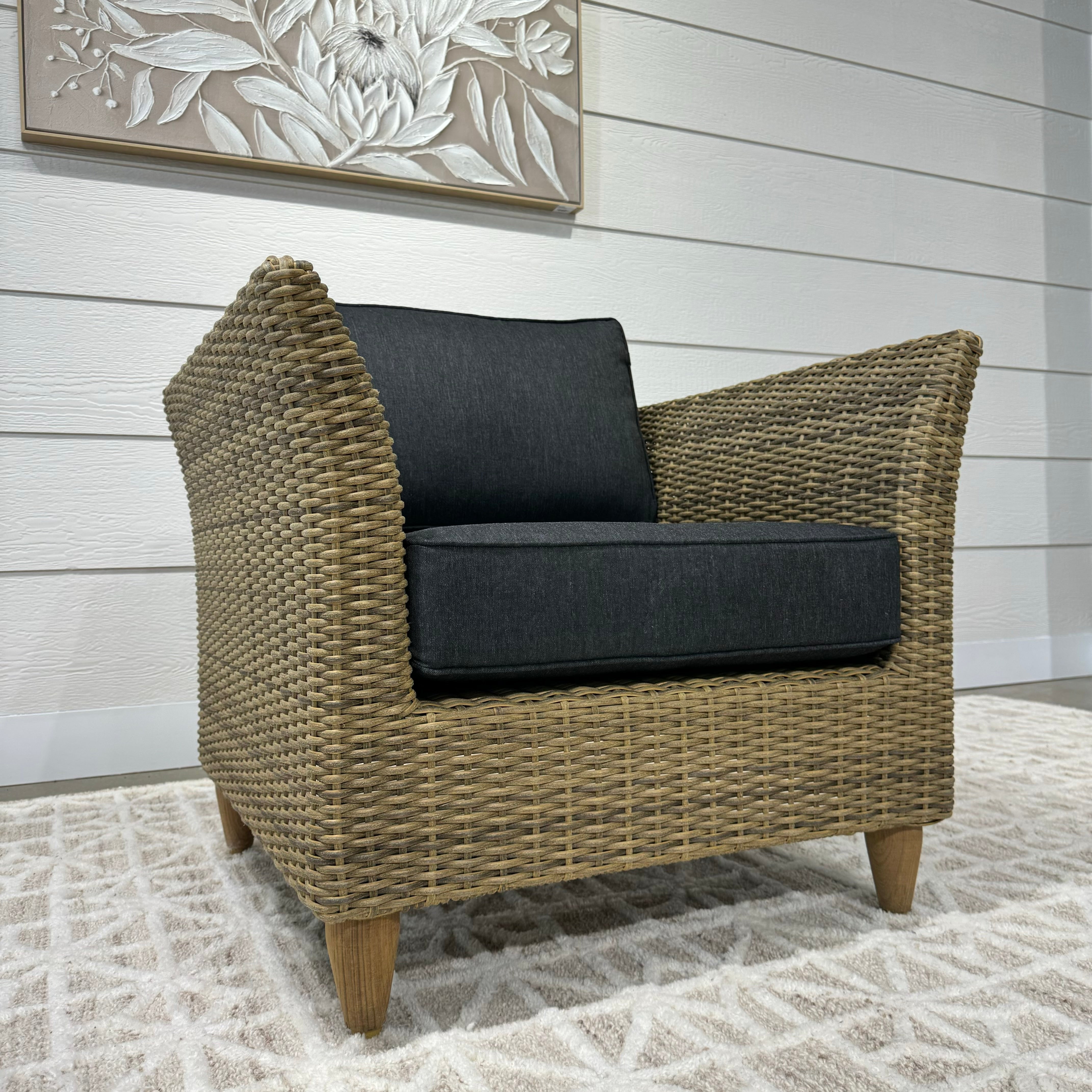 Transform your seating experience with the Portsea Armchair in Brushed Wheat / Denim Grey, where the perfect fusion of style, durability, and comfort awaits. Crafted for coastal and Hamptons-inspired environments, this armchair offers a singular seat of luxury and elegance.
