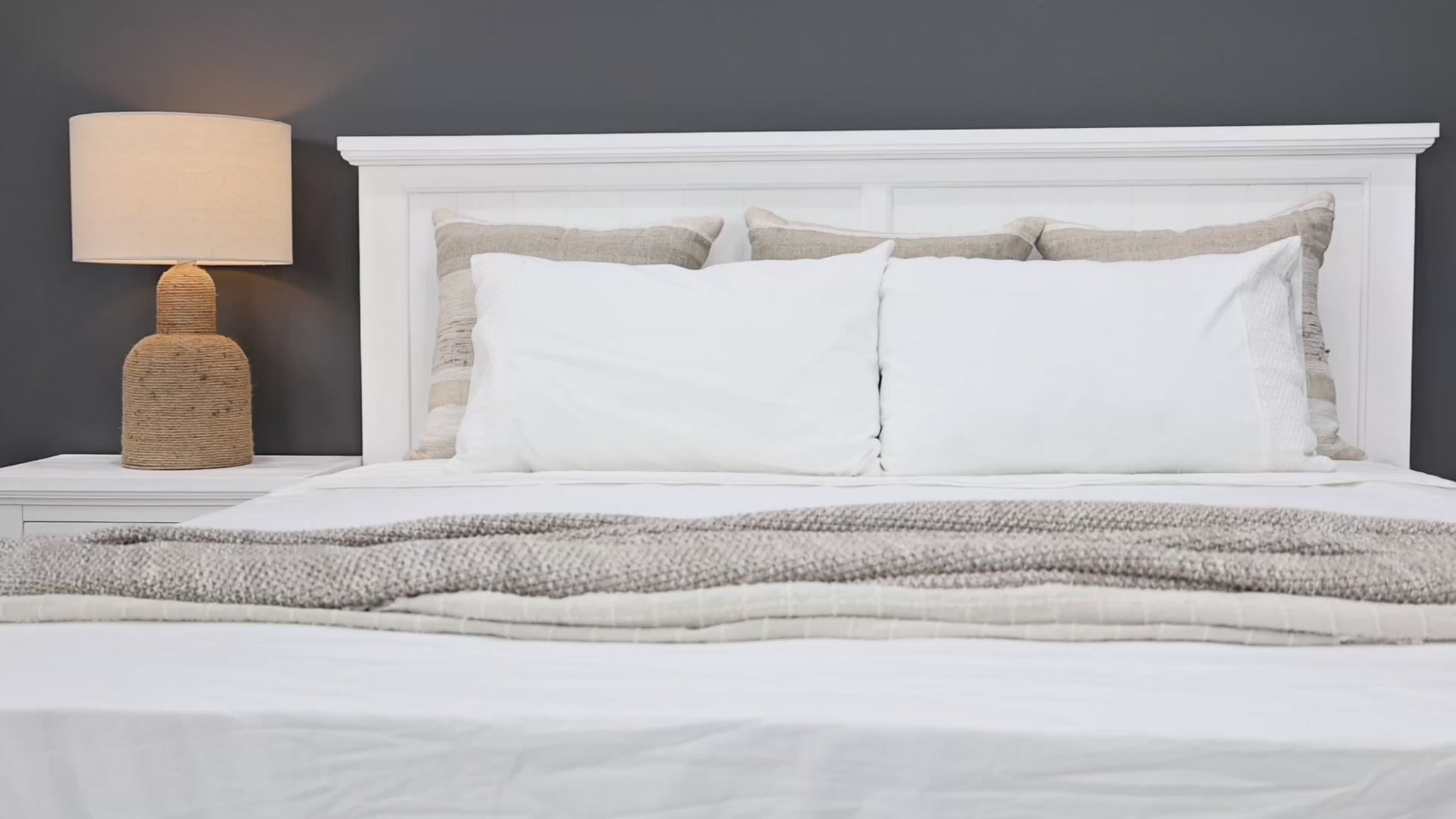 The Provedore All White Bed with Storage epitomises modern Provincial design, blending timeless elegance with practicality. Crafted from exquisite Acacia Timber and adorned with a brushed finish, this bed radiates sophistication and charm. Its clean lines and all-white appearance exude a sense of tranquility, making it the focal point of any bedroom.