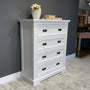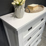 The Provedore White Tallboy exemplifies modern Provincial design, blending elegance with functionality seamlessly. Crafted from high-quality Acacia Timber and finished with a brushed texture, this piece exudes sophistication and charm. With its minimalist yet stylish appearance, it effortlessly complements any bedroom decor