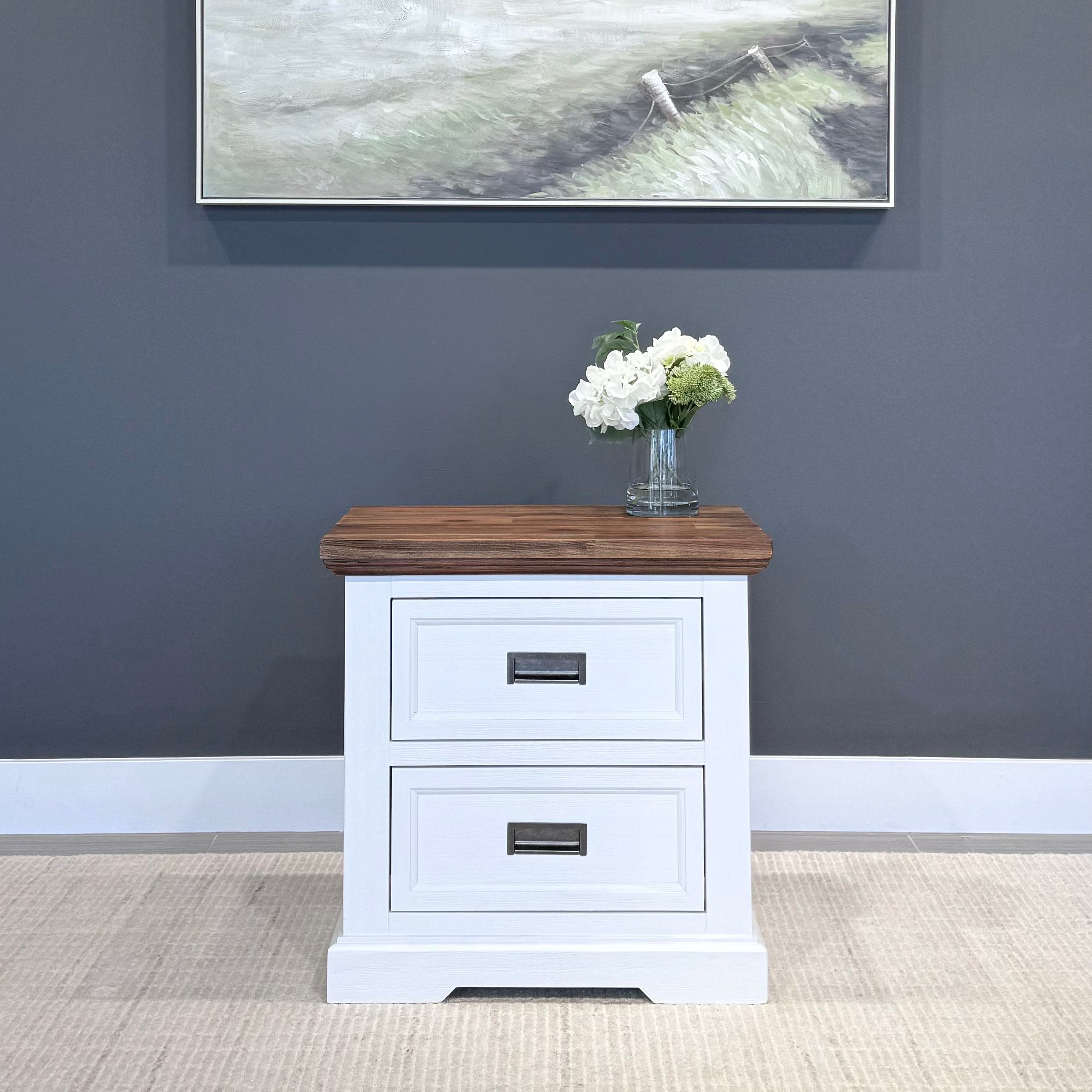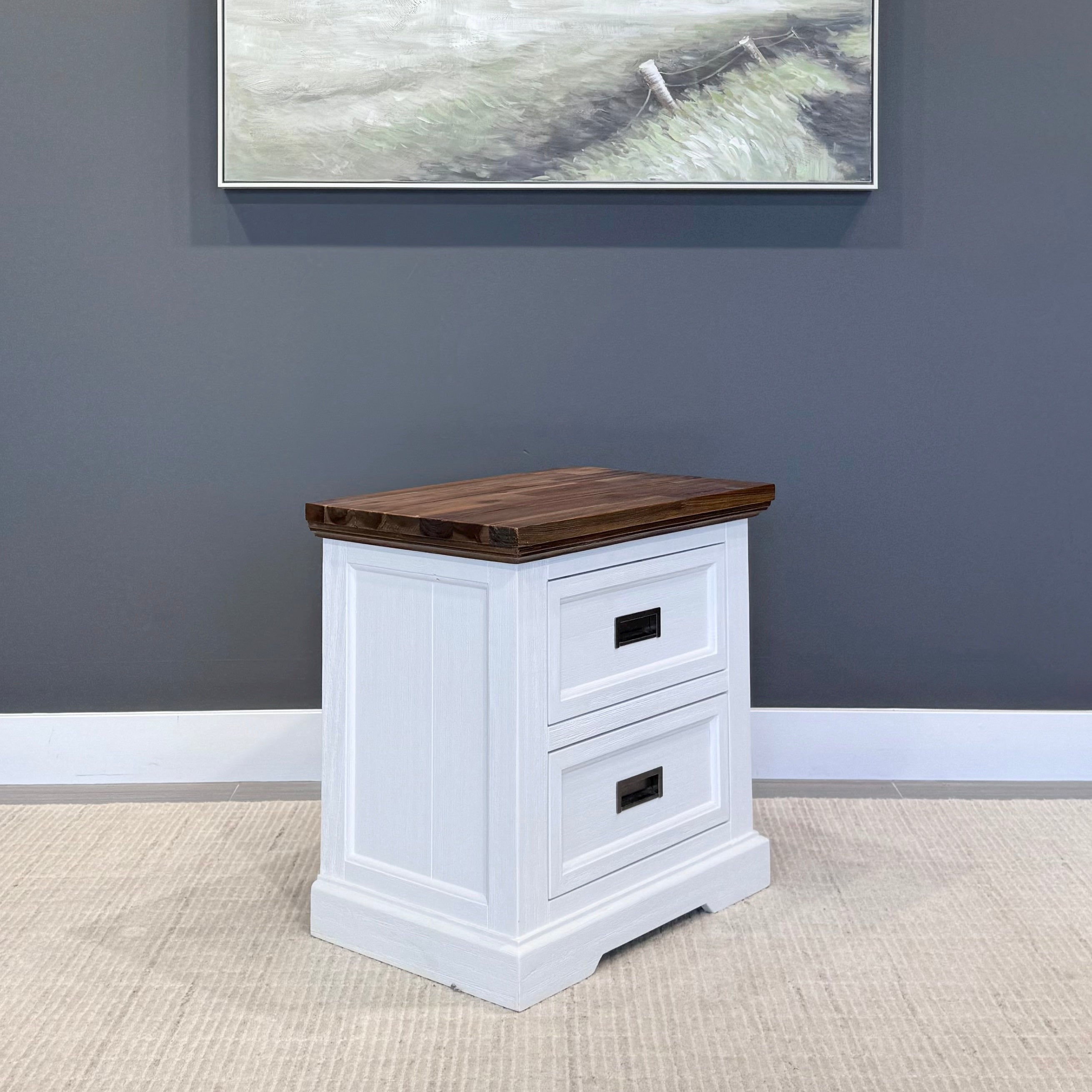 Experience the perfect combination of style and functionality with this beautiful addition to your bedroom. Contrasting timber tones brings a natural, relaxed, and welcoming look and feel to your bedroom. The Provedore Bedside Table not only enhances the aesthetics of your space but also caters to your storage needs with ease.