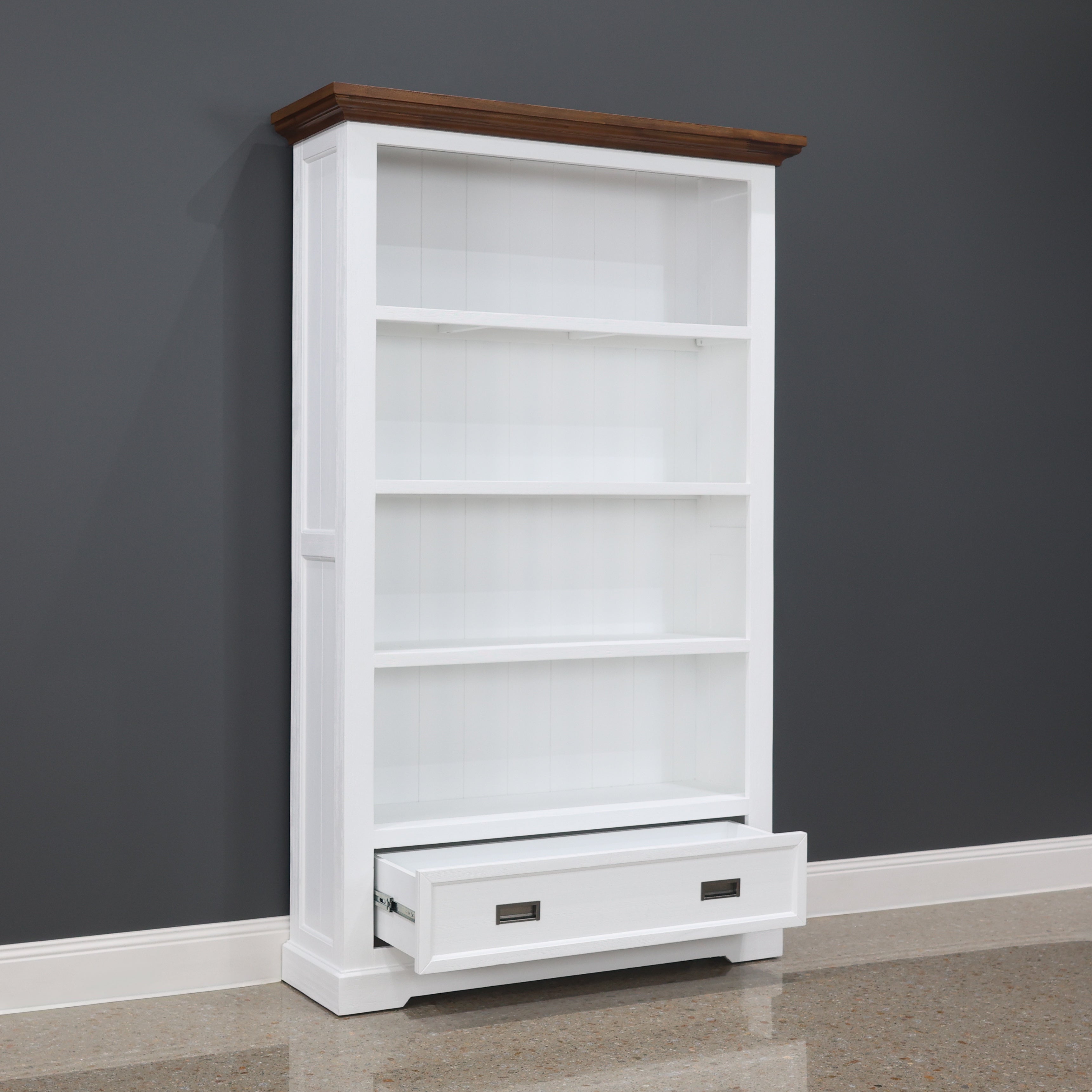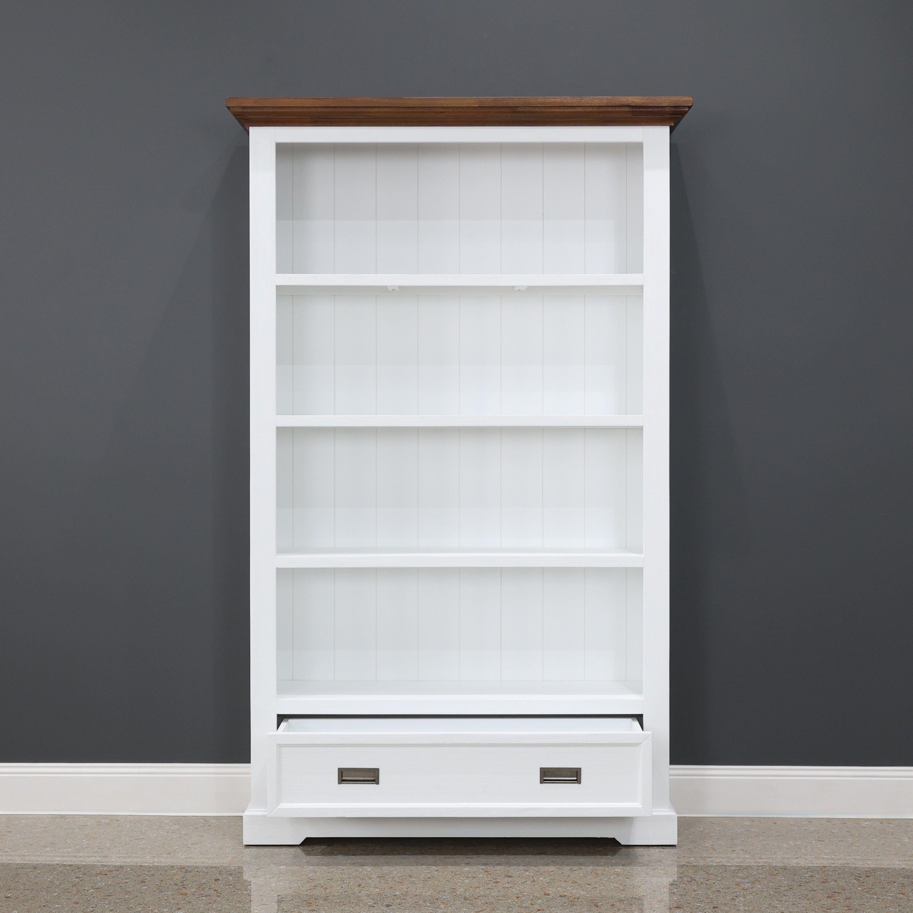 The Provedore furniture range represents the epitome of modern Provincial design in today's world. Crafted from Acacia Timber with a brushed finish, the Provedore Two-Tone Bookcase showcases the perfect blend of contemporary style and timeless elegance. With four shelves and one convenient drawer, this bookcase offers both functionality and sophistication for your living space. Upgrade your home with the ultimate modern-day bookcase from the Provedore range.