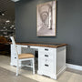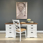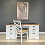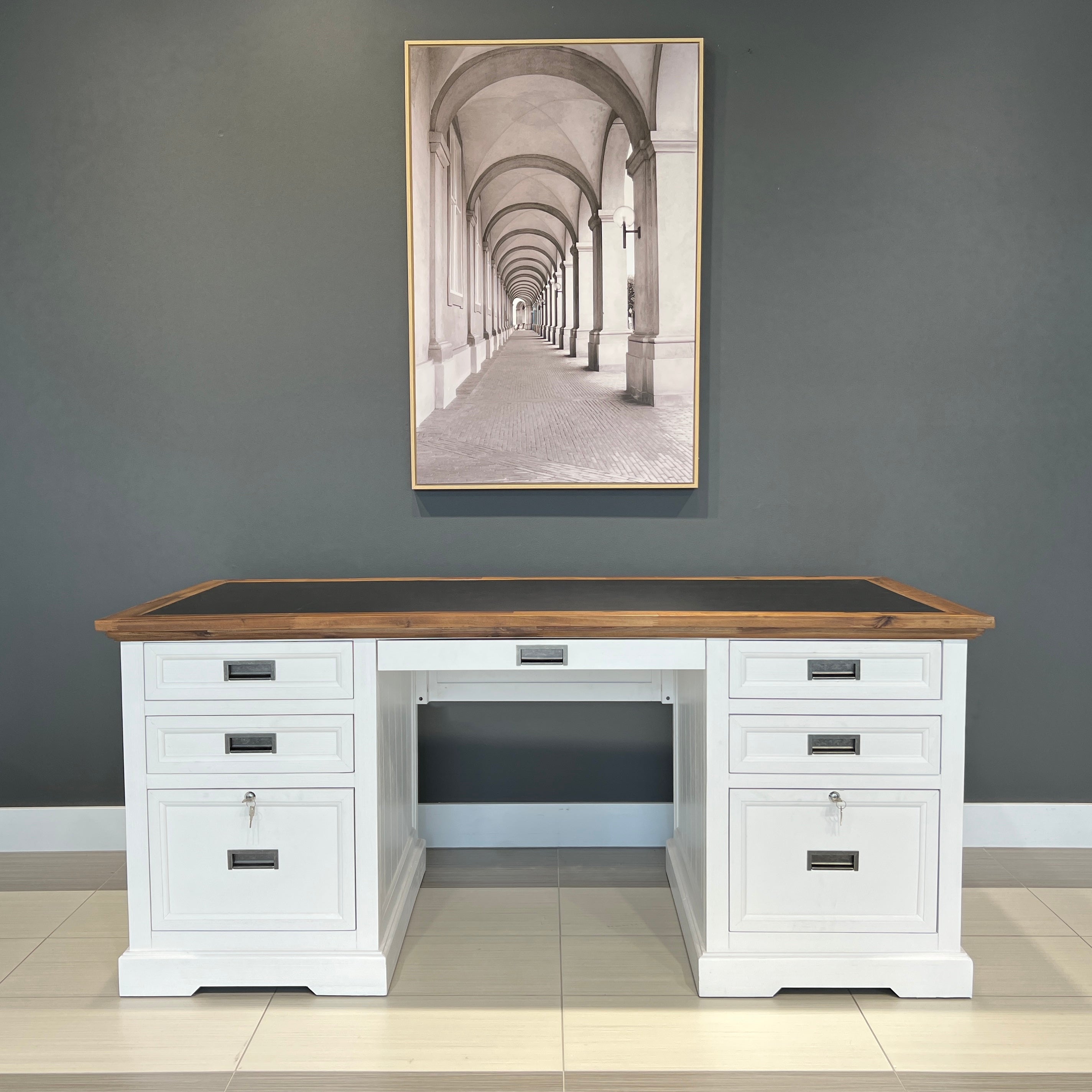 Introducing the Provedore Two-Tone Desk with Vinyl Top, a remarkable addition to your home office. This desk seamlessly combines style and functionality, featuring six drawers, with the added benefit of two lockable ones, providing ample storage to keep your workspace organised and secure. The drawers operate smoothly on extension runners, ensuring effortless access to your essentials.