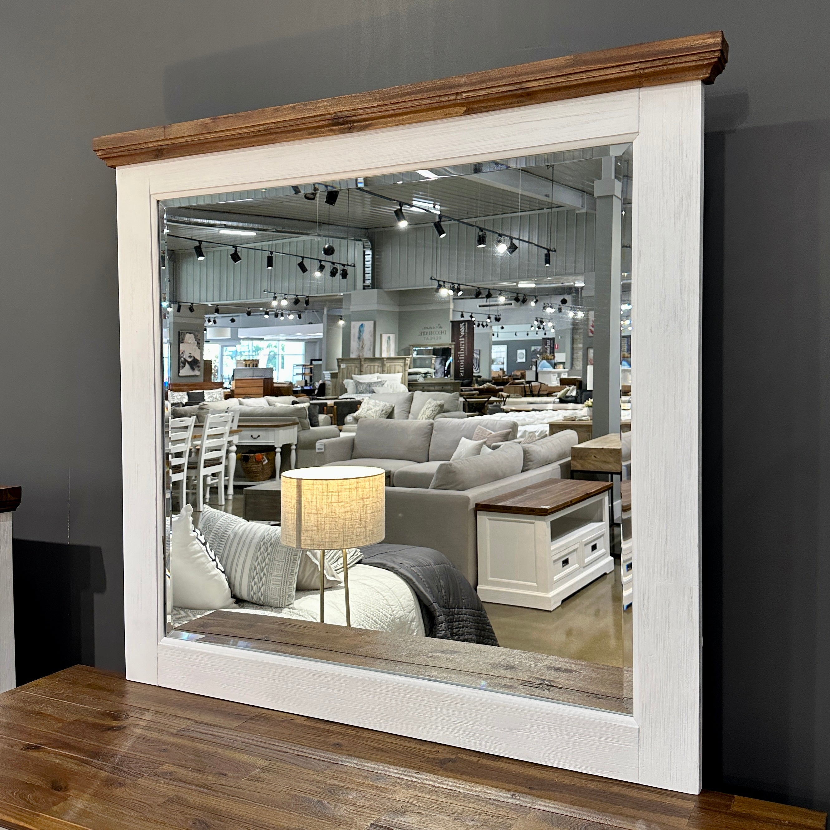 Enhance the elegance and functionality of your bedroom with the Provedore Two-Tone Dresser Mirror. This exquisite mirror is designed to pair seamlessly with the Provedore Two-Tone Dresser, creating a cohesive and stylish look in your bedroom. With its contrasting tones and timeless design, this mirror not only adds a touch of sophistication but also amplifies the visual space in your room.