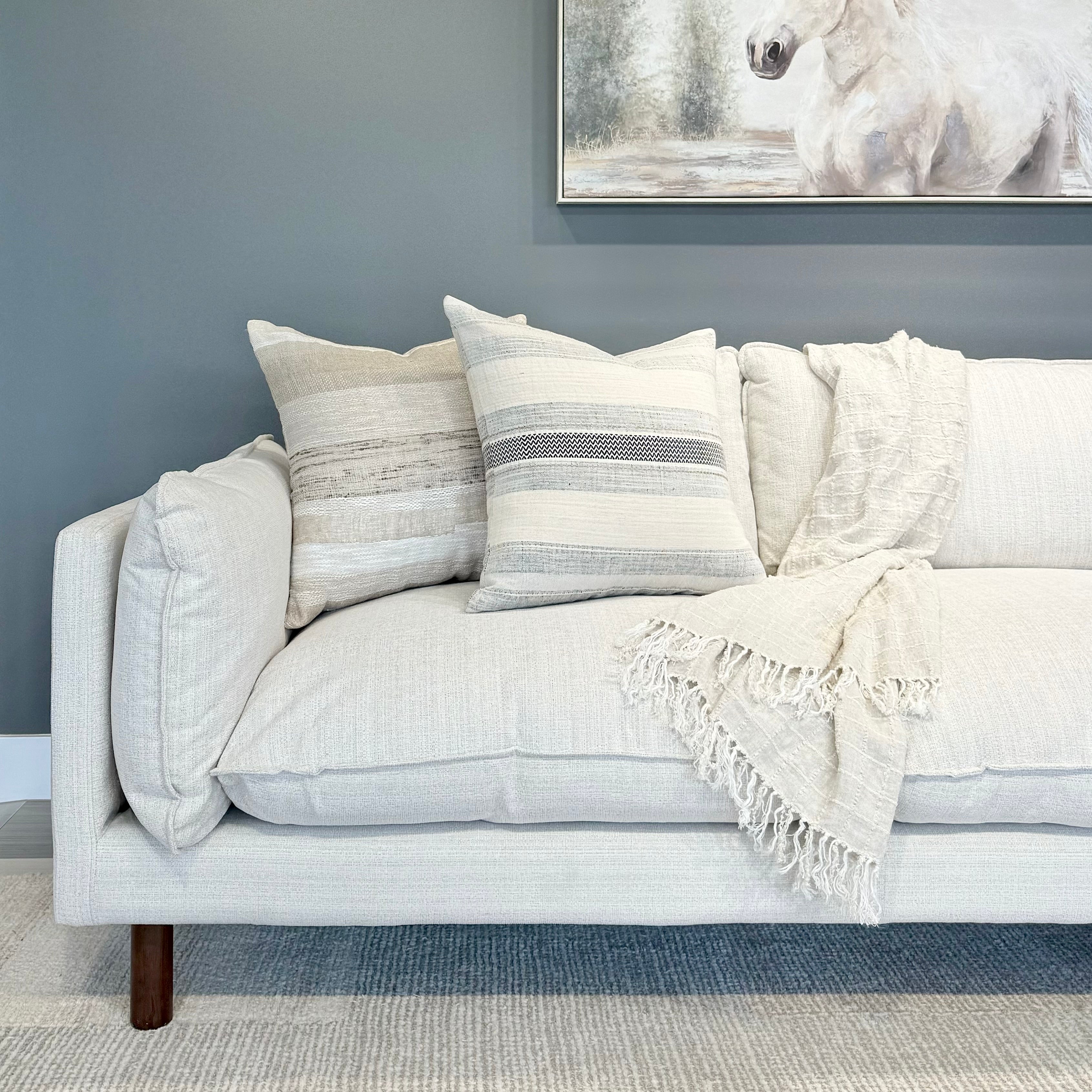 The exclusive Handwoven Provence Linen cushion has been skilfully and delicately created by skilled artisans using the finest natural textiles using ancient techniques that have been handed down through the generations. This piece is a work of art and something you can hand down. The natural threads of linen will soften over time. Each piece is individual and no two are alike. The subtle variations and irregularities are characteristic of this natural fabric, adding to its natural beauty, and should not be considered a flaw.