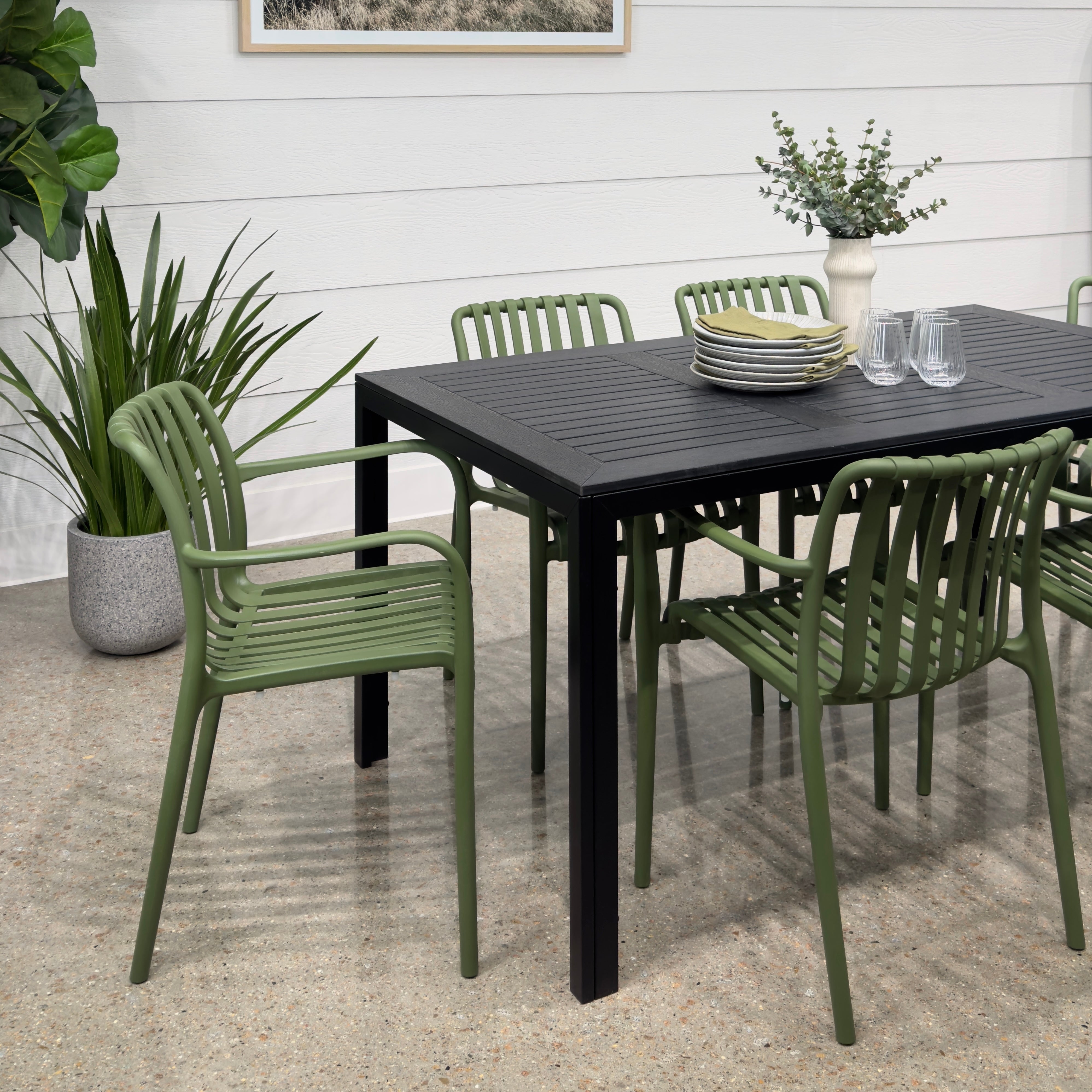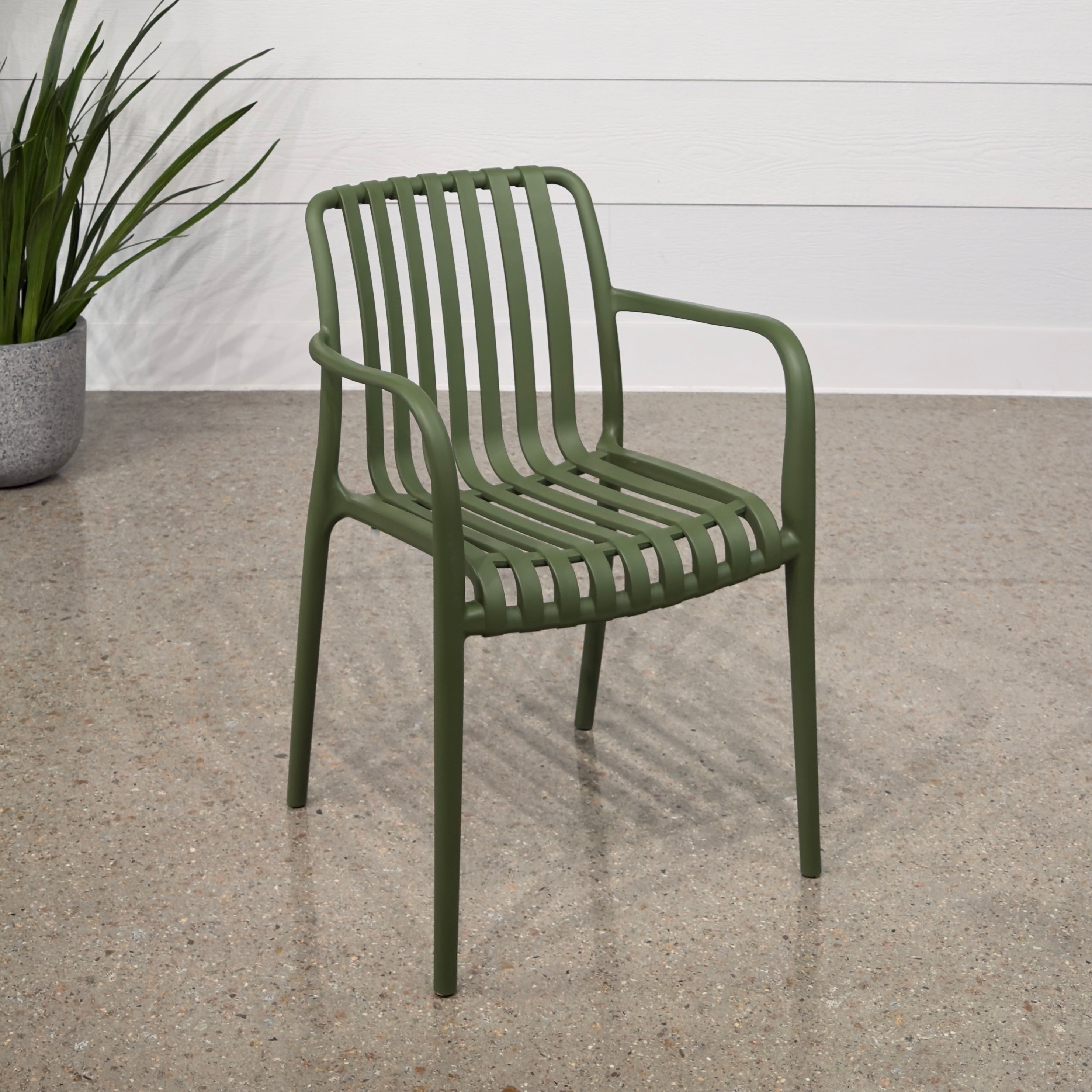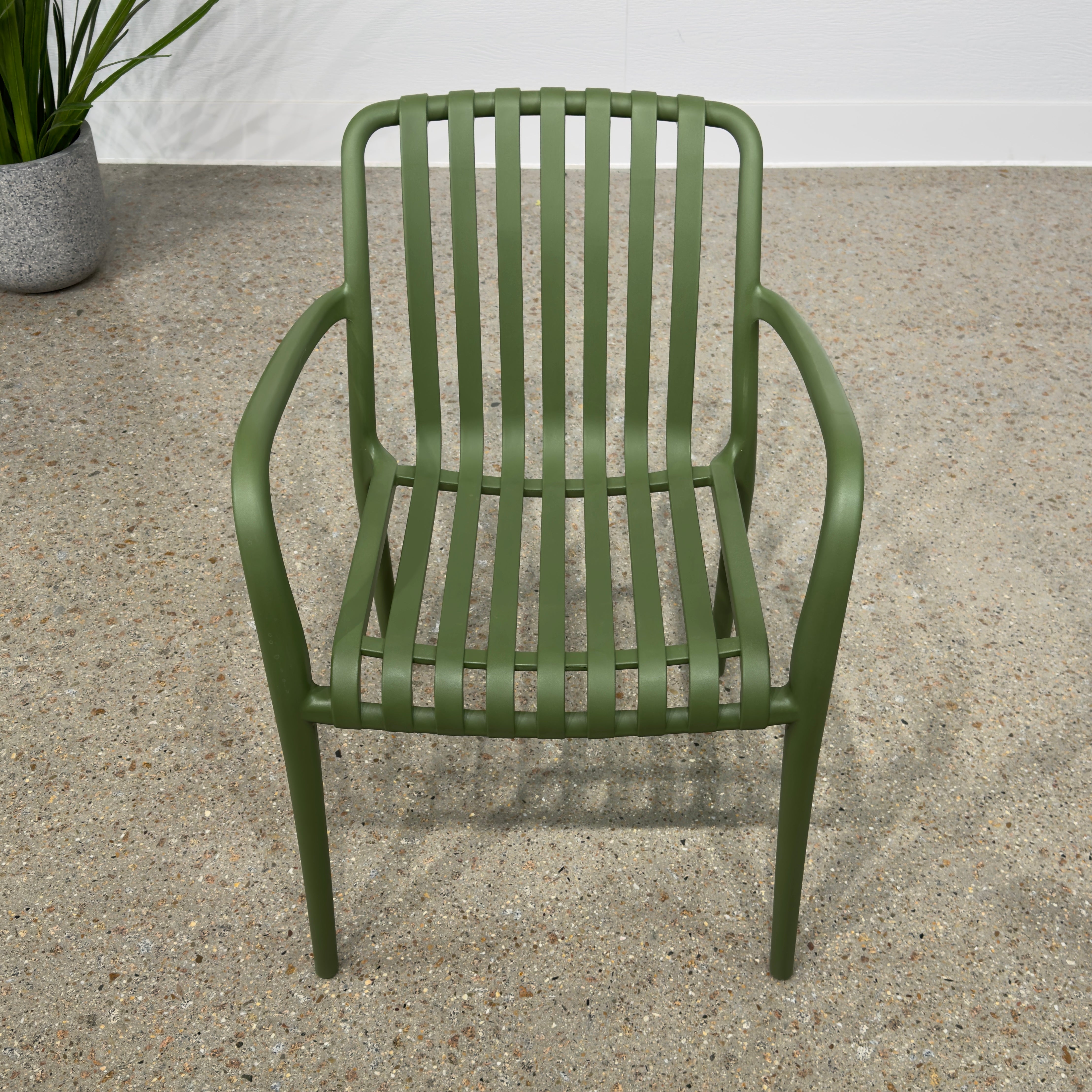 Elevate your outdoor space with the stylish and durable Roselle Dining Chair in Green. Perfect for alfresco dining or commercial use, this chair combines modern design with exceptional durability, featuring armrests, a slat-style vertical back, and a slatted seat for a stylish yet functional look. Made from outdoor-grade, UV-resistant polypropylene, the Roselle Dining Chair is designed to withstand the elements and maintain its fresh, clean look over time.
