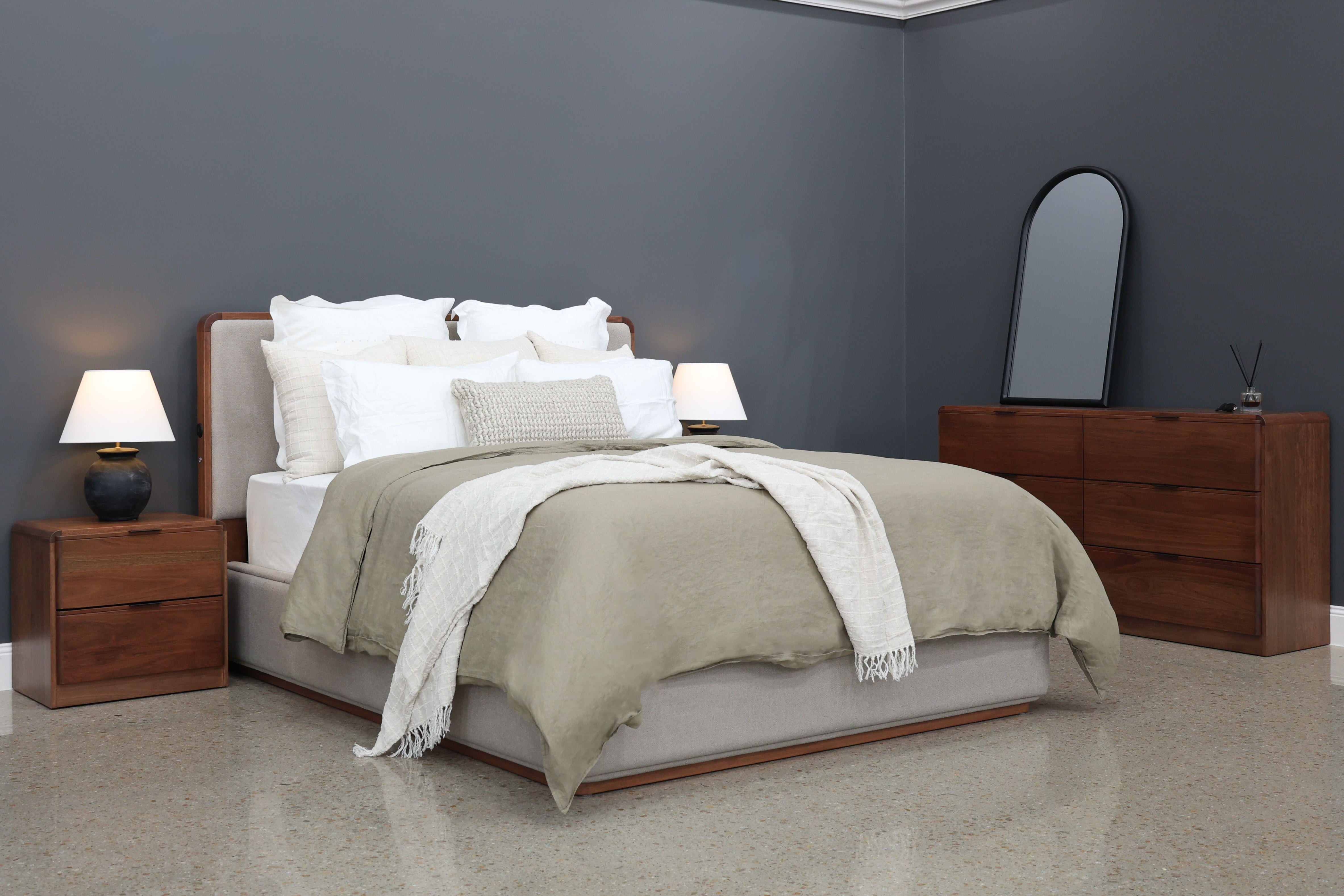 The Rostrevor collection brings together warm timber tones and modern simplicity to create a beautifully balanced environment. Crafted with a focus on natural character, each piece showcases rich wood grain details and smooth, rounded edges that softens bold pieces with a welcoming organic feel.