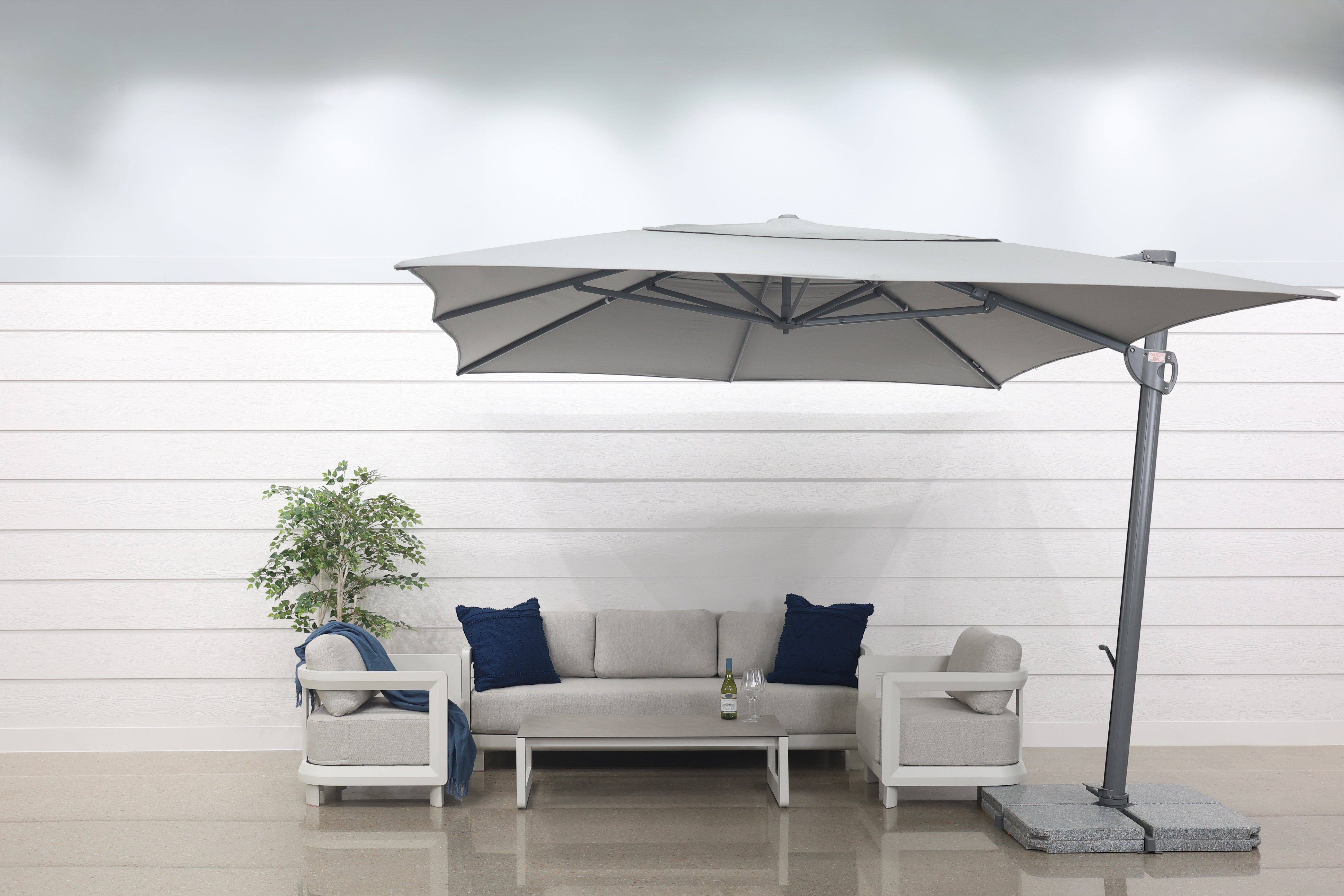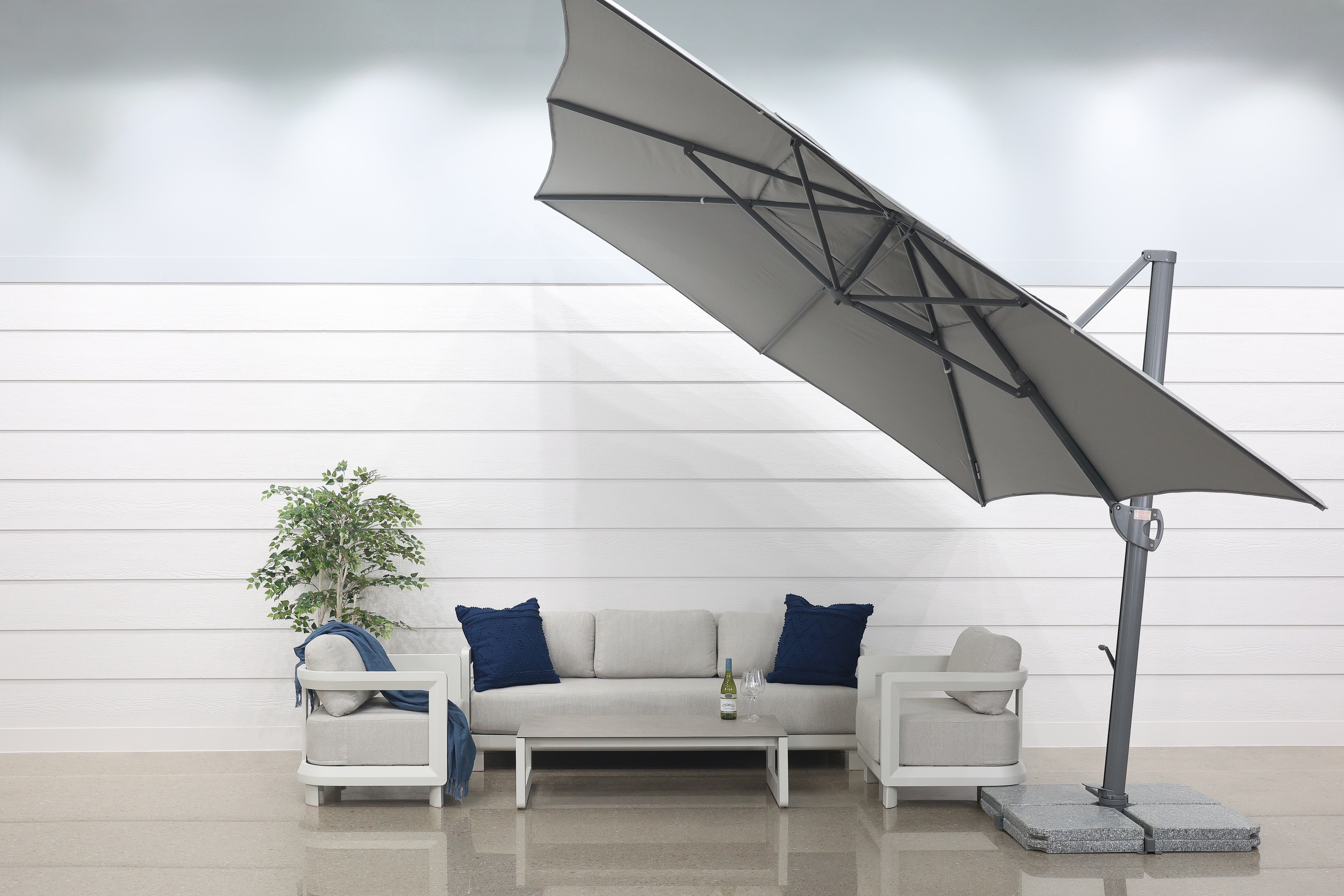 Savannah 400 x 300 Rectangle Cantilever Umbrella - Charcoal w/ 8x 27kg Granite Base Weights