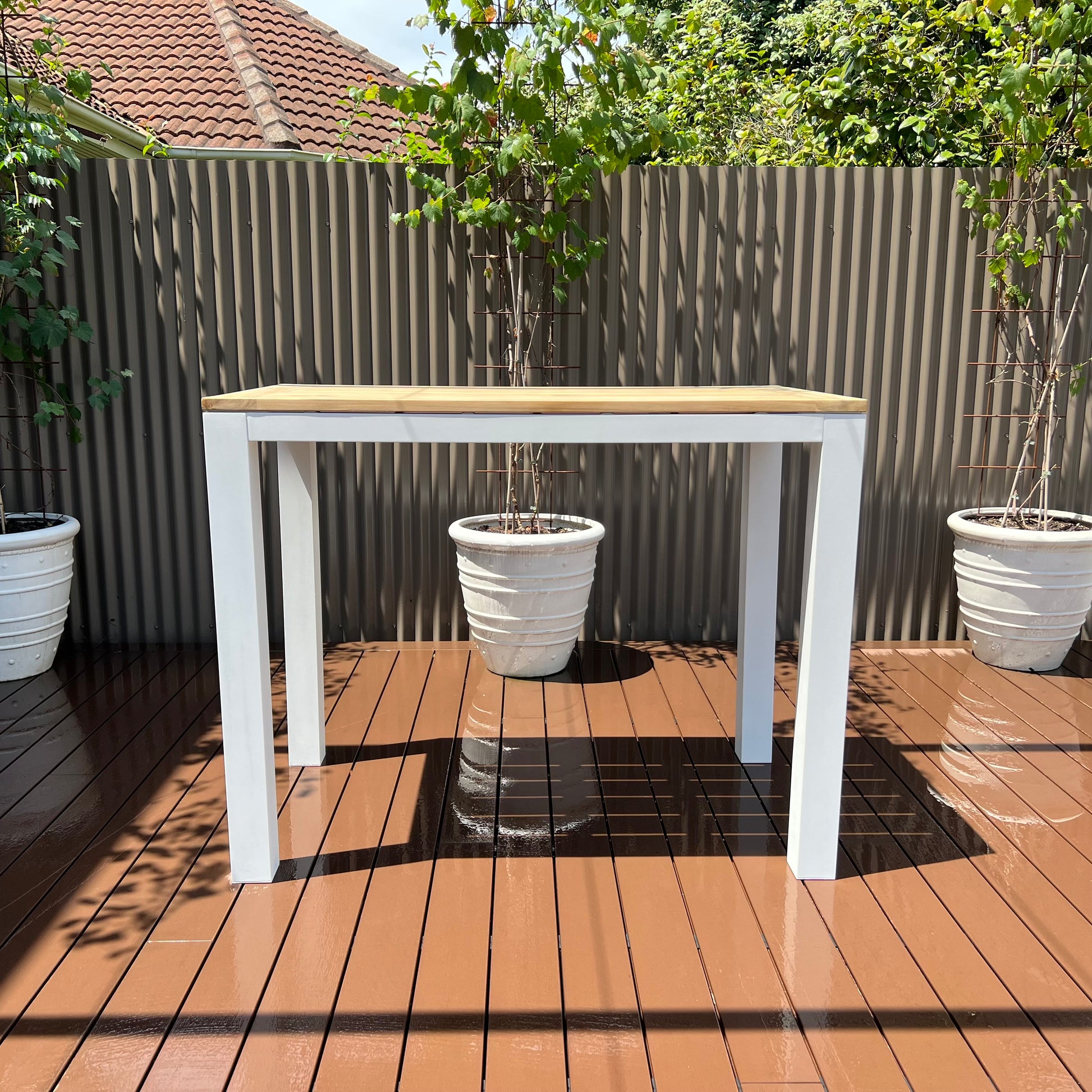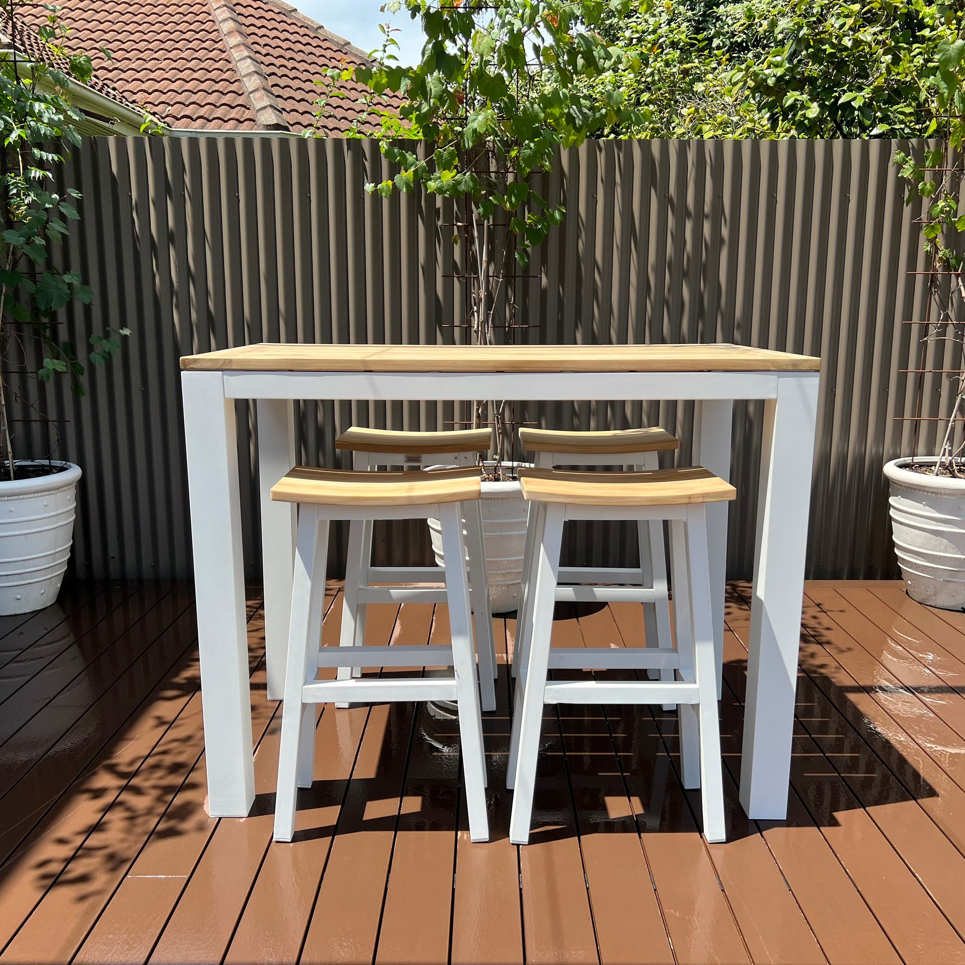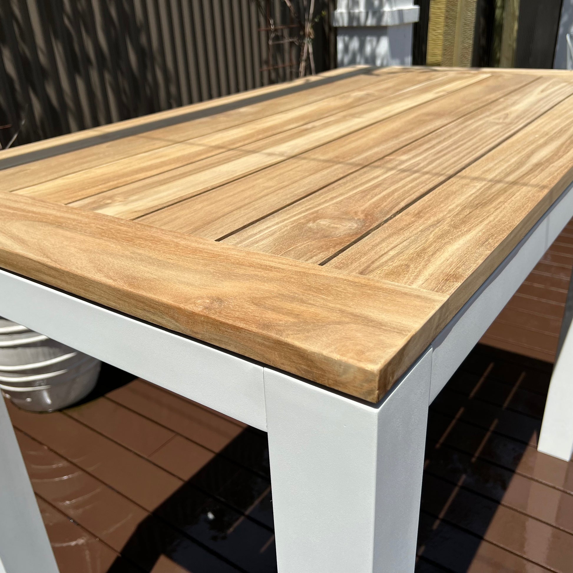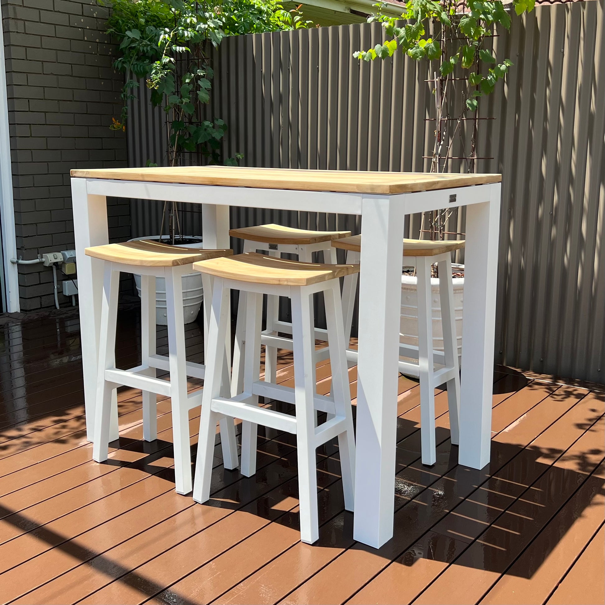 The ultimate way to entertain your family and friends around the table. Beautiful wooden New Teak top and Aluminium legs for an alluring look and feel. Sense Rectangular Bar Table in Shell, is the perfect outdoor setting that is built to last. Have Peace and mind knowing that aluminium is the ideal material for outdoors, as it is resistant to rust, as well as being light and strong. Complete your outdoor experience with the Sense collection.