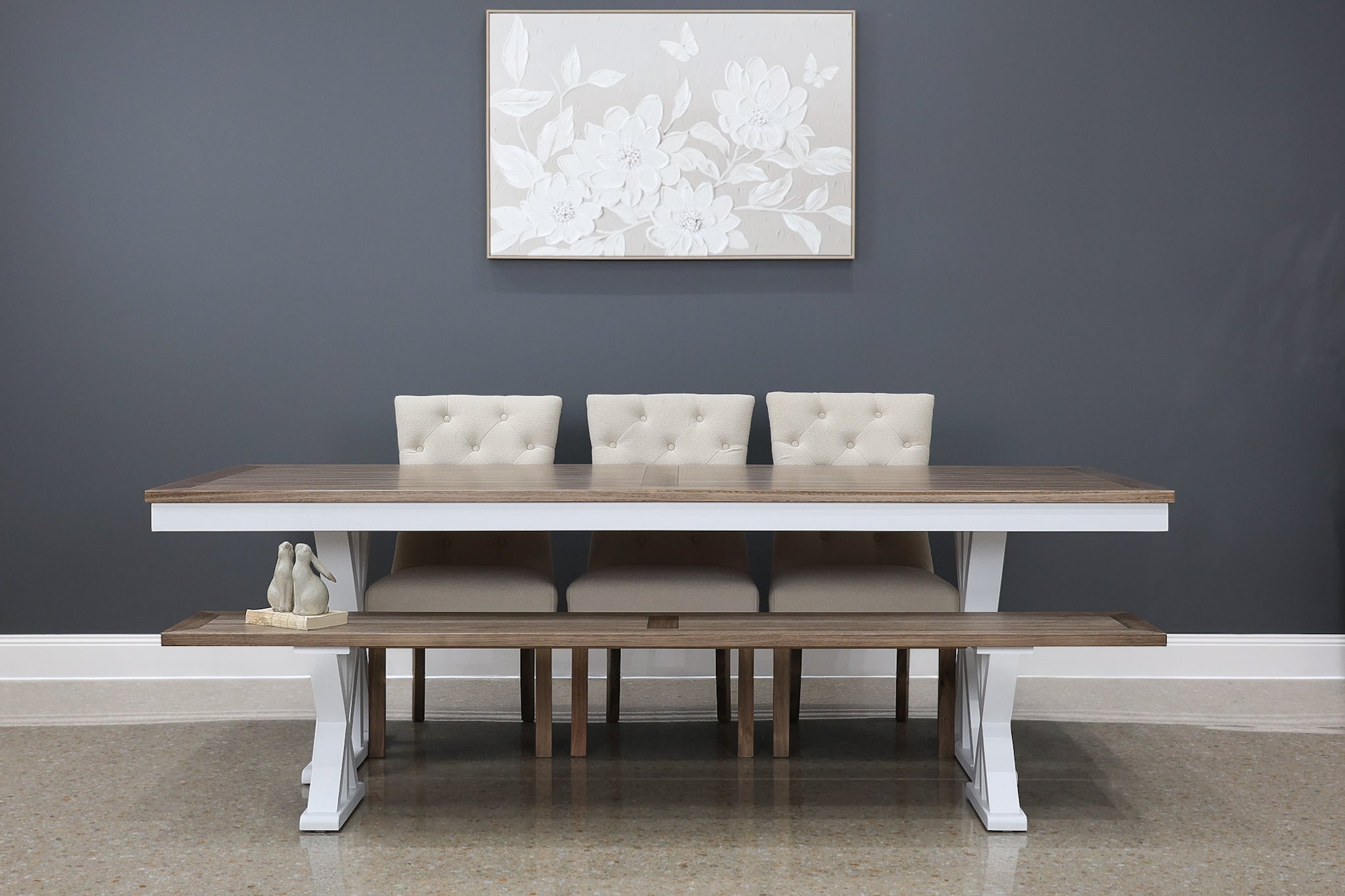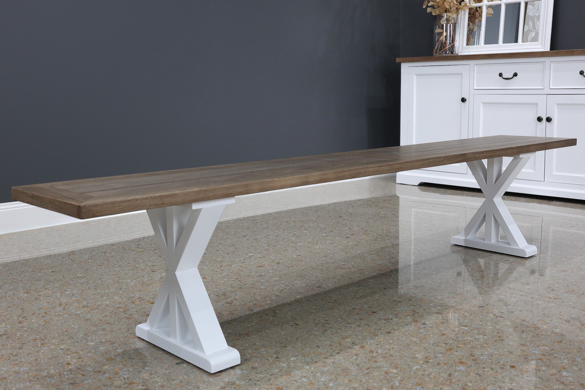 Add a touch of elegance and comfort to your dining space with the Shellharbour Bench Seat. Crafted from a blend of solid South American eucalyptus timber and pristine white craft wood, this bench exudes timeless style. Its graceful cross legs, finished in a pristine white, provide both support and visual appeal, creating a harmonious balance of rustic and modern design. With ample seating space, this bench ensures comfort and convenience, making it the perfect addition to your dining area. Pair it with the Shellharbour Dining Table to complete your look.