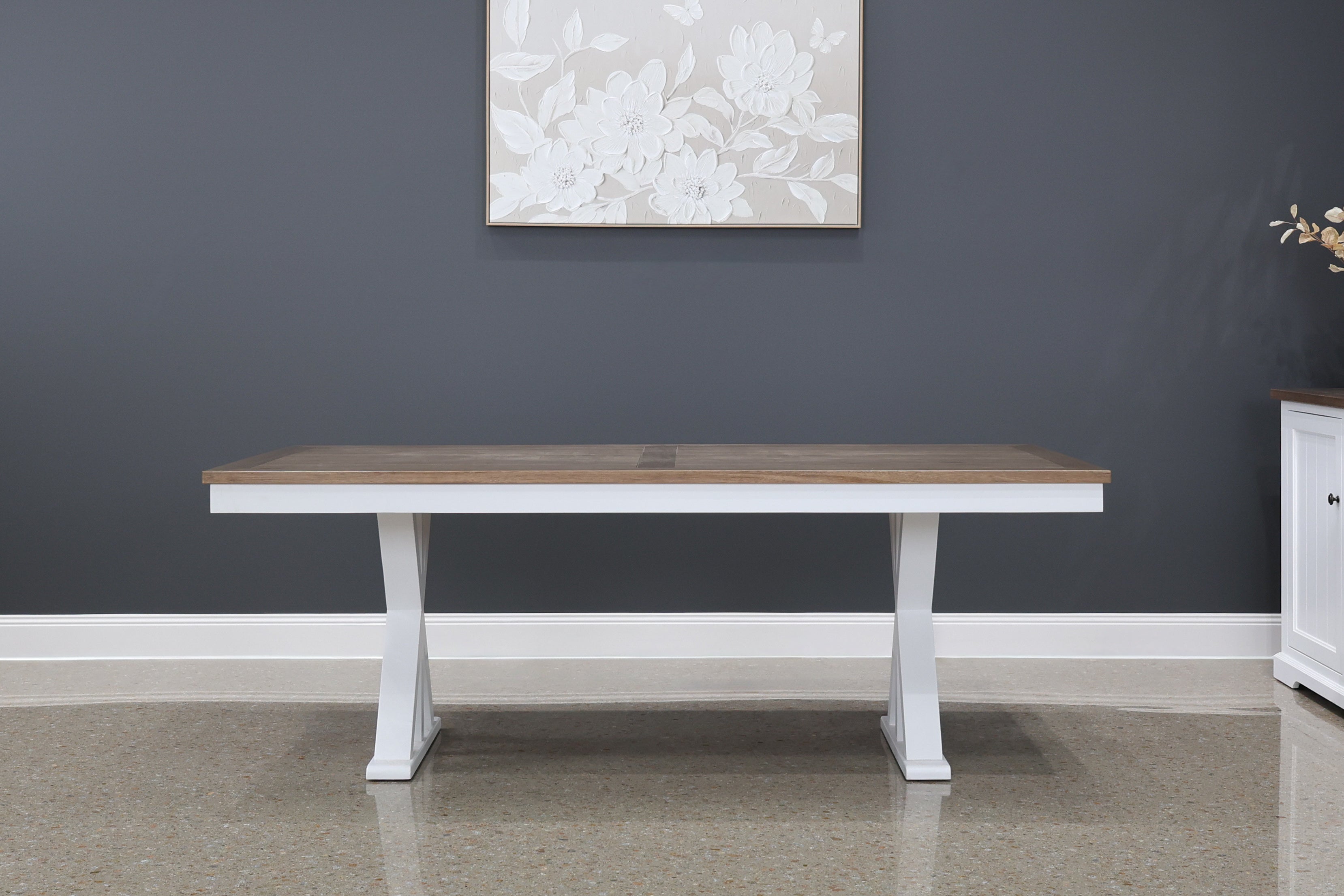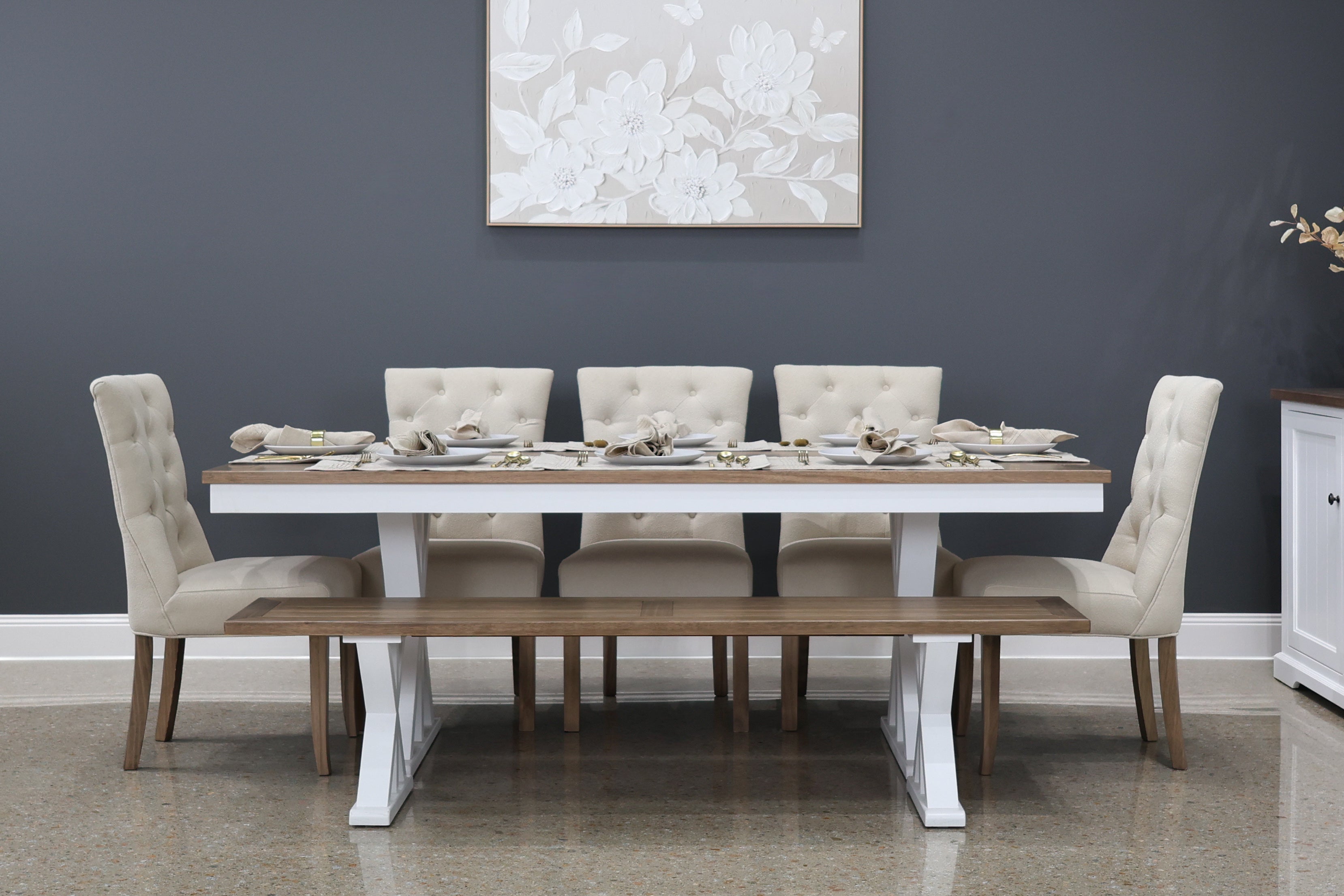 Discover the Shellharbour Dining Table, meticulously crafted with a solid timber top and adorned with gracefully detailed cross legs enhanced by a pristine white timber. Immerse yourself in the spacious and comfortable dining experience it offers in style. For a cohesive ensemble, pair it seamlessly with the Shellharbour Bench Seat and Shellharbour Dining Chair. Elevate your dining space with this exquisite combination of craftsmanship and design.