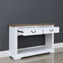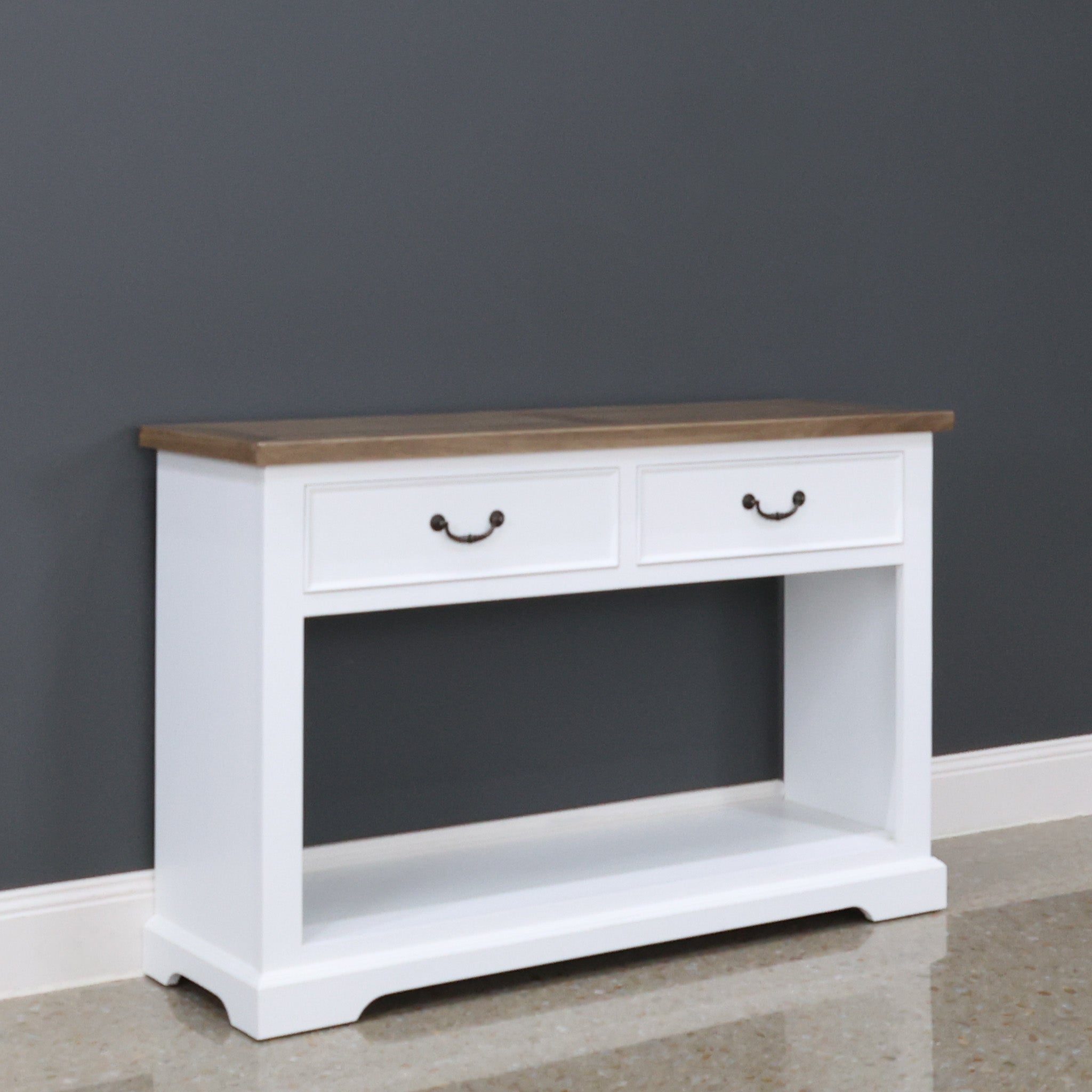 Introducing the Shellharbour Hall Table, a captivating statement piece that marries the inviting warmth of solid timber with the pristine elegance of crisp white. Revel in the convenience of its two spacious felt-lined drawers, effortlessly gliding on extension runners for a touch of luxury. The Hall Table is adorned with elegant drop handles, adding a refined finishing touch to its timeless design. Elevate your living space with the Shellharbour Hall Table - where functionality meets sophisticated style in perfect harmony.