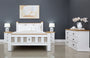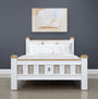A defining feature of the Springhurst Bed is its distinctive headboard and footboard design, featuring a structured geometric pattern with vertical and horizontal wooden slats. This thoughtful detailing adds depth and interest while maintaining a clean, classic look. Constructed from solid wood, the bed frame ensures durability and longevity, providing a stable foundation for restful nights.